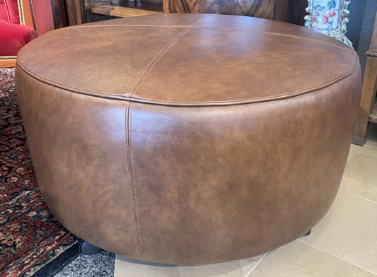 Stone and Leigh Round Leather Ottoman, Brand New (0L1001)