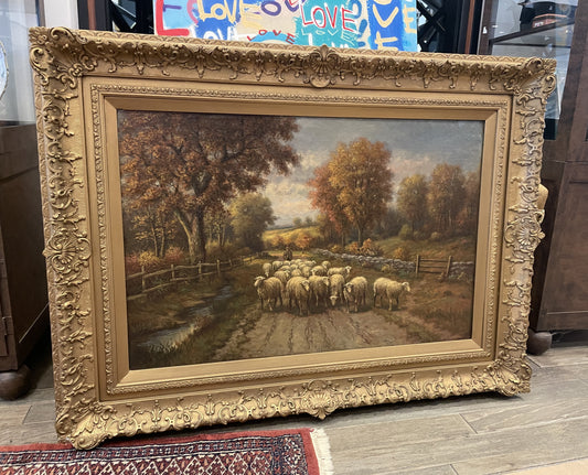 Herman Rohde Landscape Oil on Canvas, Sheep Herder (0M1002)