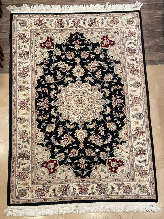 Hand Knotted Wool Rug in Black/Pink/Mauve AS IS (Approx. 4x6) (0HC001)