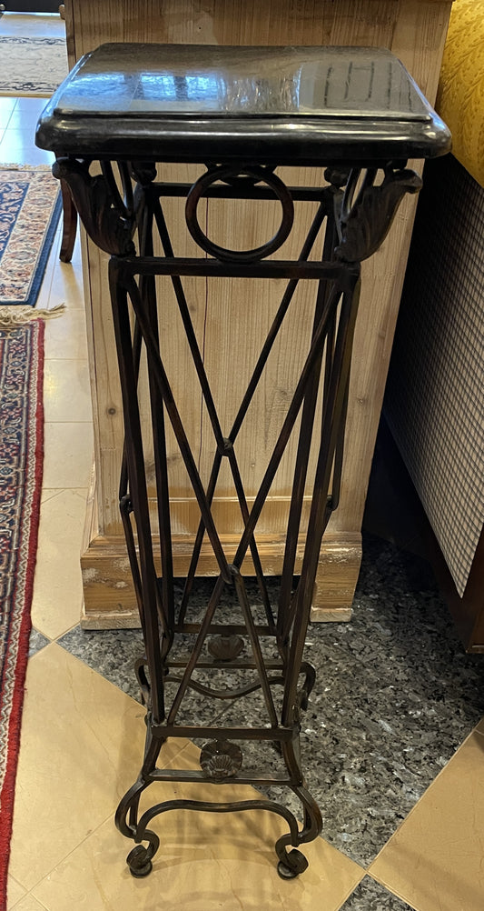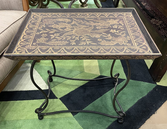 Hollywood Regency Marble Topped Iron Base Console with Leaf Detail (0JF003)