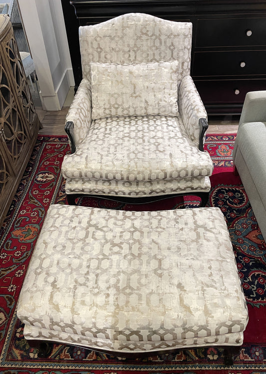 Silver Upholstered Bergère Chair with Ottoman (0L7005)