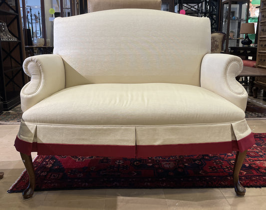 Cream Settee with Crimson Ribbon Trim, AS IS (0L700K)