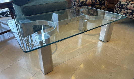 Vintage 70s Brushed Steel Pedestal Coffee Table, Glass AS IS (0LN00P)