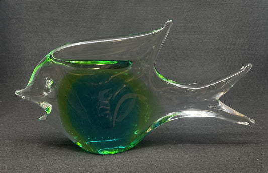 Vintage Ronneby FM Konstglas Fish Sculpture in Green (0LN00D)