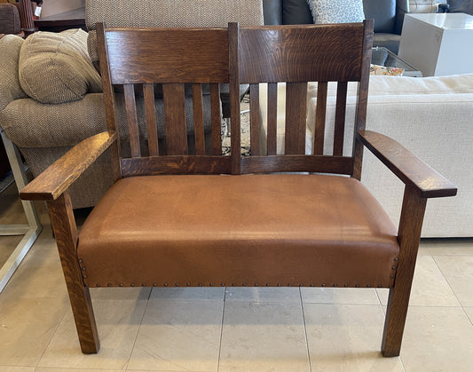Antique Arts and Crafts Oak Settee, AS IS (0IR01B)