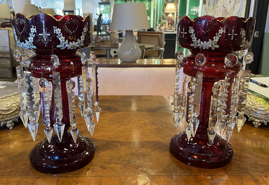 Pair of Antique Bohemian Enameled Lusters (0M100A)