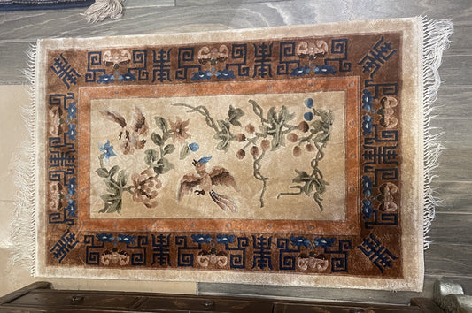 Hand Knotted 4x6 Wool Rug in Black/Pink/Mauve AS IS