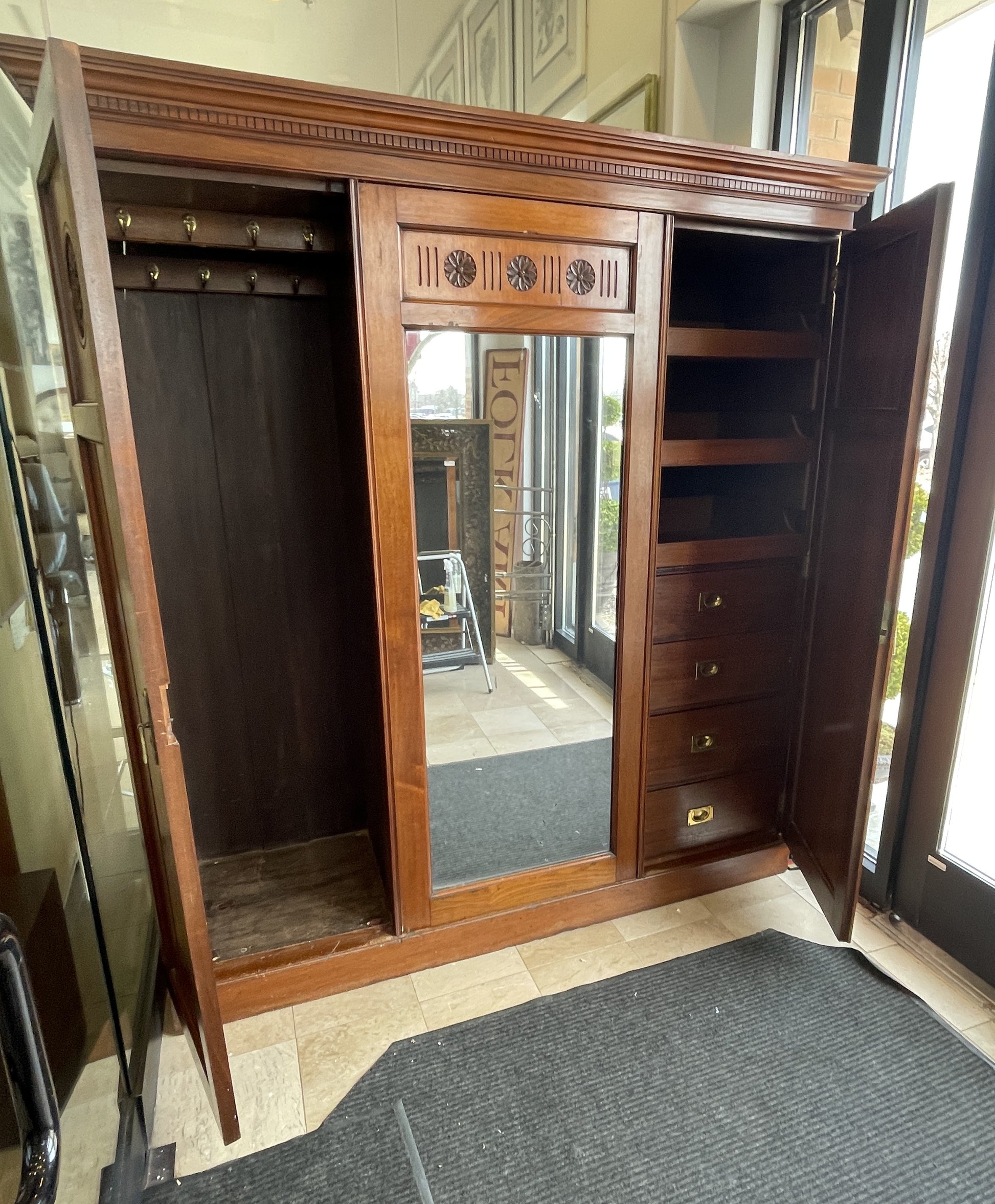 Antique Compactum Wardrobe with Center Mirror, AS IS (0LC003)