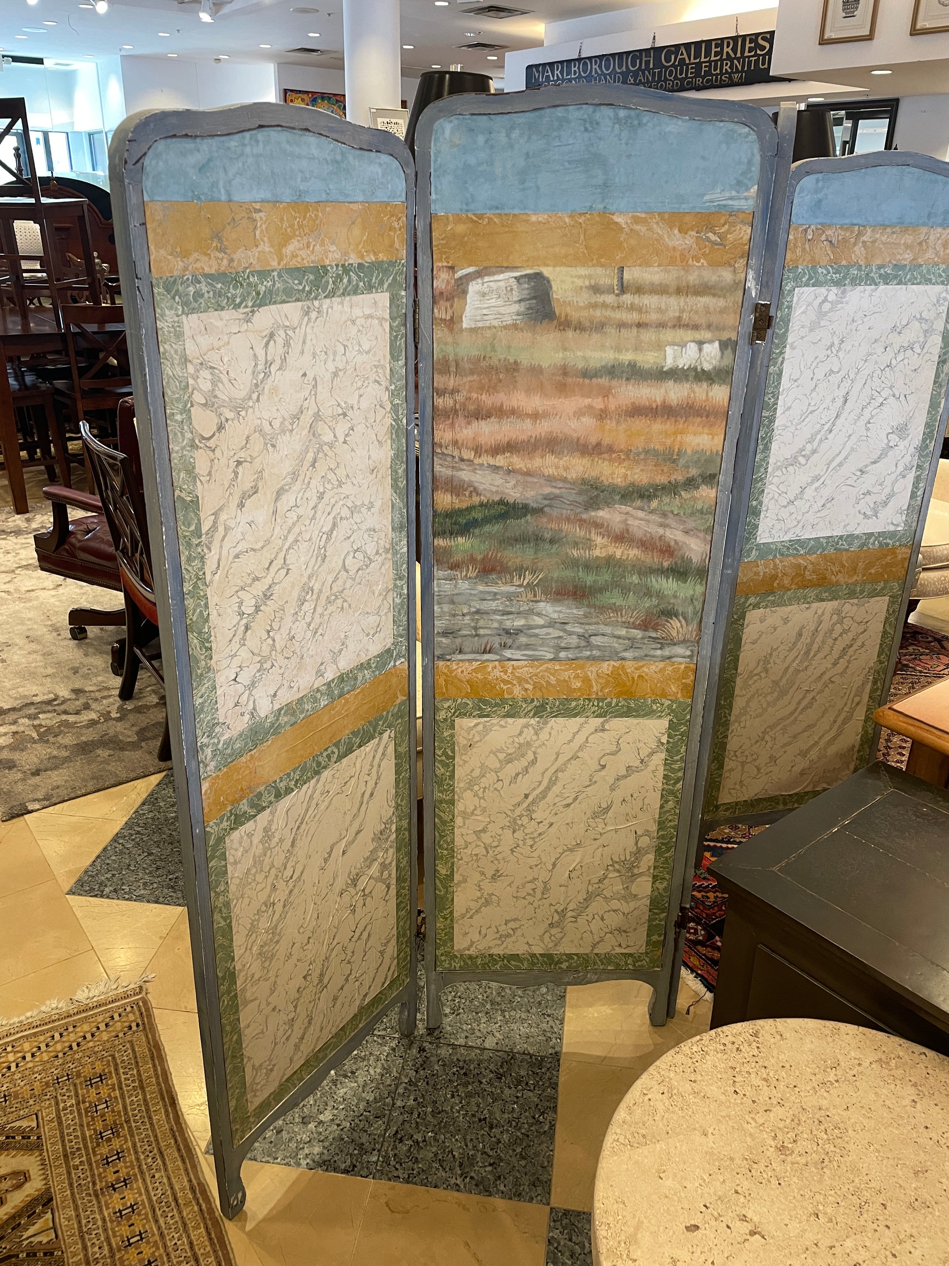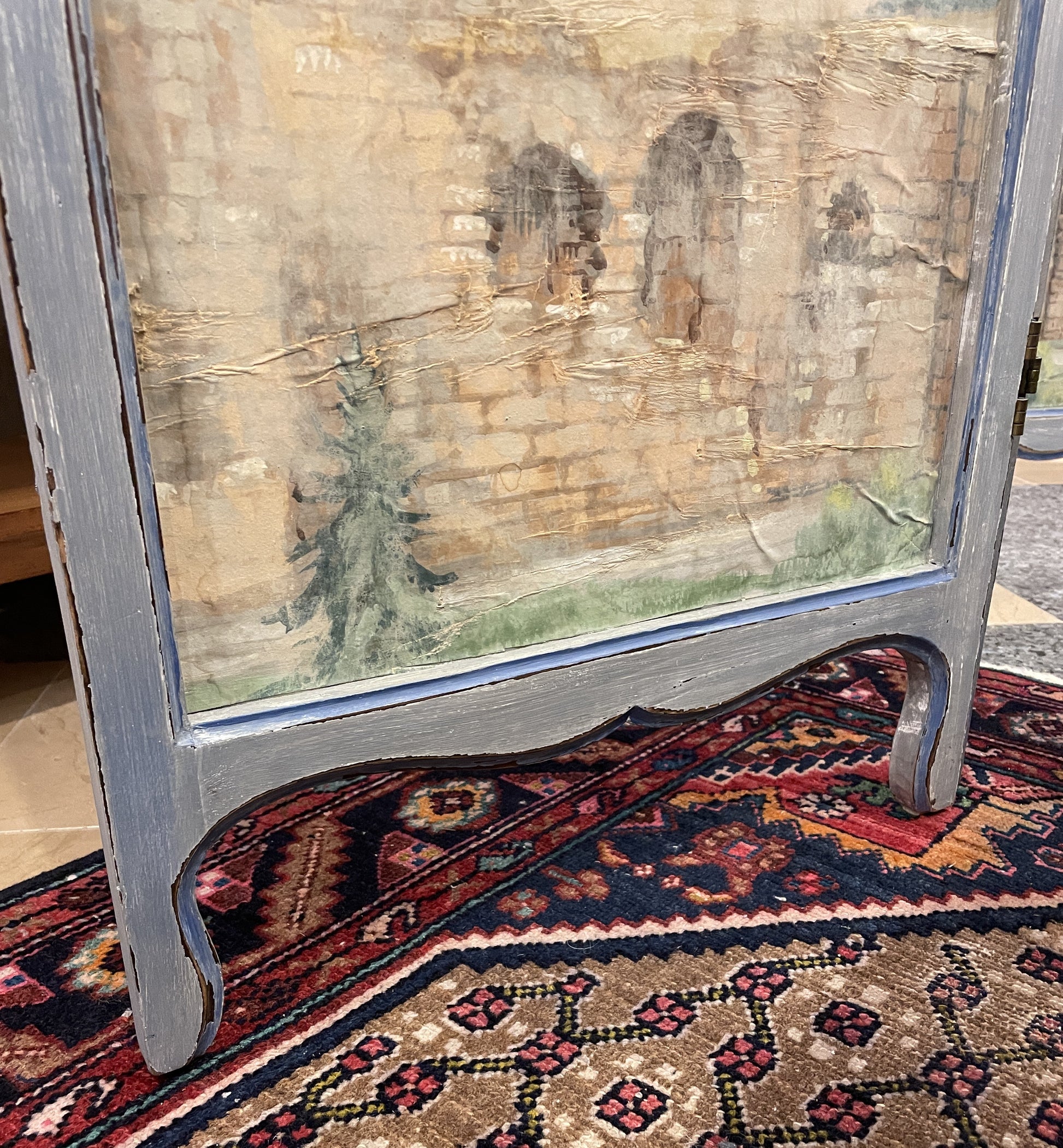 Antique Painted Canvas Room Divider/Screen, 19th Century (0G001B)