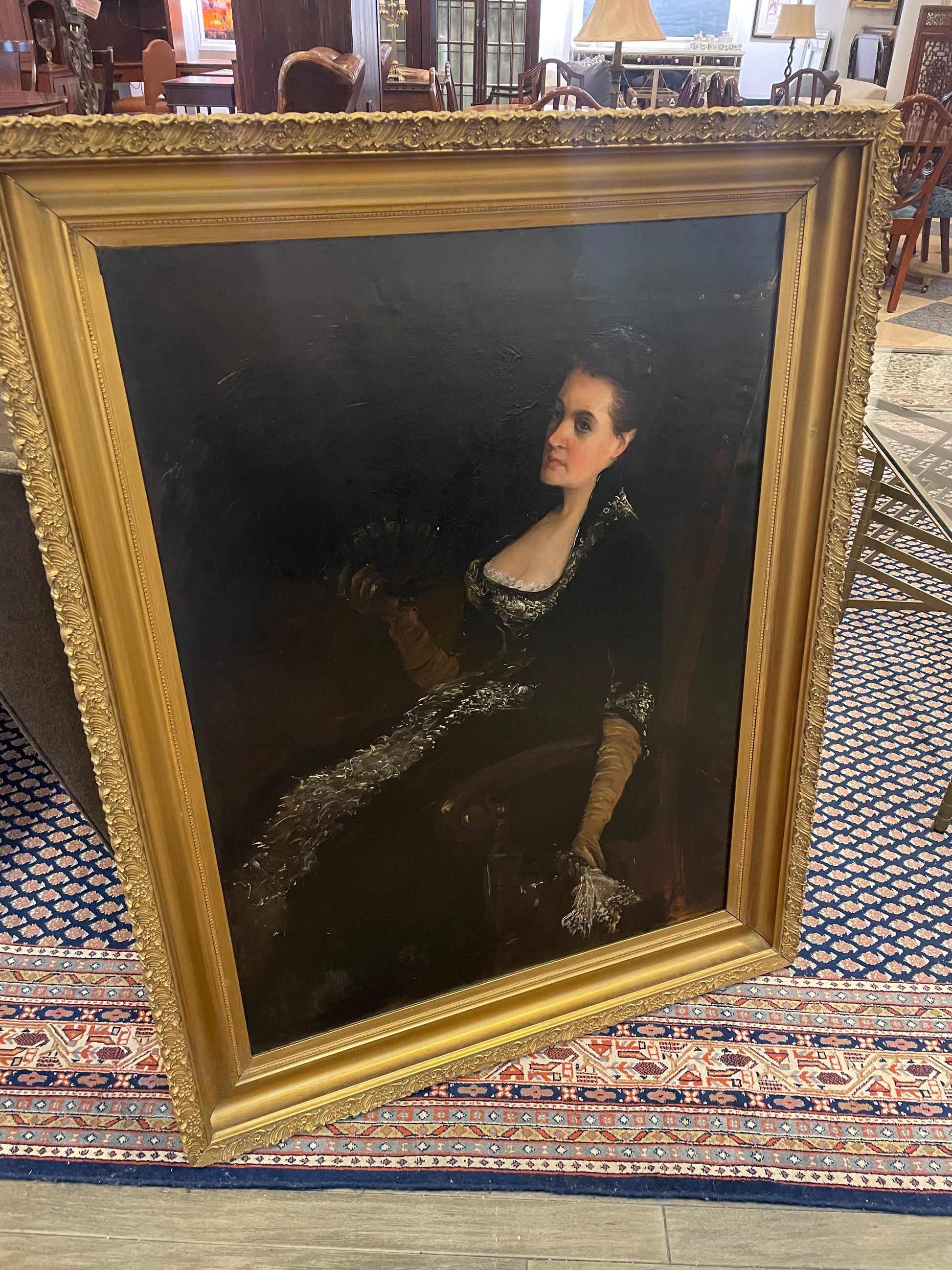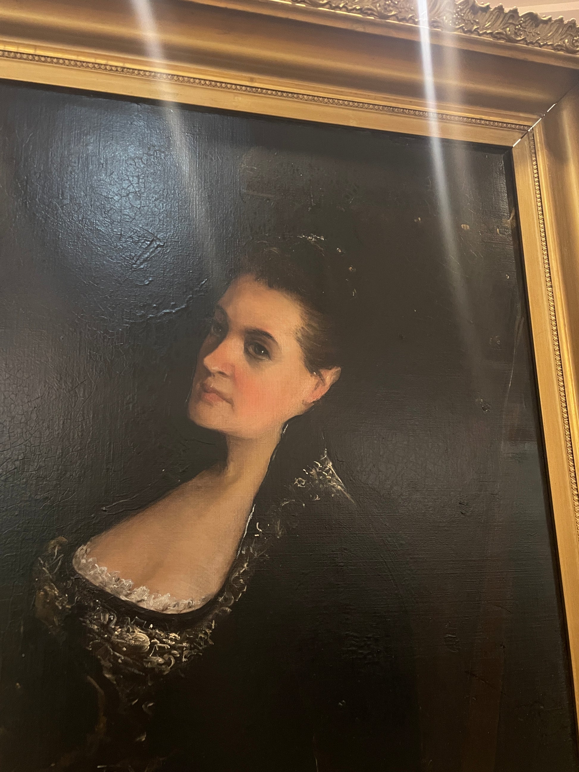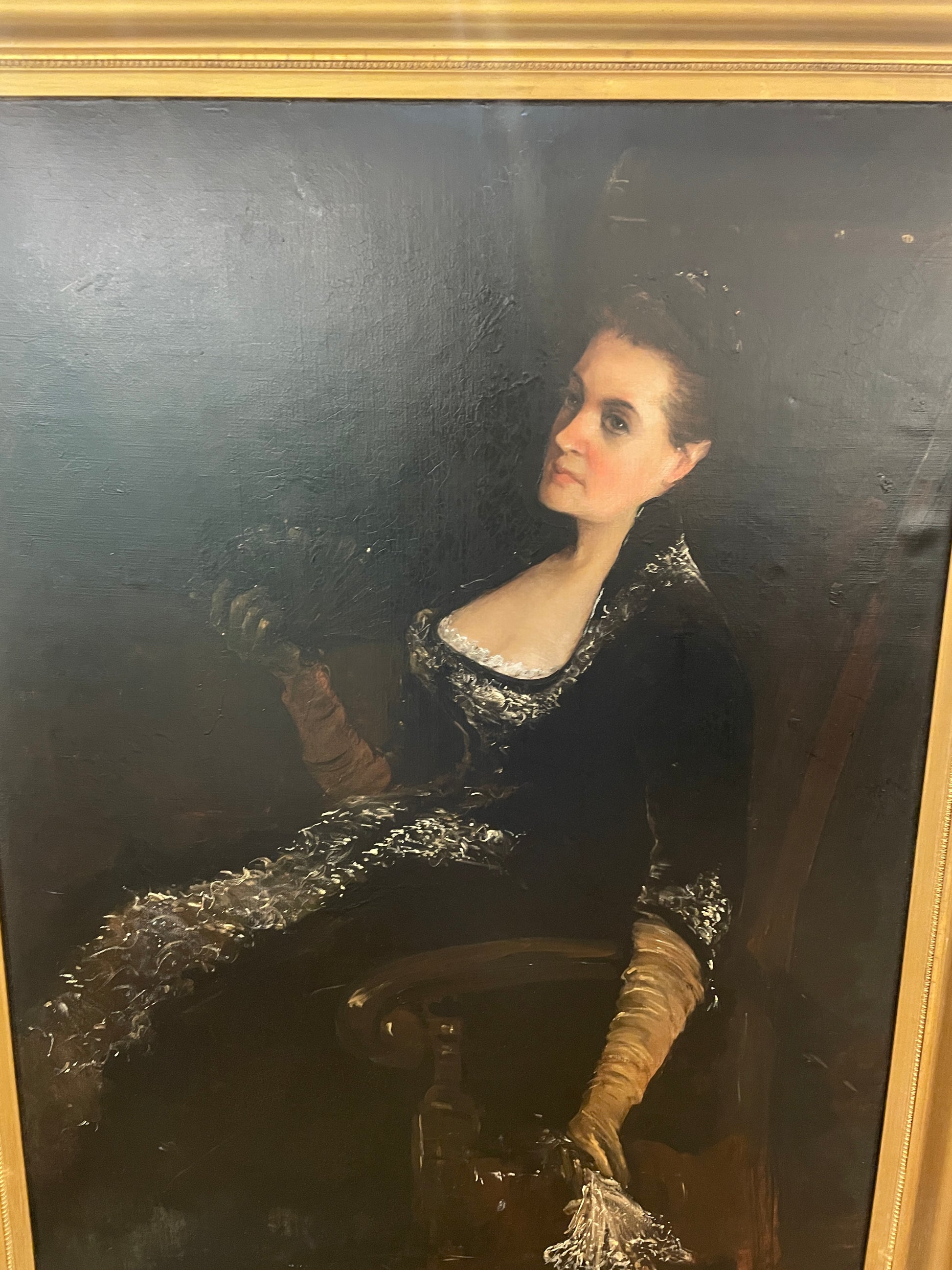 A captivating portrait by Arnold Henry Savage Landor, painted on a canvas. This piece showcases Landor's skill in capturing the elegance and personality of the subject. The portrait has undergone restoration, preserving its color and intricate details. The subject is depicted in a classic pose, wearing a richly detailed garment, which reflects the artist's attention to detail and mastery in portraiture.