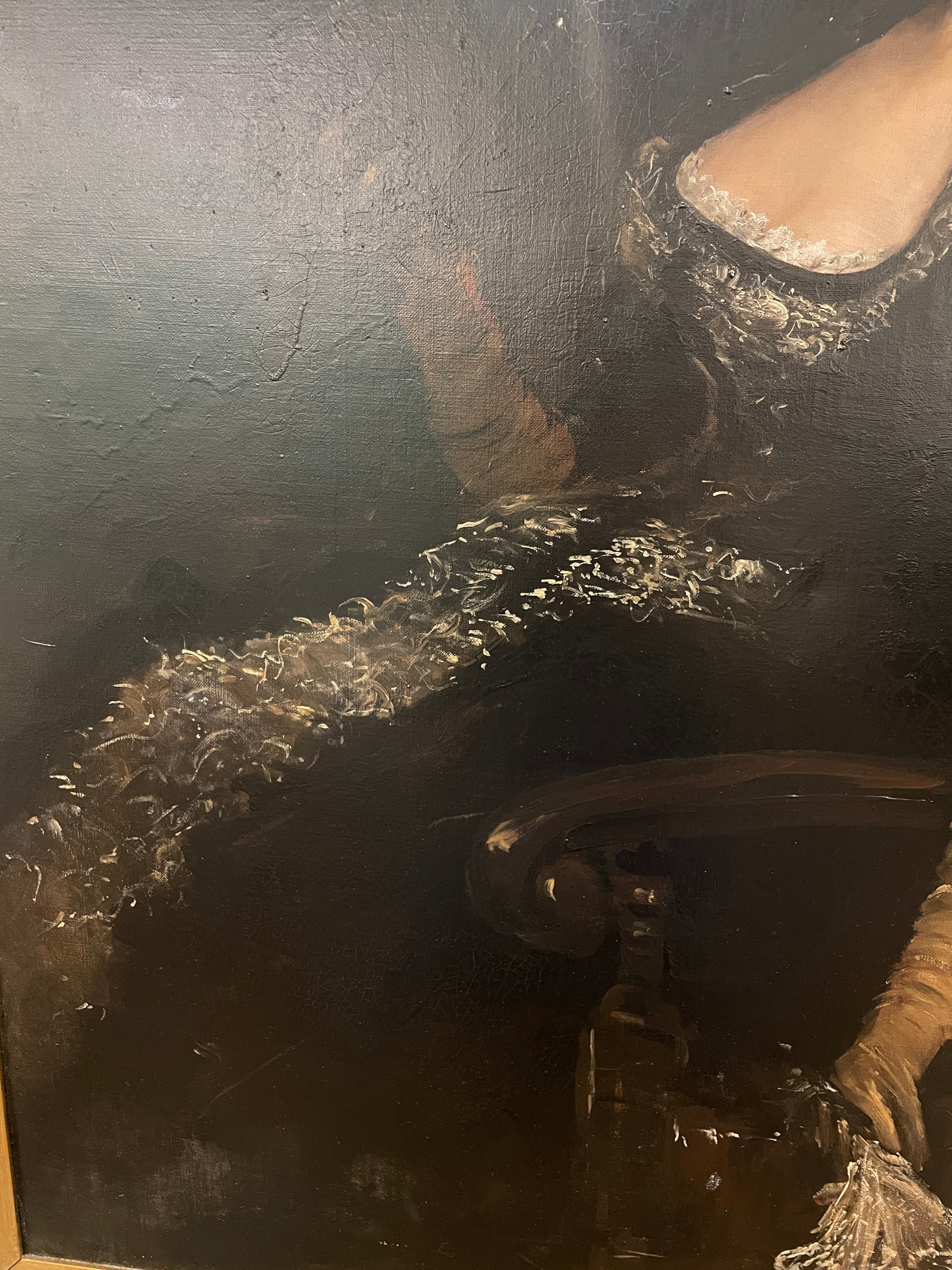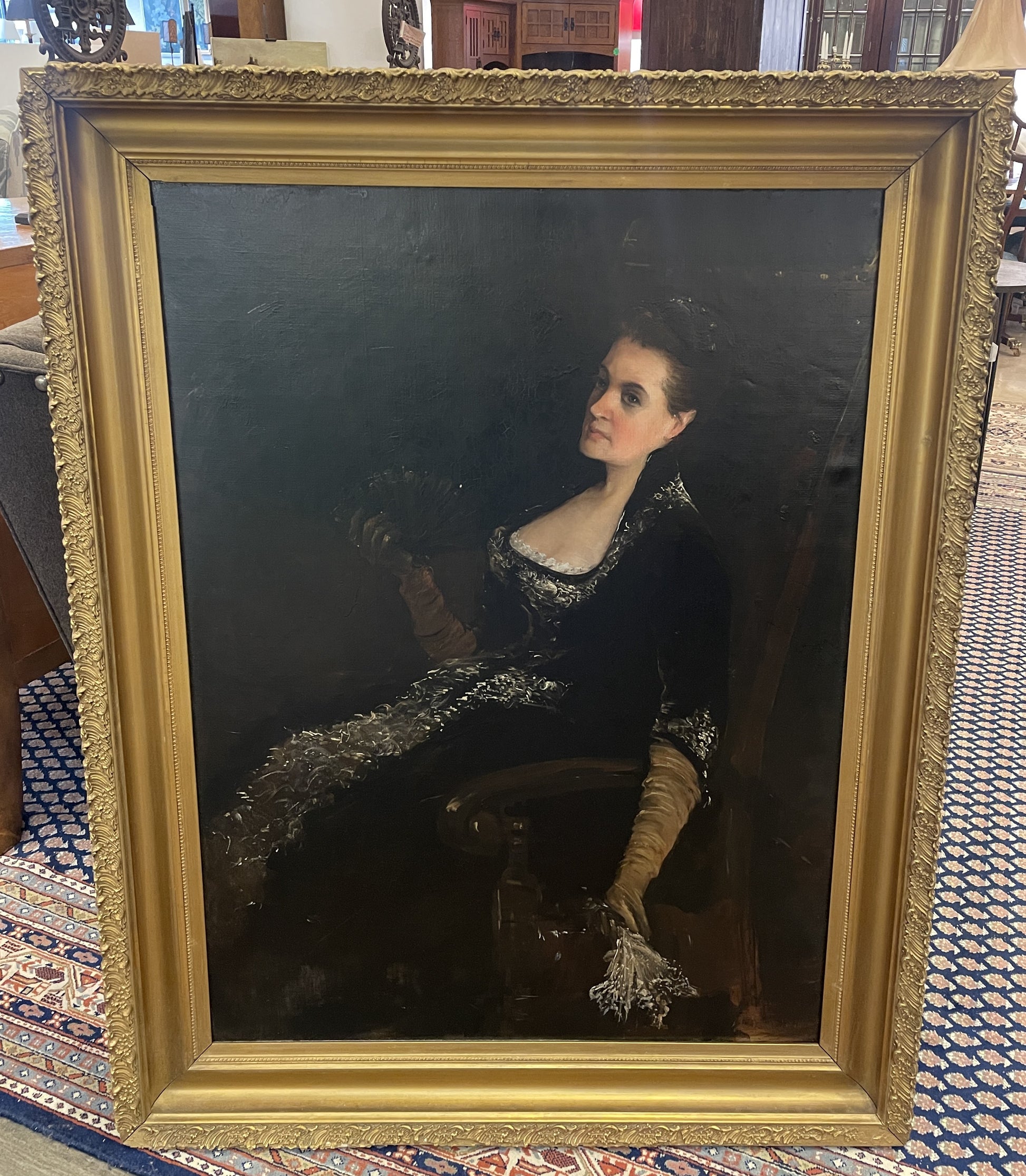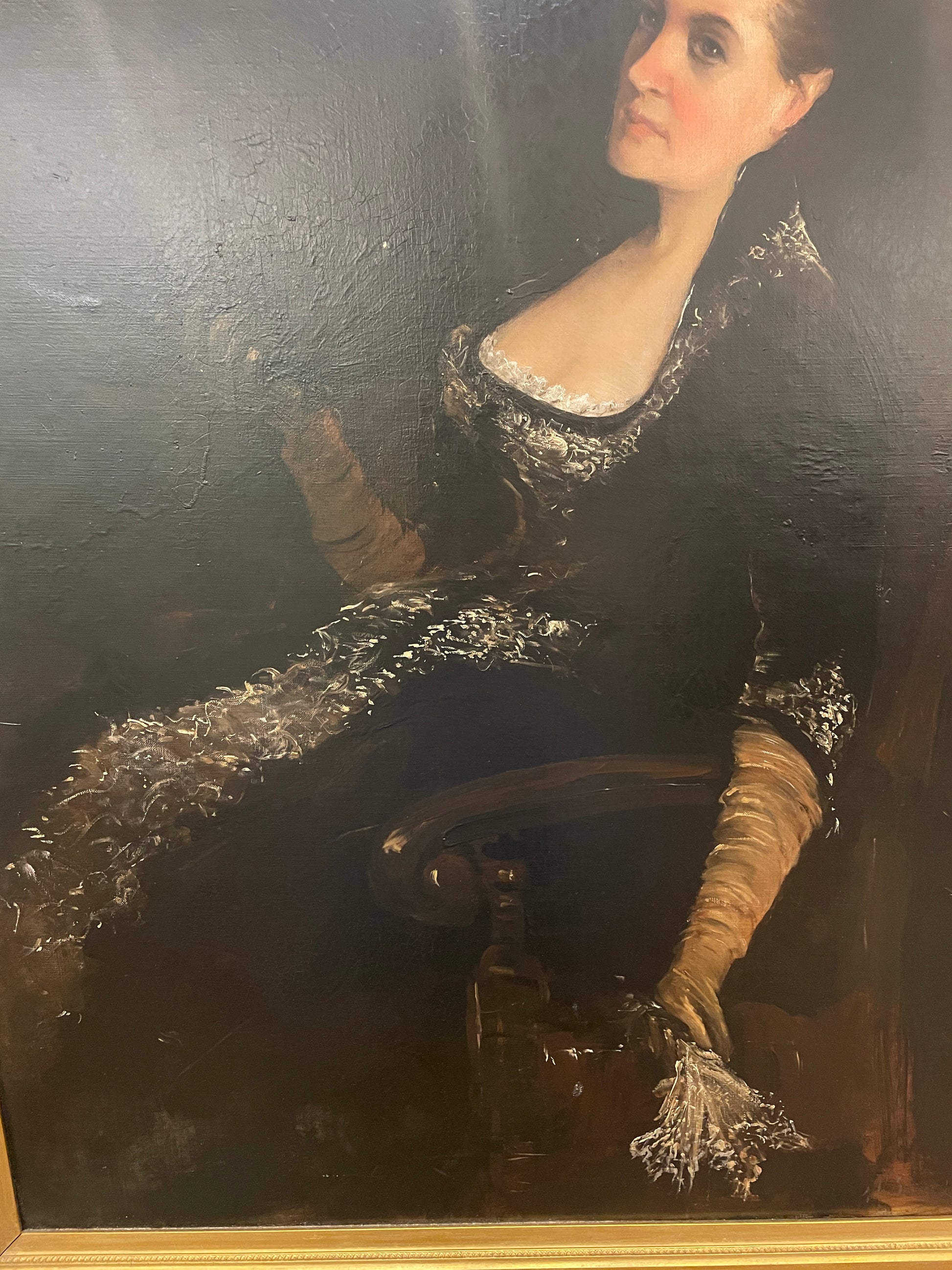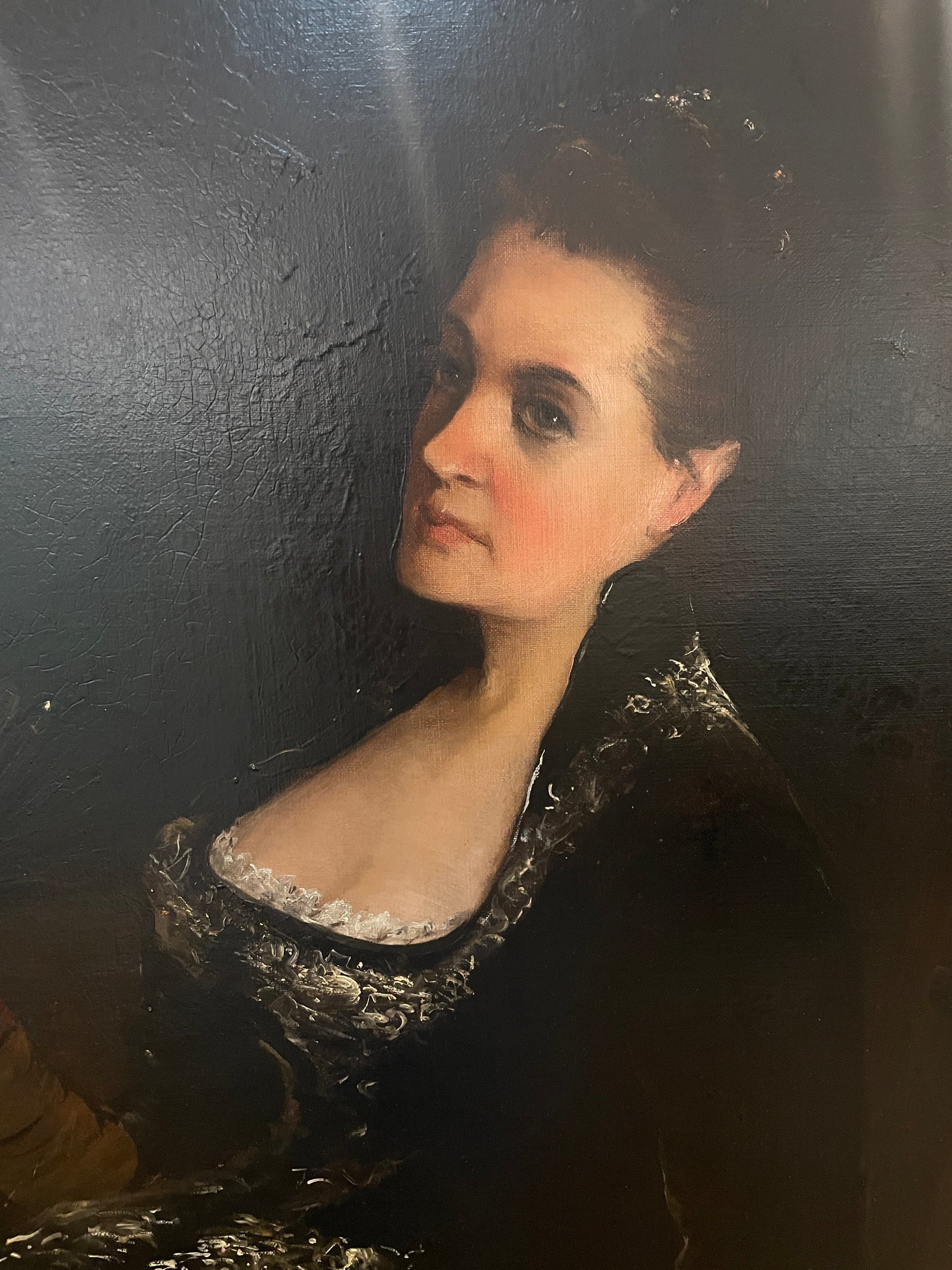A captivating portrait by Arnold Henry Savage Landor, painted on a canvas. This piece showcases Landor's skill in capturing the elegance and personality of the subject. The portrait has undergone restoration, preserving its color and intricate details. The subject is depicted in a classic pose, wearing a richly detailed garment, which reflects the artist's attention to detail and mastery in portraiture.