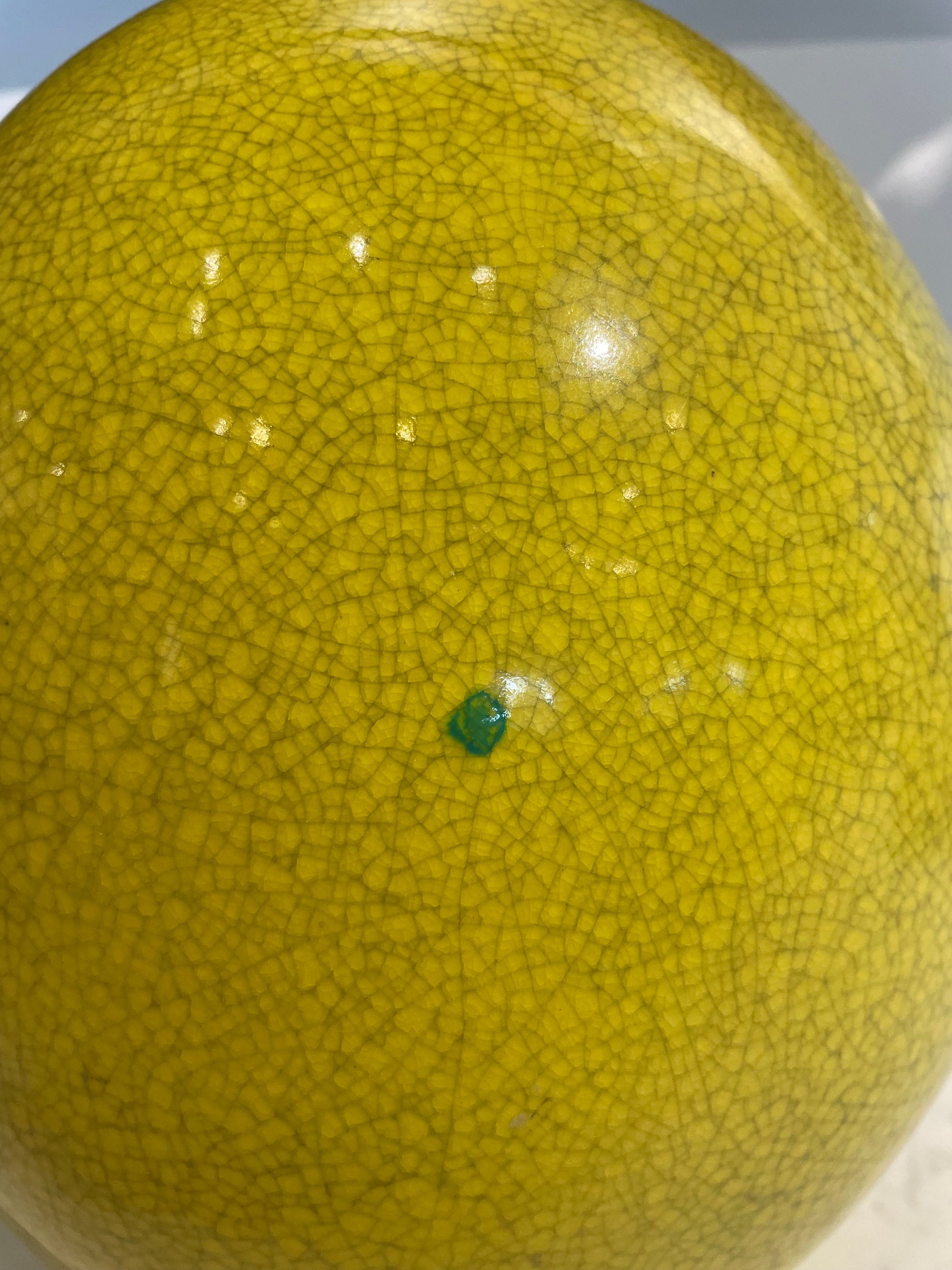 Vintage modern Boch Keramis chartreuse vase by the brand Royal Boch. Circa the 1930s. Features vibrant coloration with a crackle glaze finish. Stamped and signed on the bottom of the vase.