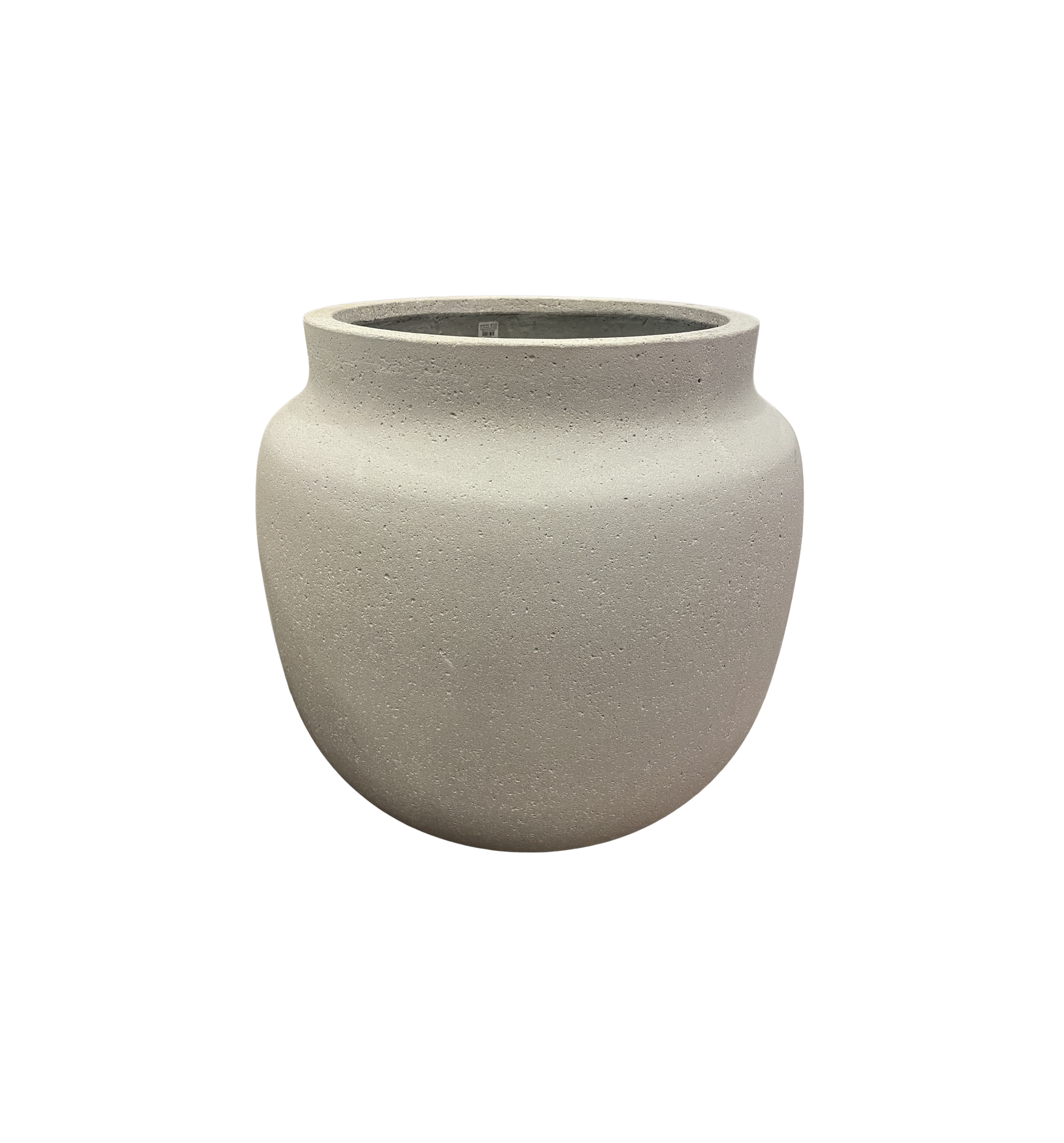 Large ficonstone pot. This charming pot is crafted from sleek gray colored ficonstone. The pot has a round, broad vase that tapers to a slightly more narrow neck. This charming pot is a perfect neutral addition to any space.