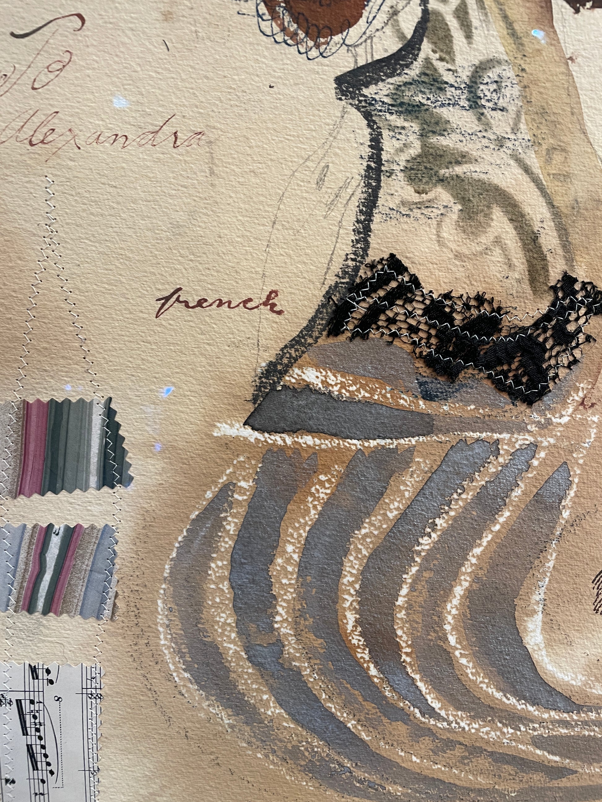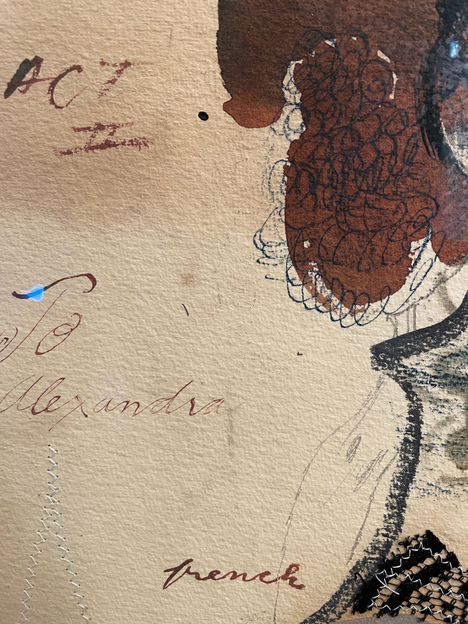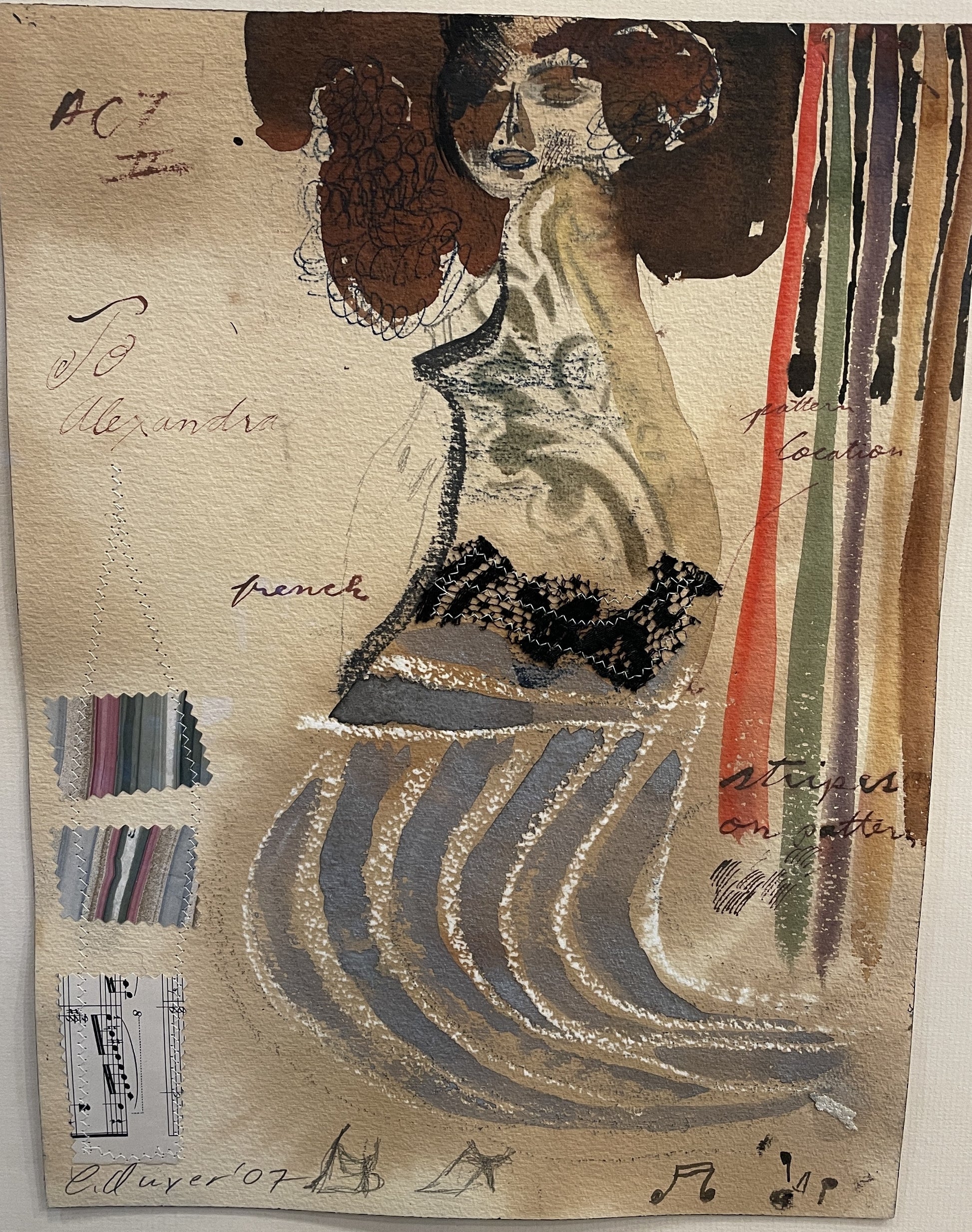 'Act to Alexandra' by Charles Dwyer, a captivating mixed media piece. This artwork features a figure with vibrant colors and expressive brushwork, characteristics of Dwyer's style. This piece incorporates various elements, including text and collage, adding depth and intrigue. This artwork is framed in an ornate frame that compliments its lively composition.
