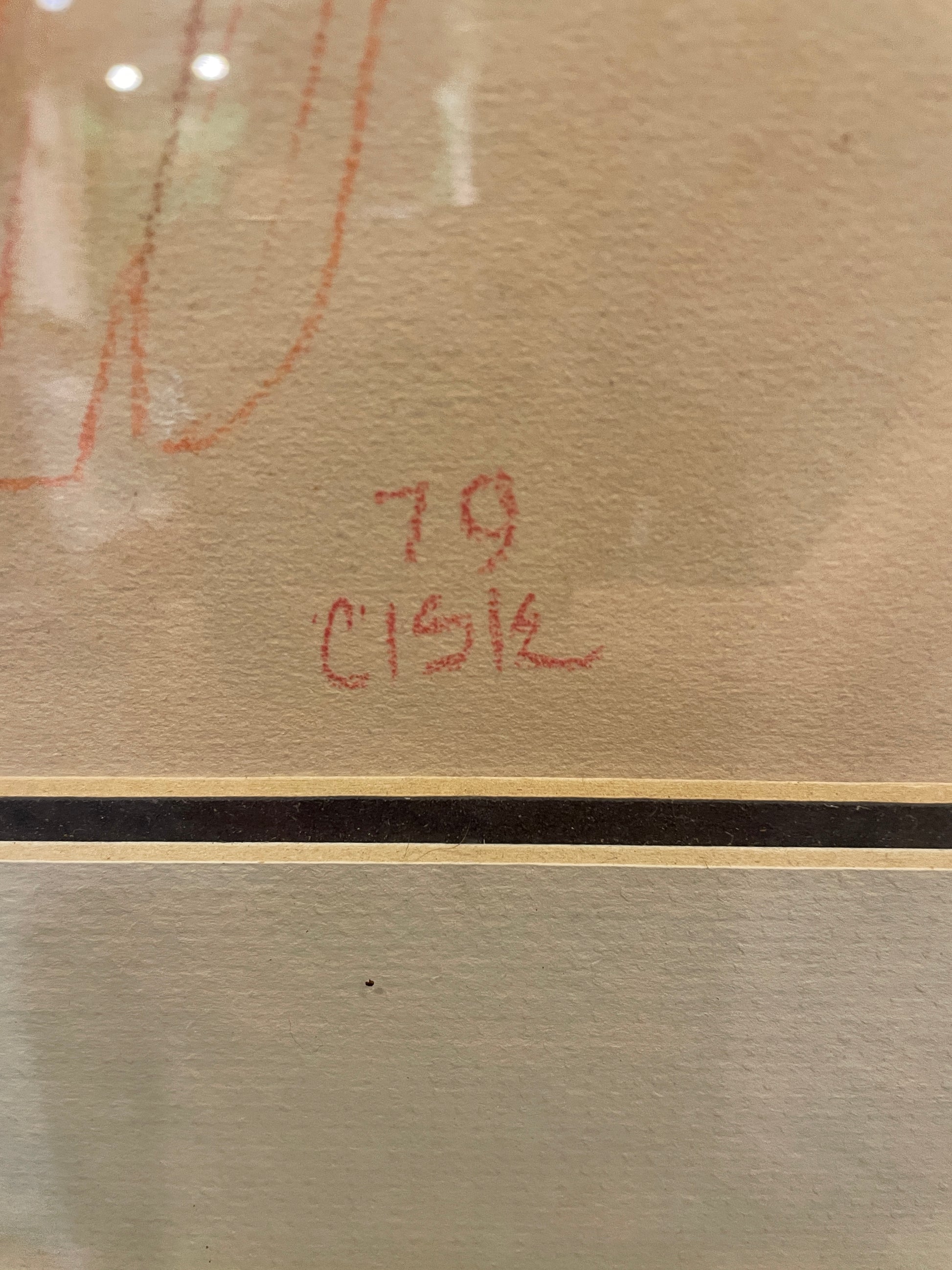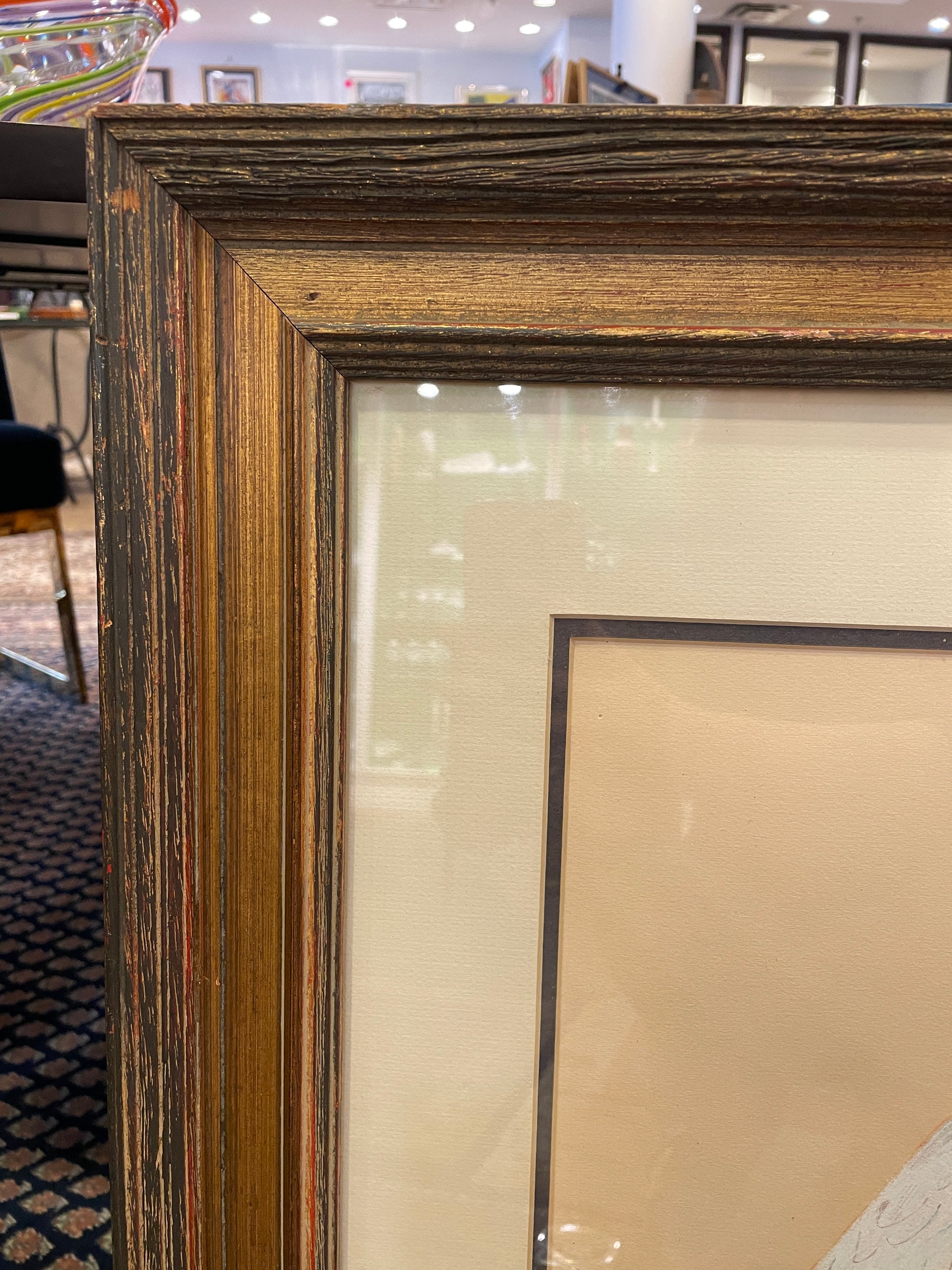 Cisie cockatoo watercolor print. Signed lower center. This ornithological piece features a Major Mitchell's cockatoo, also known as a pink cockatoo or a Leadbeater's cockatoo The bird sits atop a sketch-like branch. Its yellow and pink crest is pointed up. The piece is set with a beige mat, and is held in a wooden frame. A unique and beautiful piece that would be perfect for a room that asks for a zoological flare.