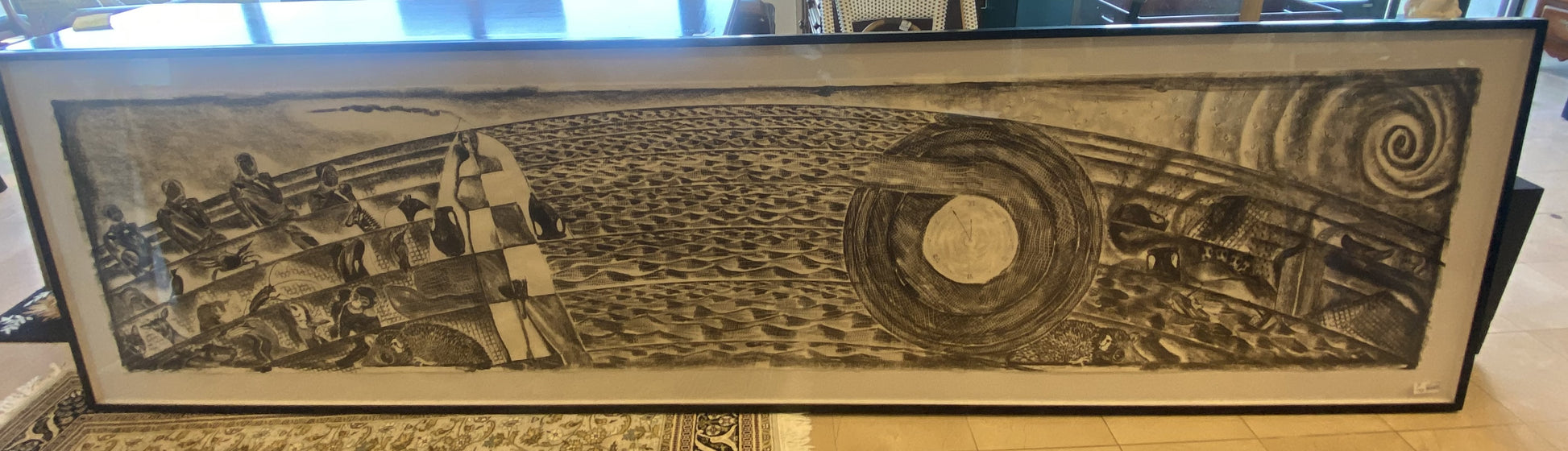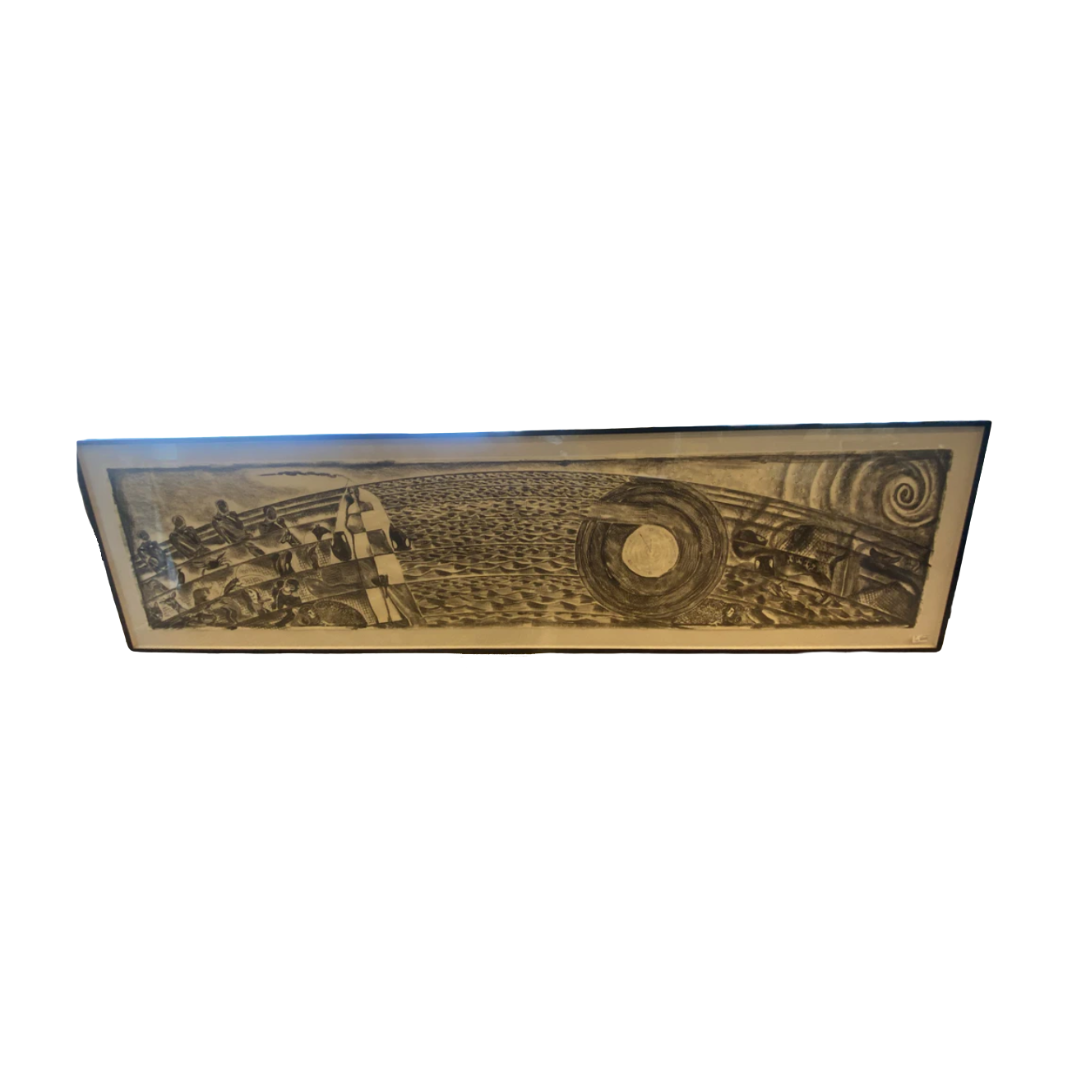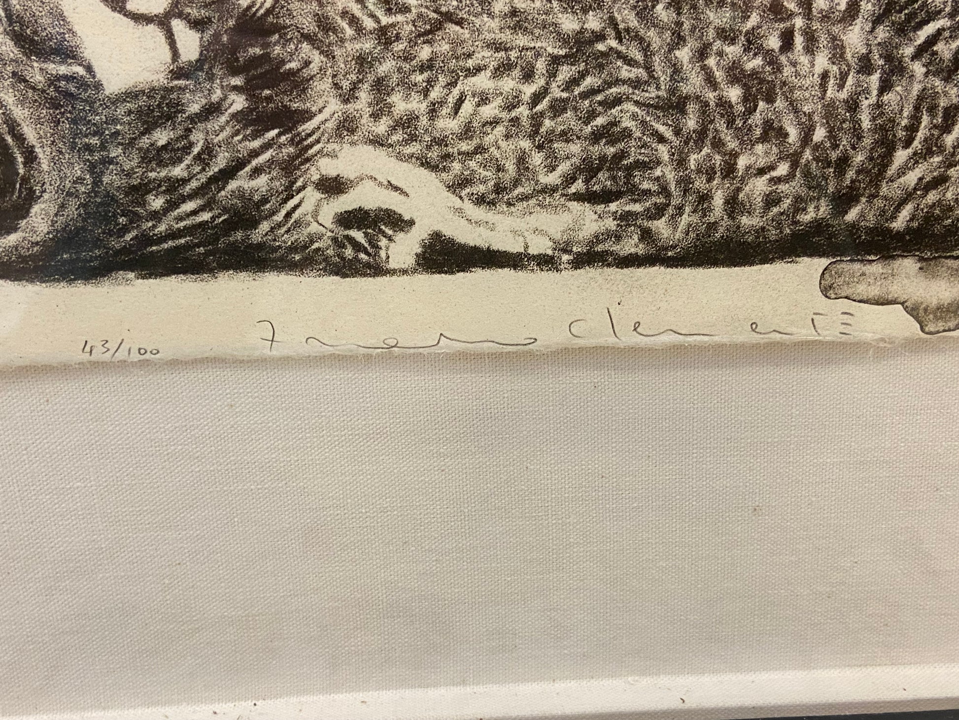Francesco Clemente is a contemporary Italian artist known for his dreamlike paintings based on esoteric themes of sexuality and spirituality. Working across oil painting, installation, and watercolor, Clemente’s works are characterized by their formal experimentation with symbols, portraiture, and the human figure. Clemente continues to live and work in New York. This work was printed from the plates of Francesco Clemente’s mythological landscape Untitled A on the occasion of the 1986 MoMA, New York show of Clemente’s The Departure of the Argonaut. Signed in bottom left: 43/100 Francesco Clemente Measurements: With frame: 126 x 35 Without frame: 118 x 27 This item is located at The Perfect Thing (161 Town Square, Wheaton, IL 60189). Shipping available for a fee. Contact Kate@theperfectthing.net for a quote. All items are previously owned and used, please see pictures for details. Pictures are provided to the best of ability. Factors like resolution, lighting, and coloration may affect detail perception.
