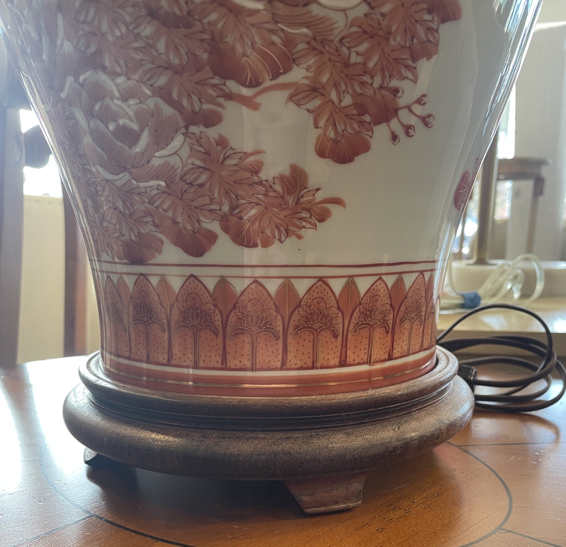 Fujita Kutani Hand Painted Floral Table Lamp in Orange (0HP006)