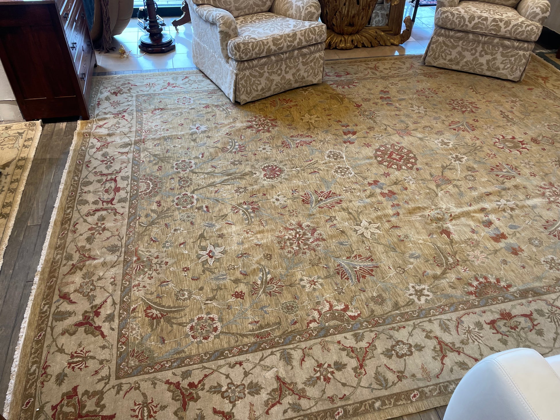 Hand Knotted Cream and Apricot Rug (13.9x10) (22862)