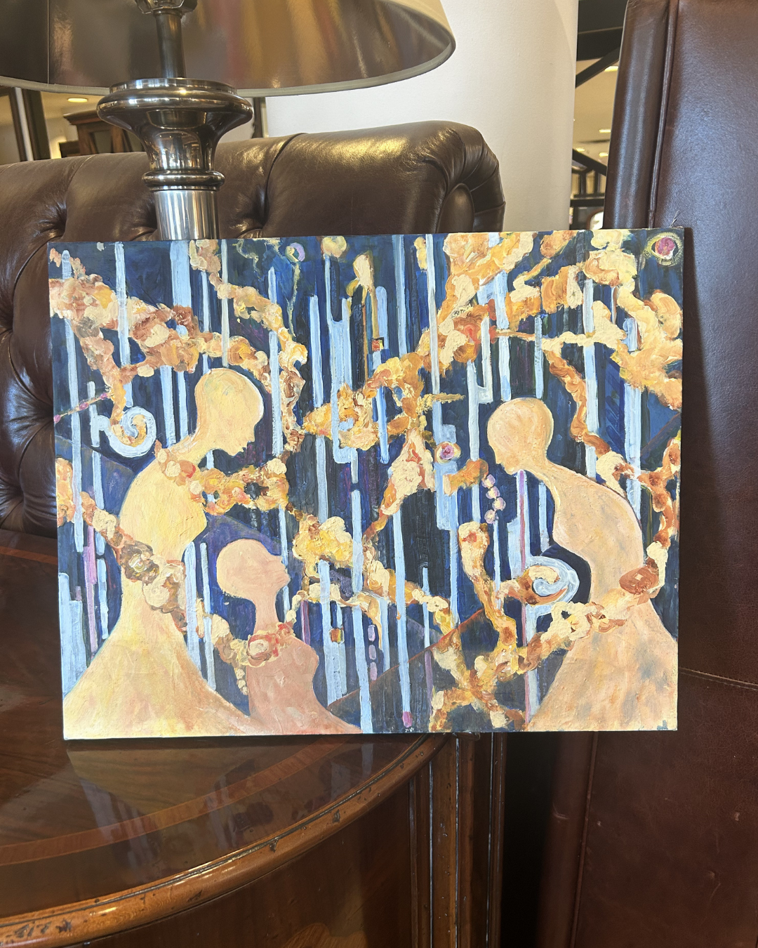J Drury Surrealist Women Oil on Canvas, Unframed. Signed en Verso.
