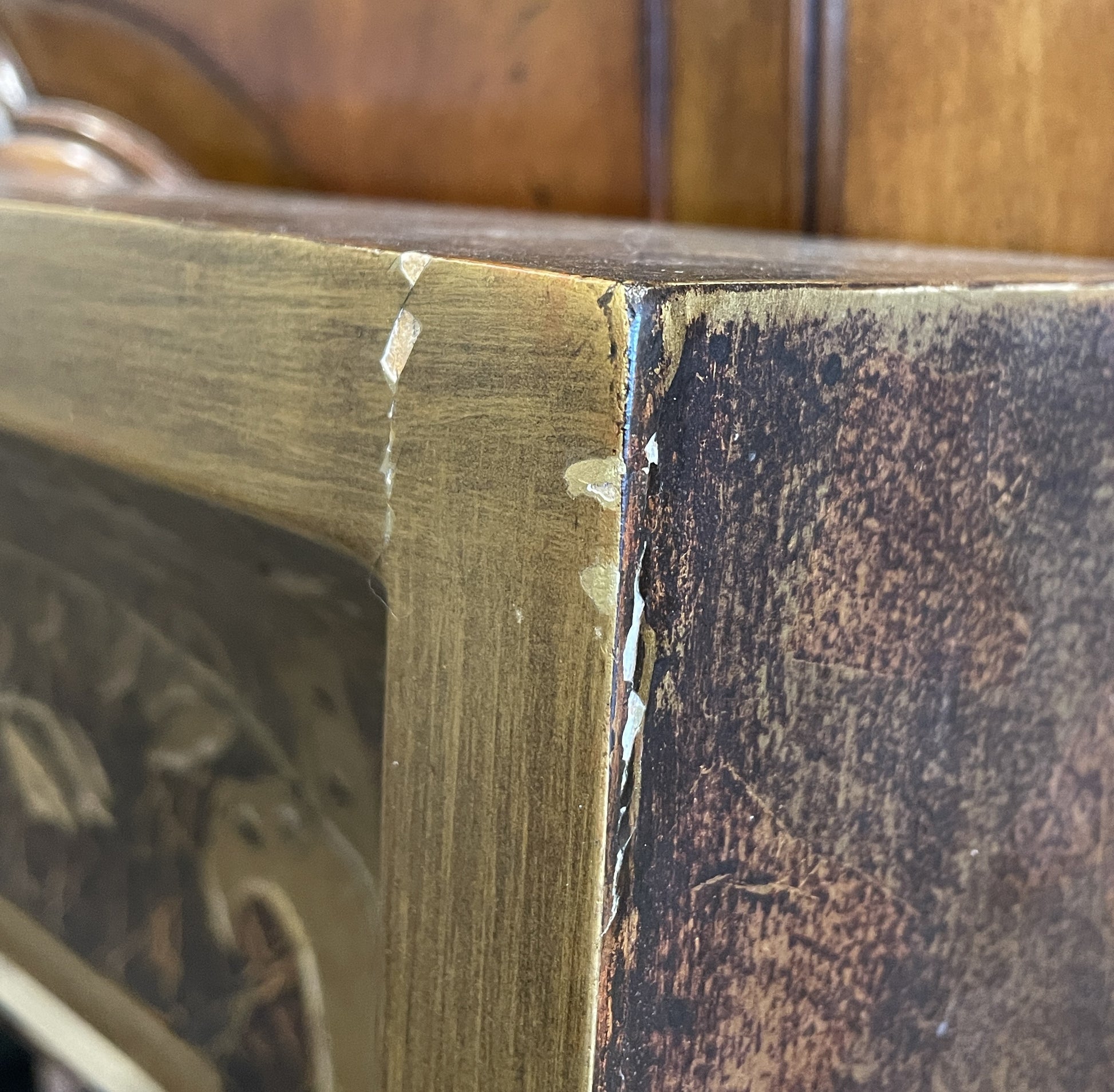 This item is sold in AS IS condition. Some warping in the glass and chips in the frame. Please see photos for details.