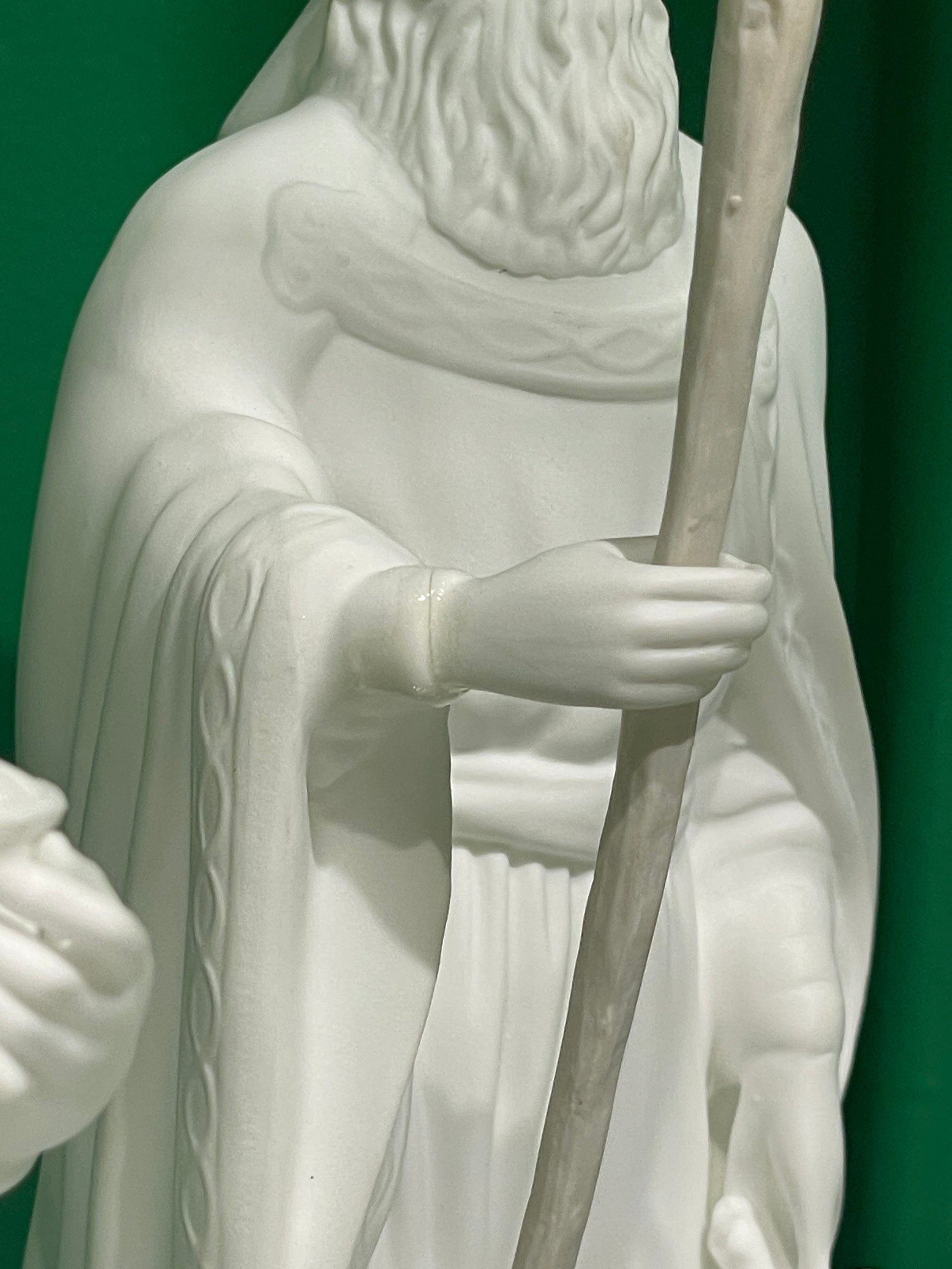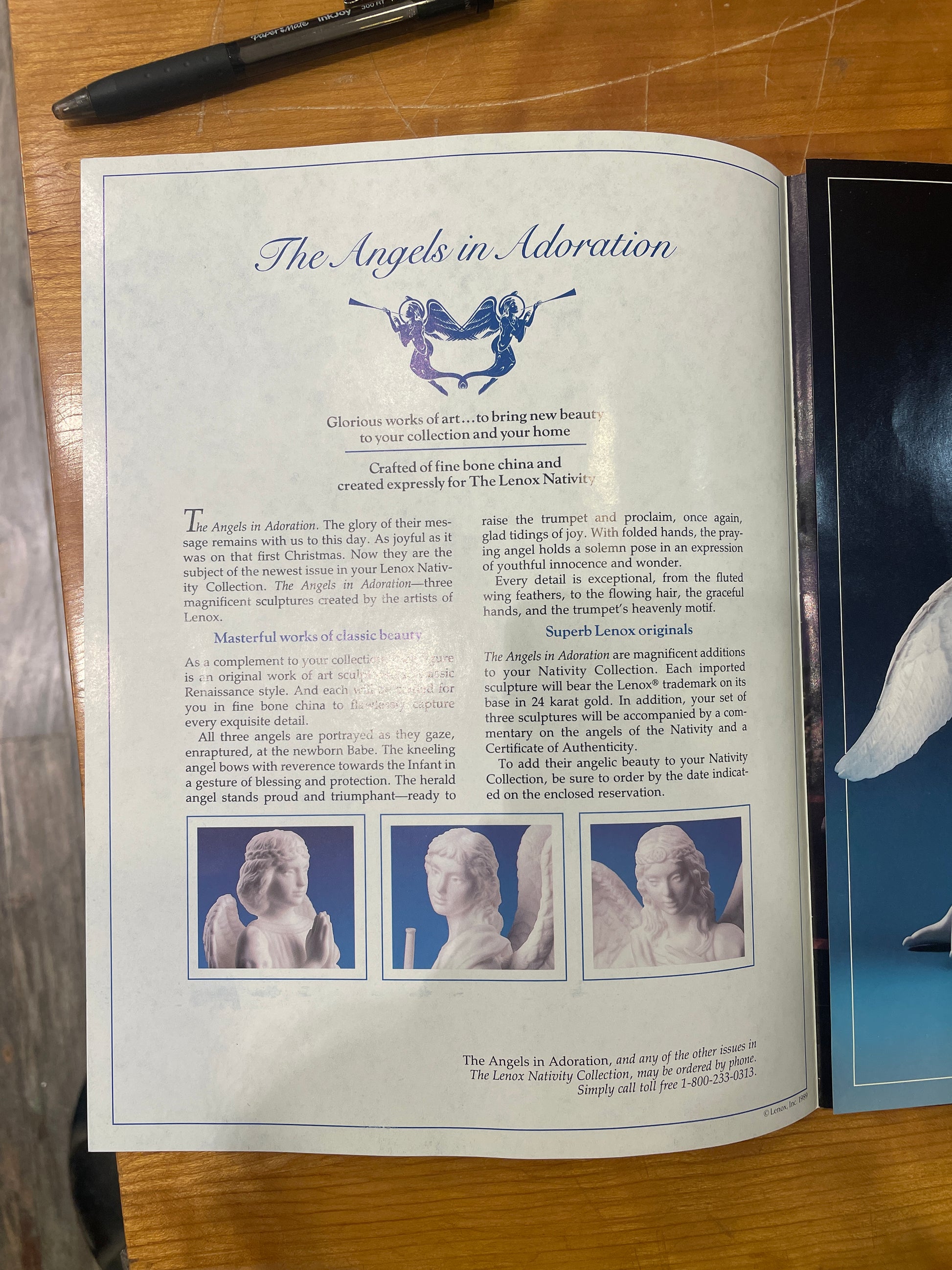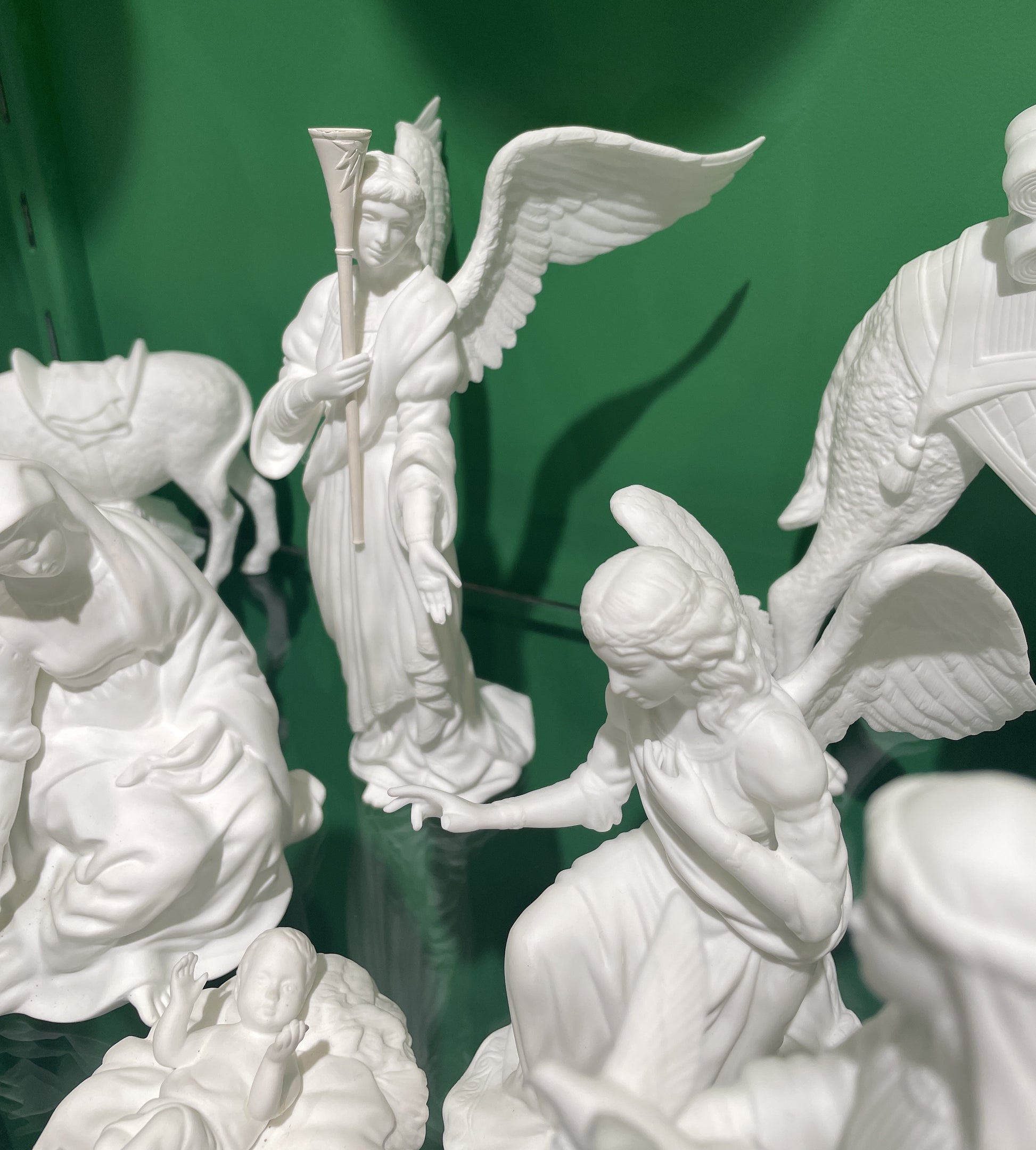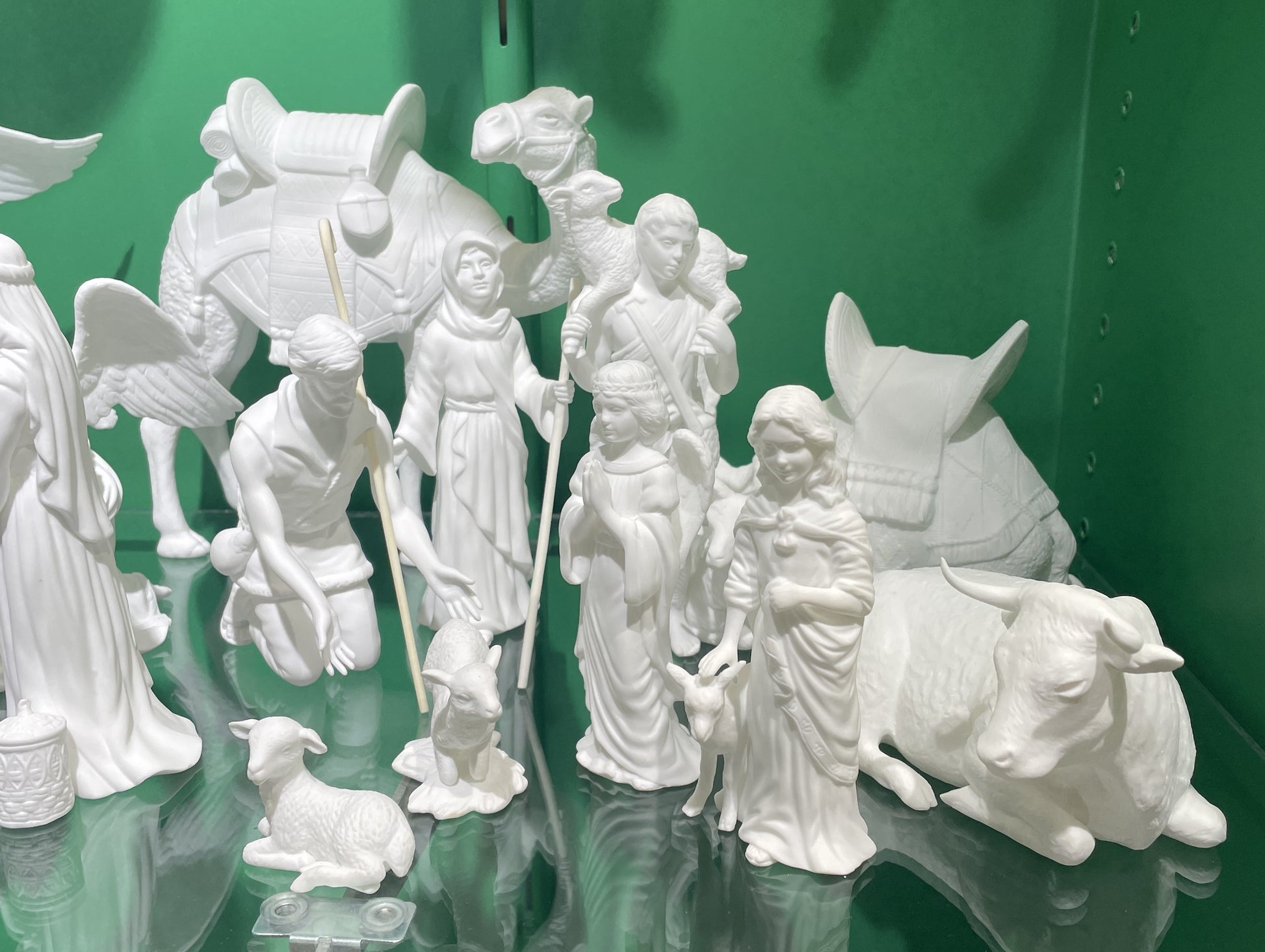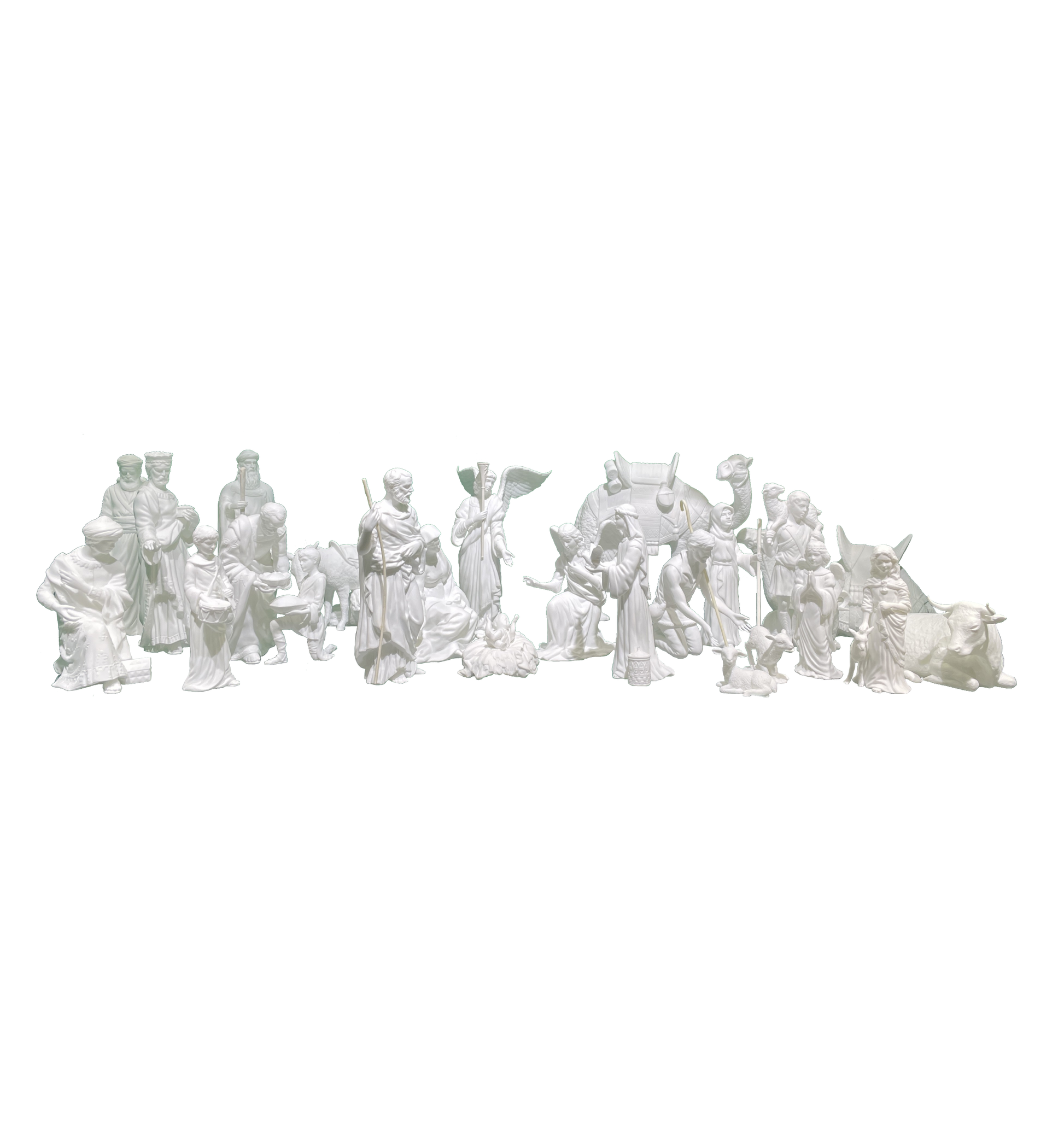 Lenox The Nativity. Boxes included, no creche. This stunning set of porcelain figures depicts the Nativity scene. The pure white figures are intricately detailed from top to bottom. Almost completely in pristine condition, this piece does have two small damaged points. One lamb has a chip on its ear, and a wise man has a repaired hand. See photos for details. A beautiful set that's sure to catch eyes, this Nativity scene is a beautiful statement piece.