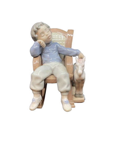 Lladro "All Tuckered Out" Boy Sleeping on Rocker #5846 (0DE003)