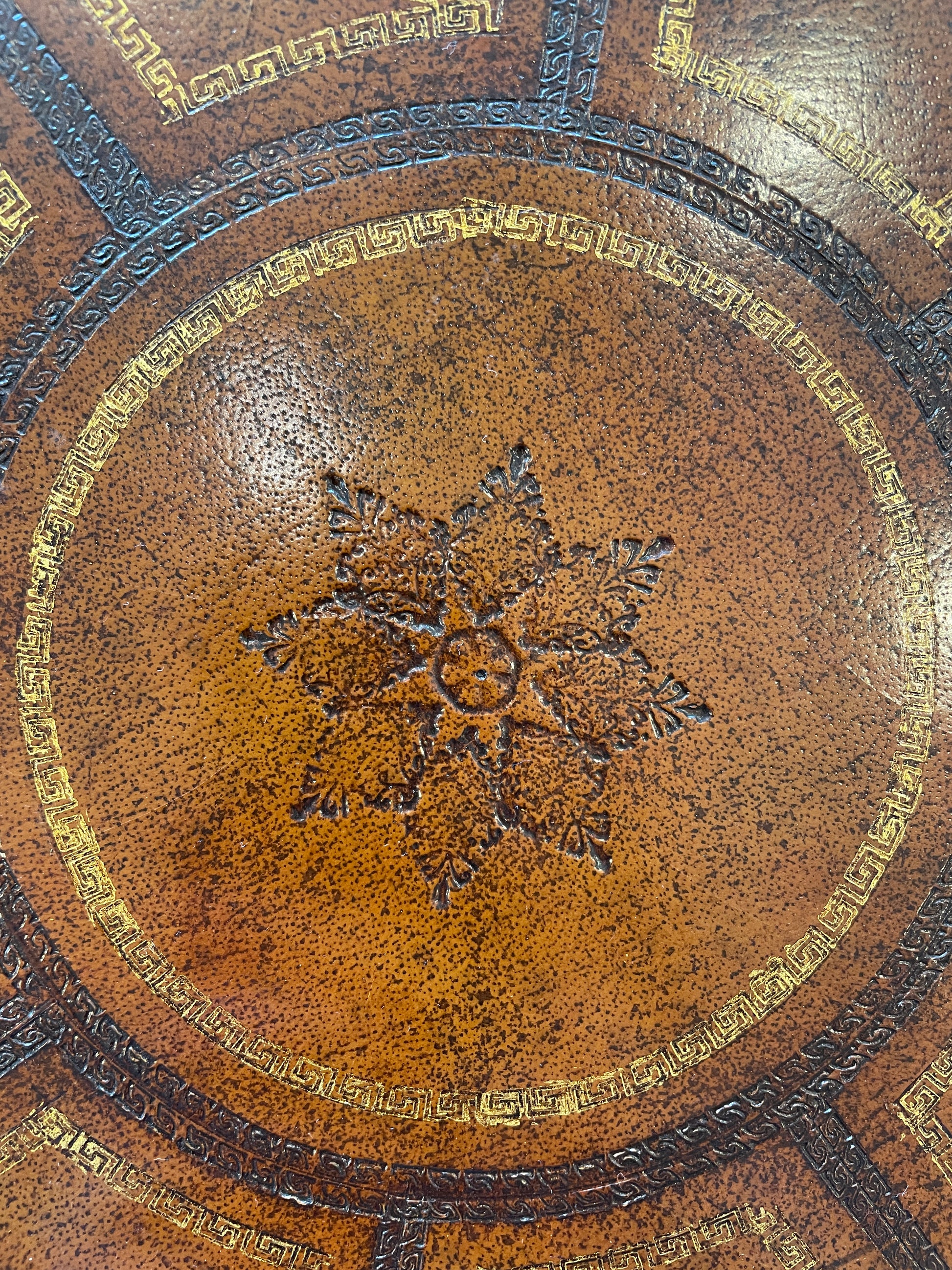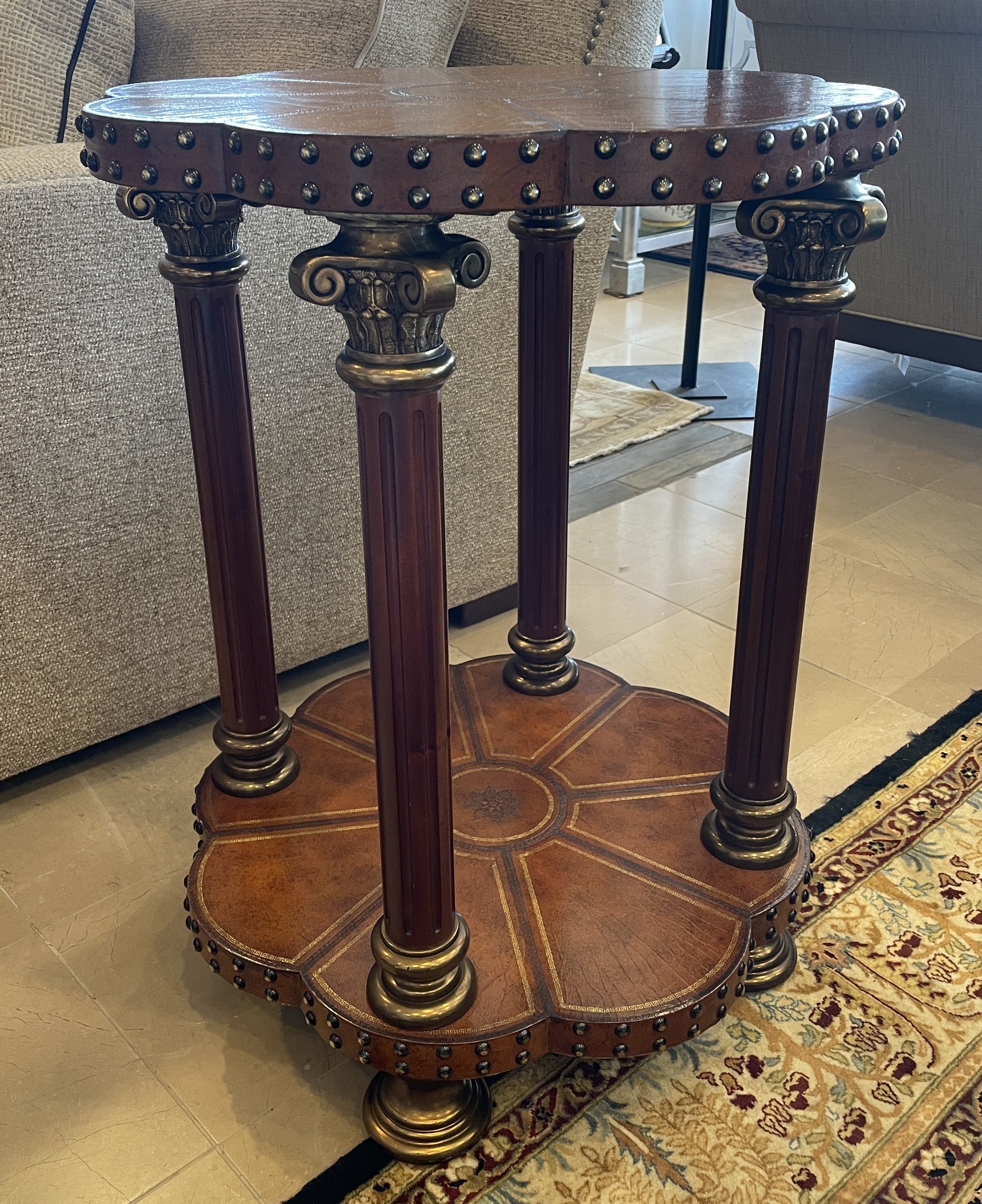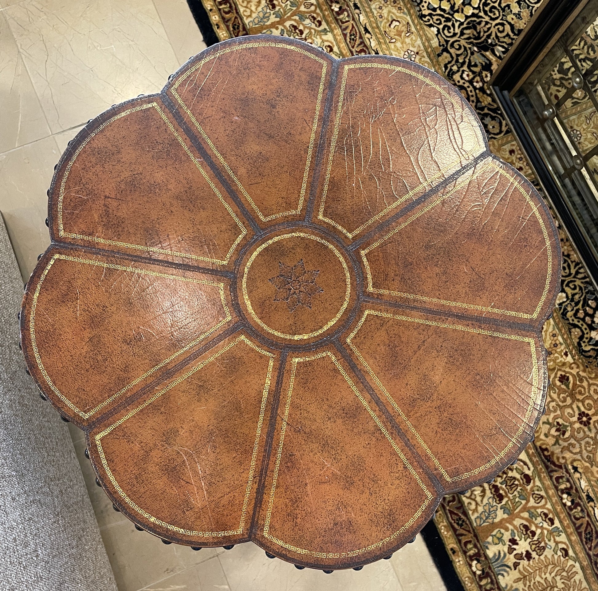Maitland Smith Tooled Leather Clover End Table with Grommets (0G1006)