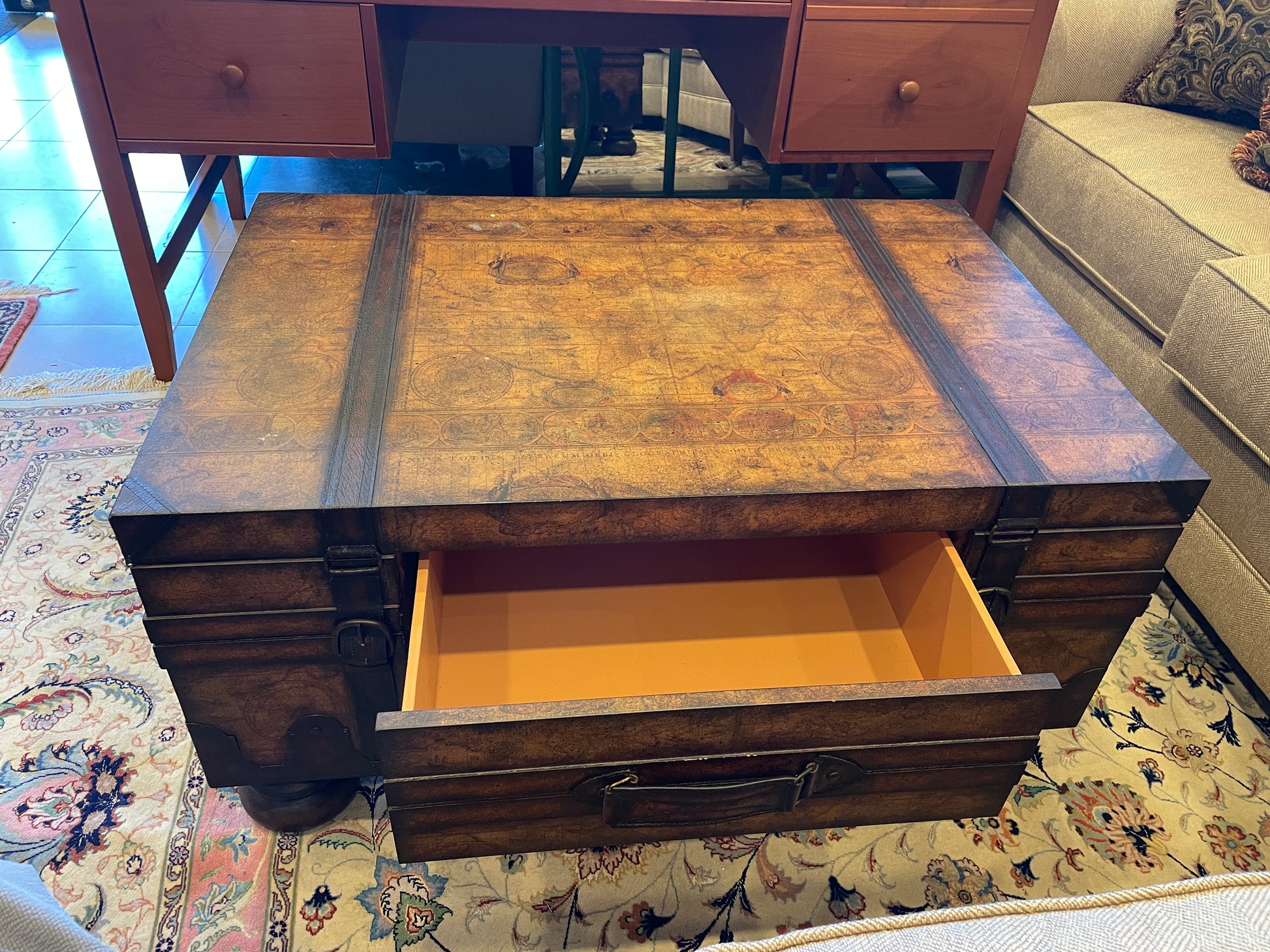 Map Trunk Style Coffee table with drawer, AS IS (0GN005)
