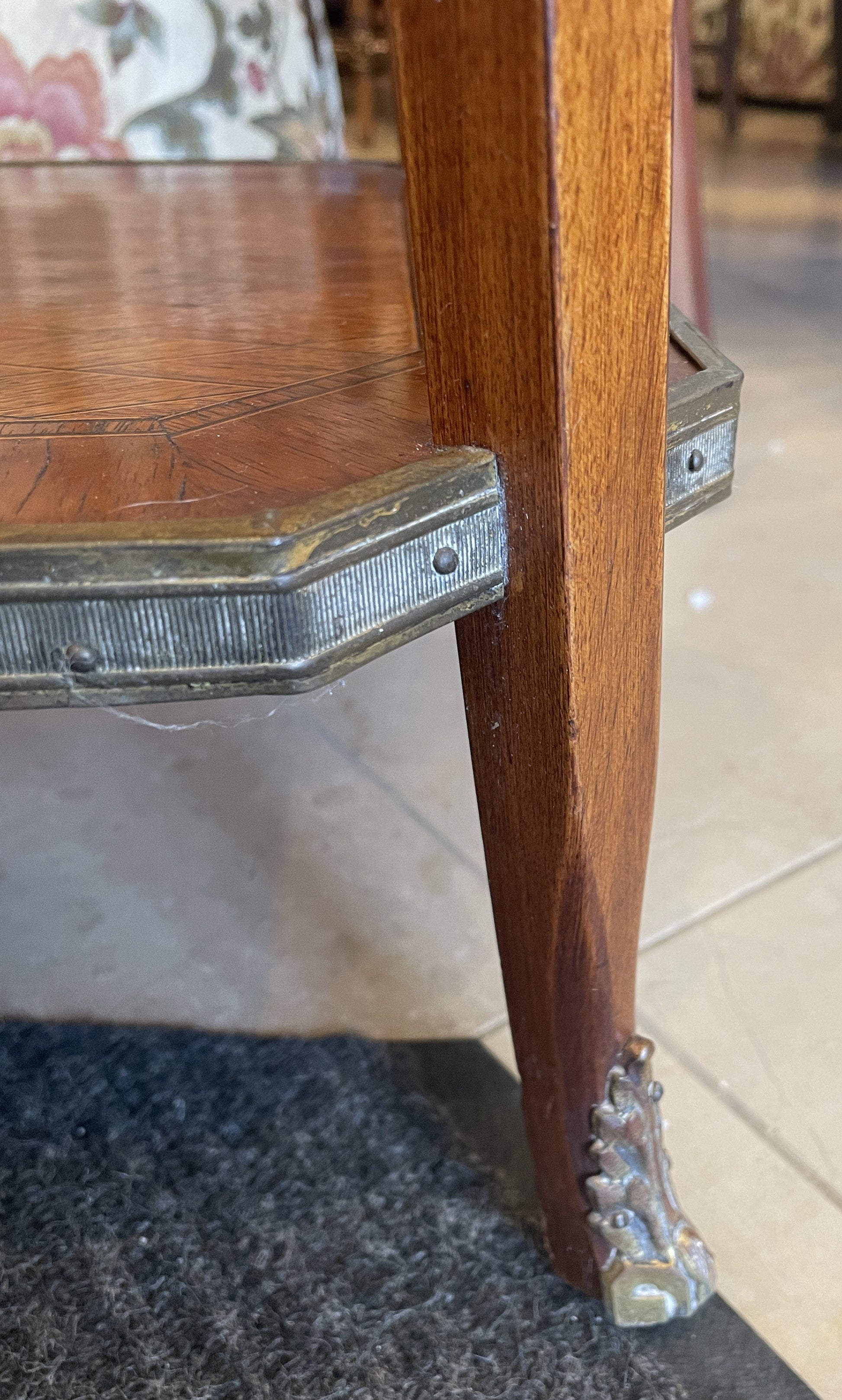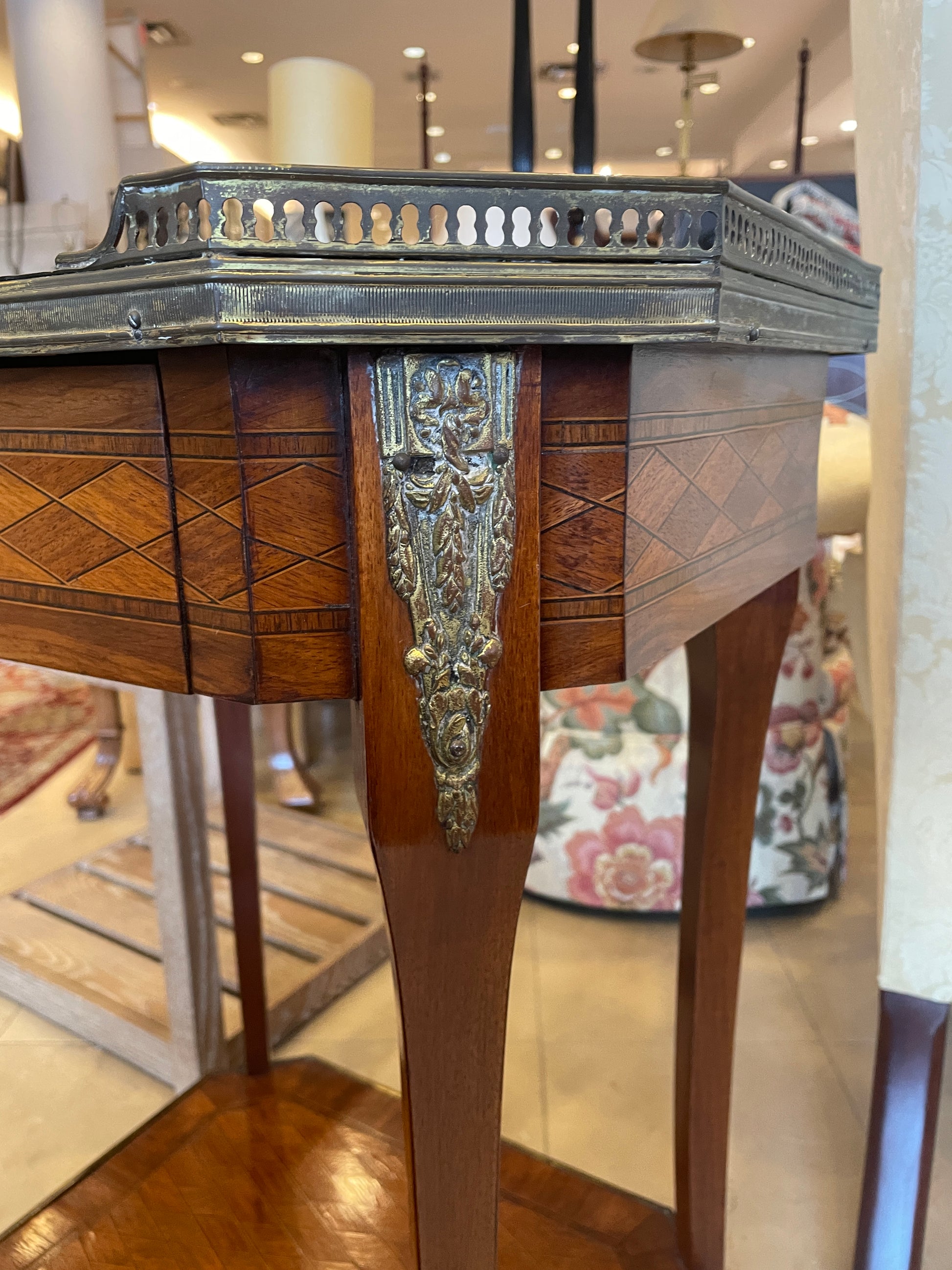 Marquetry End Table with Brass Gallery (0JZ004)