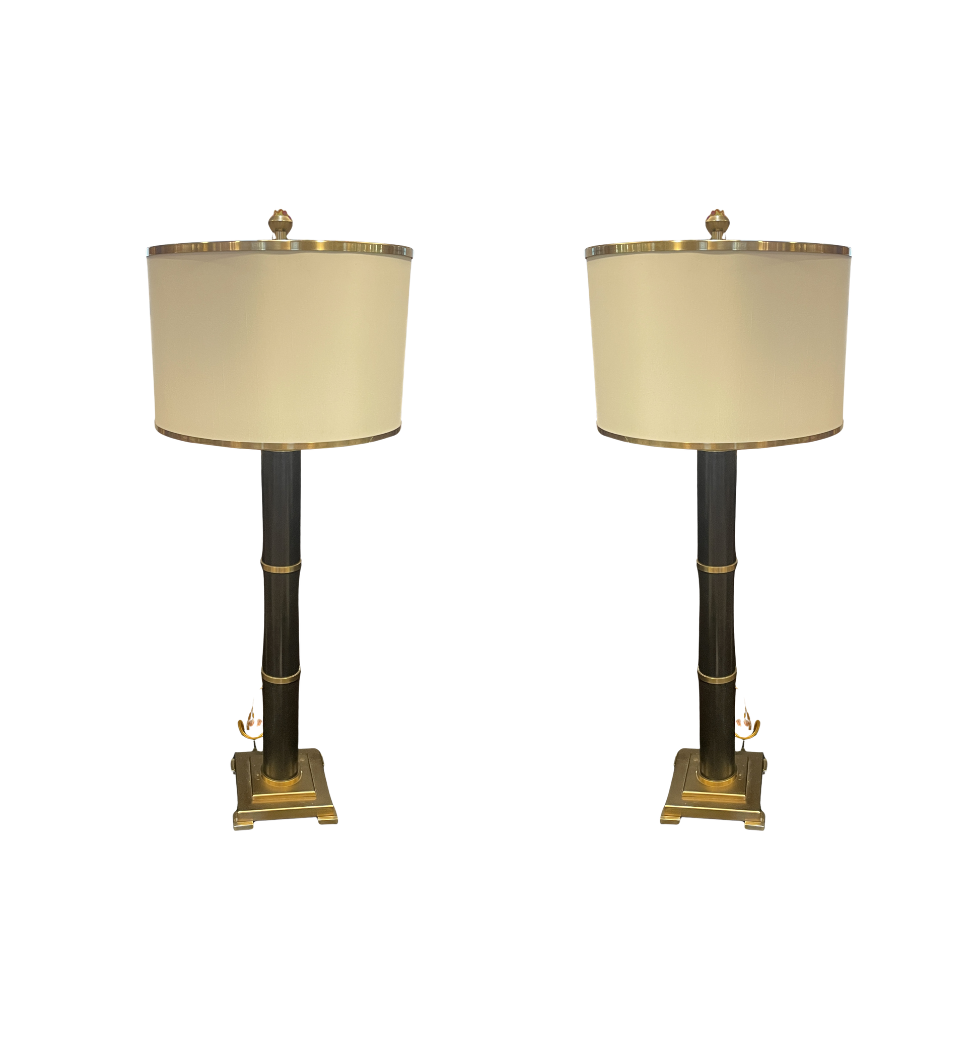 Pr. Black and Brass Regency style buffet lamps (0HE002)