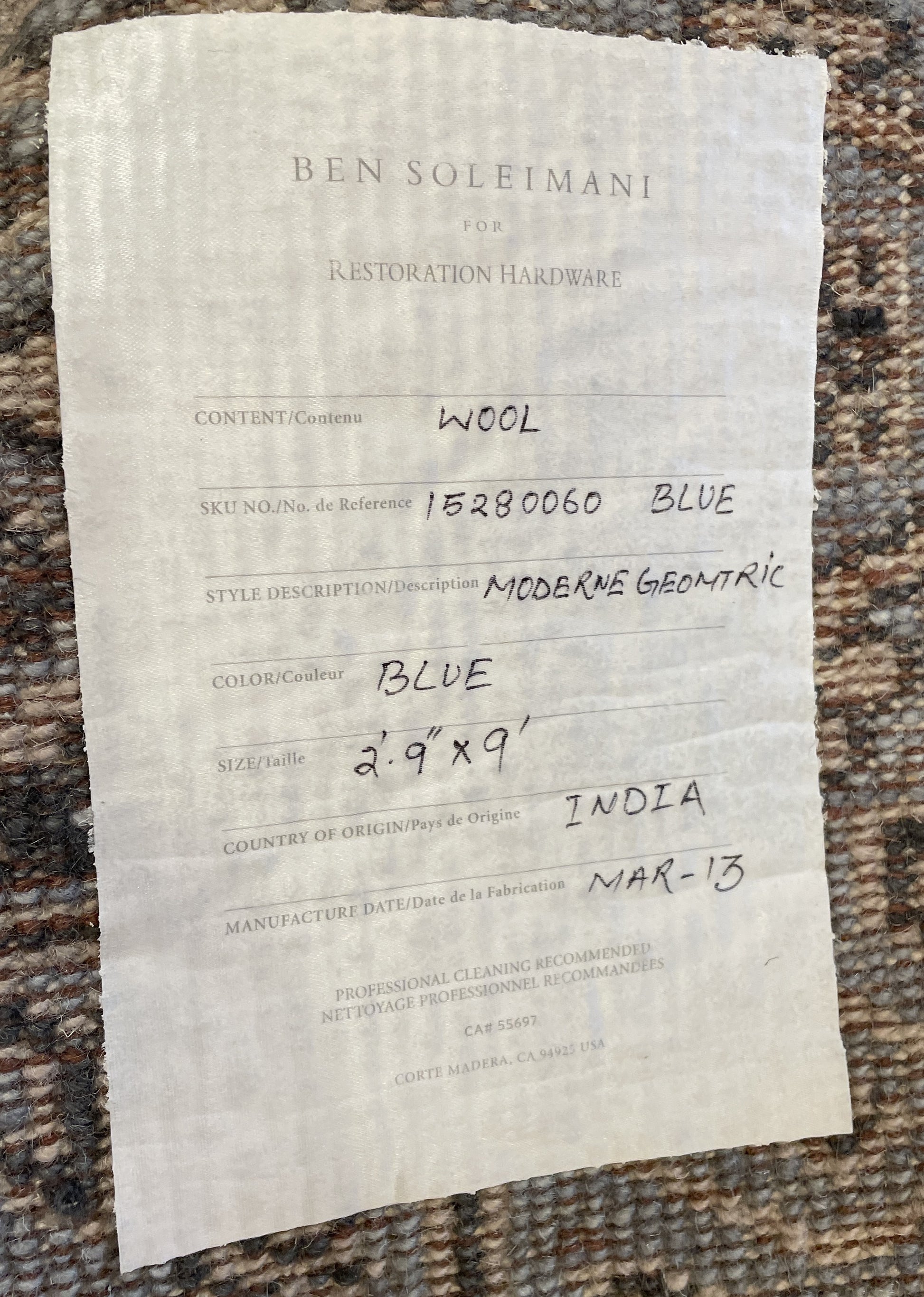 Restoration Hardware Ben Soleimani Runner 2.10 x 9 (04W009)