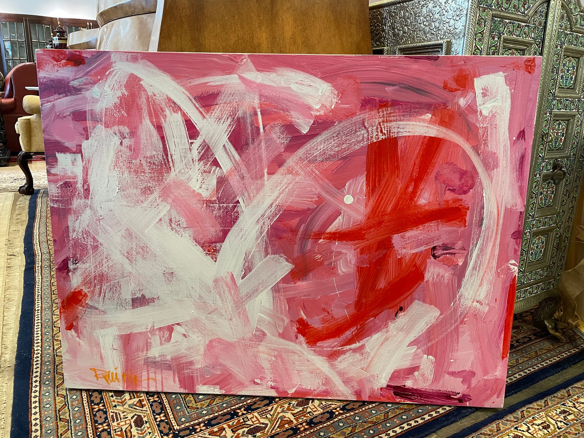 Robbie Kemper Pink Abstract on canvas (0GF004)