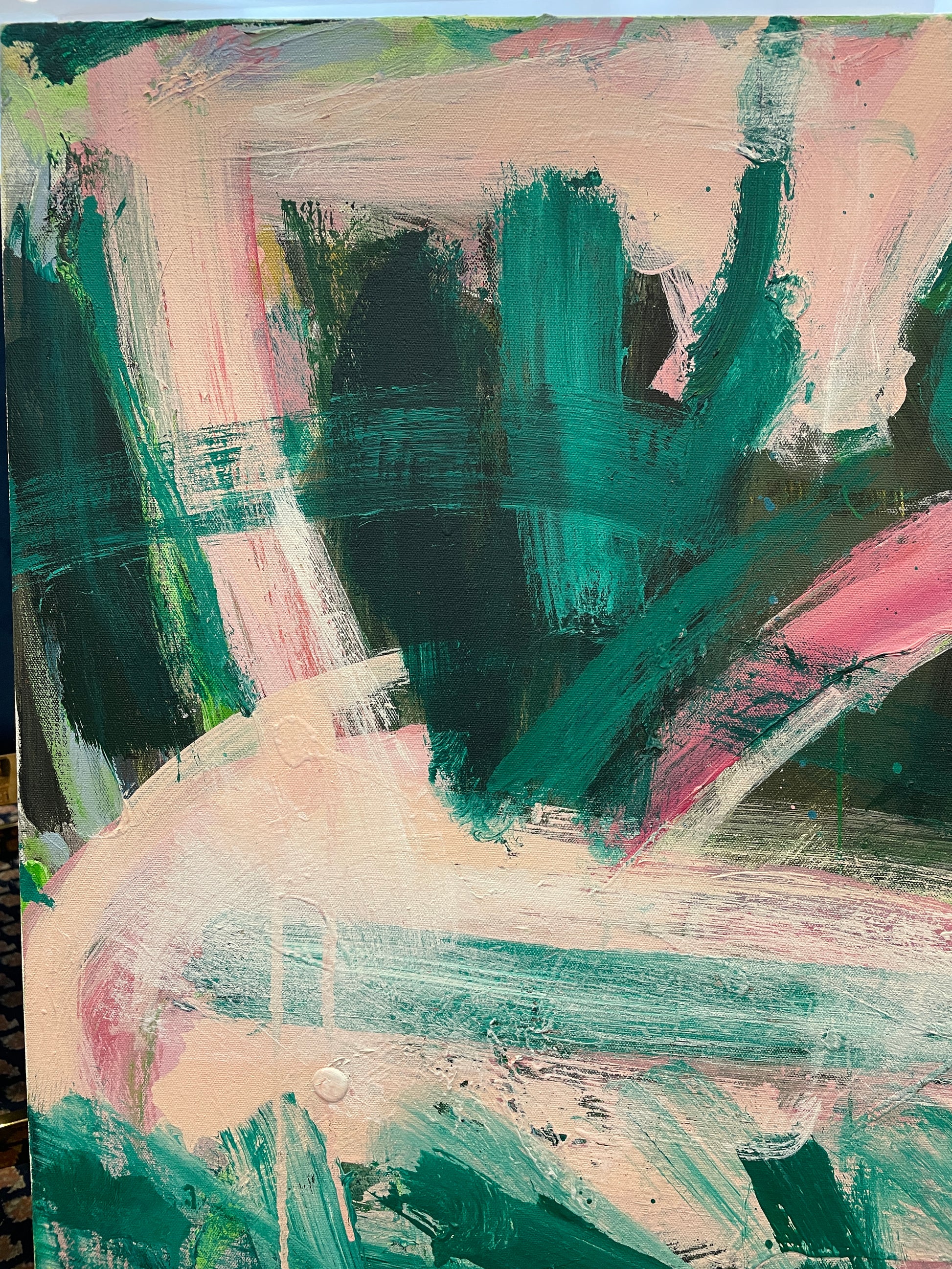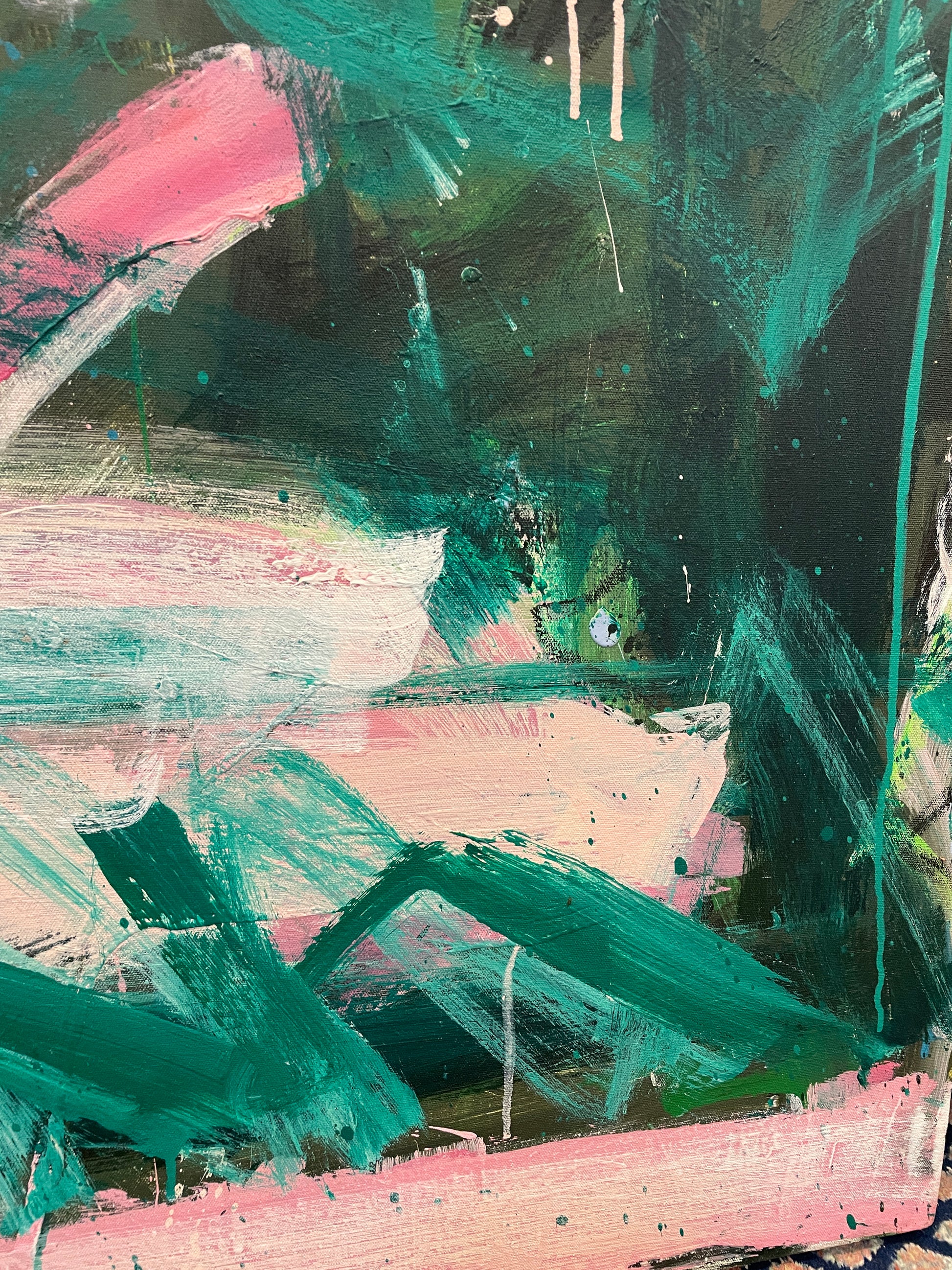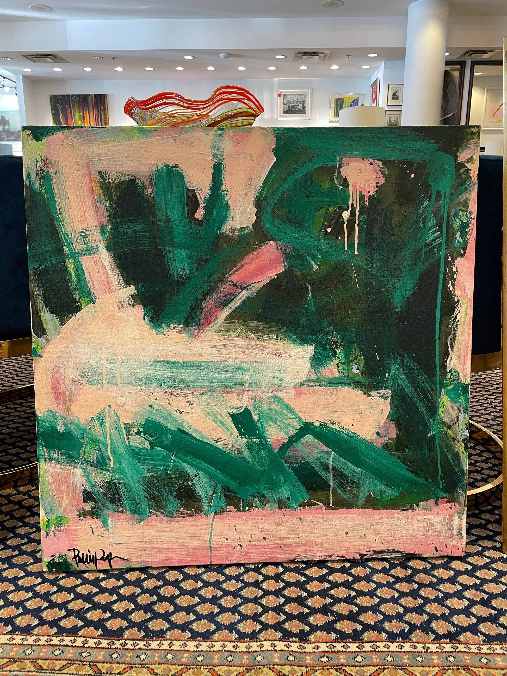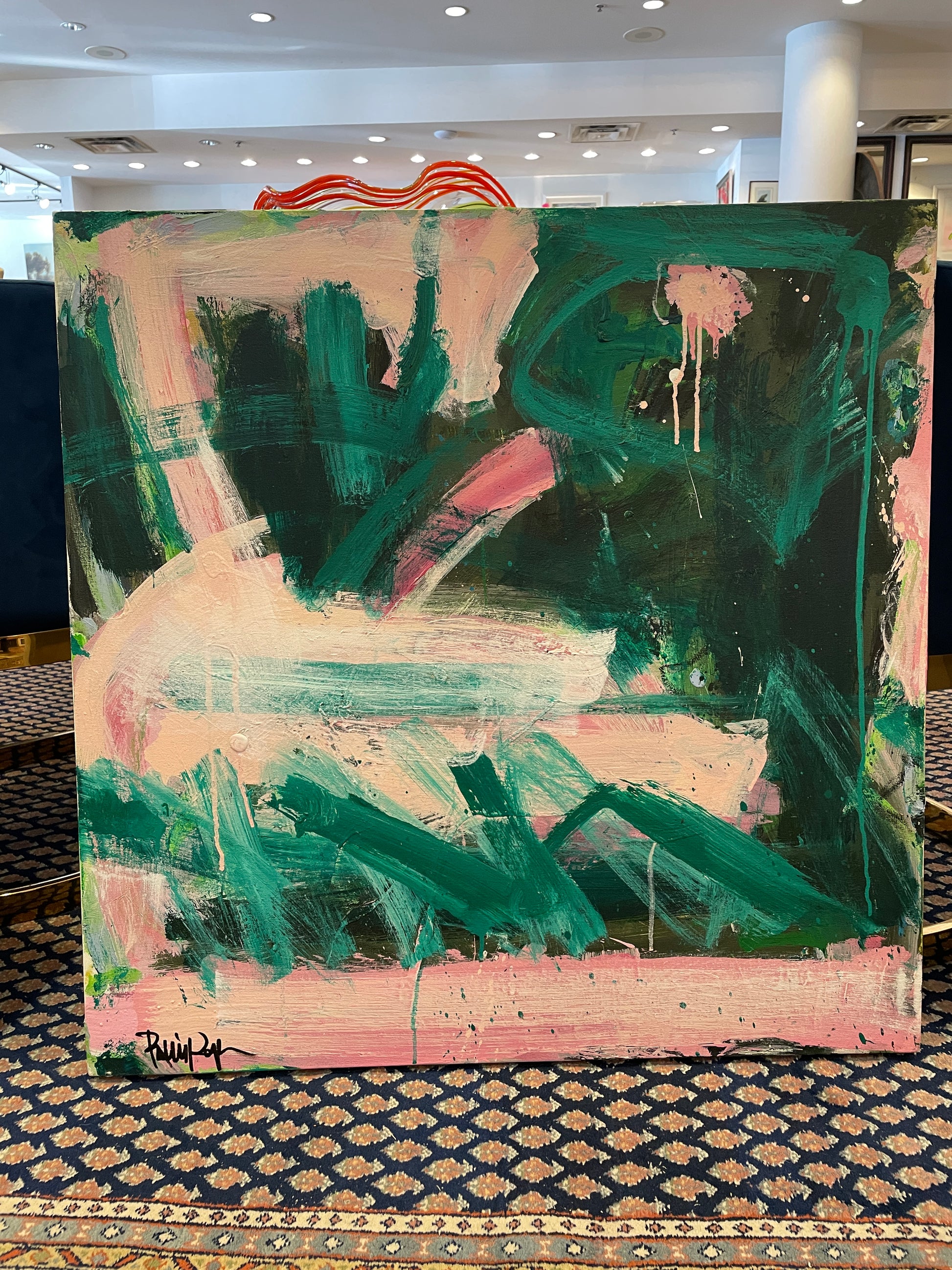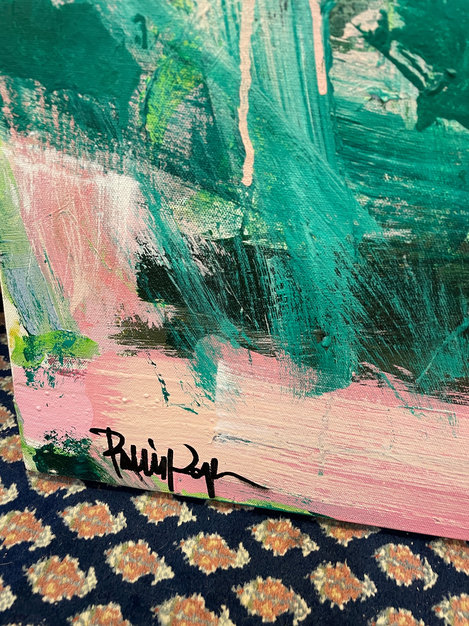 Robbie Kemper Pink and Green Abstract on Canvas (0GF005)
