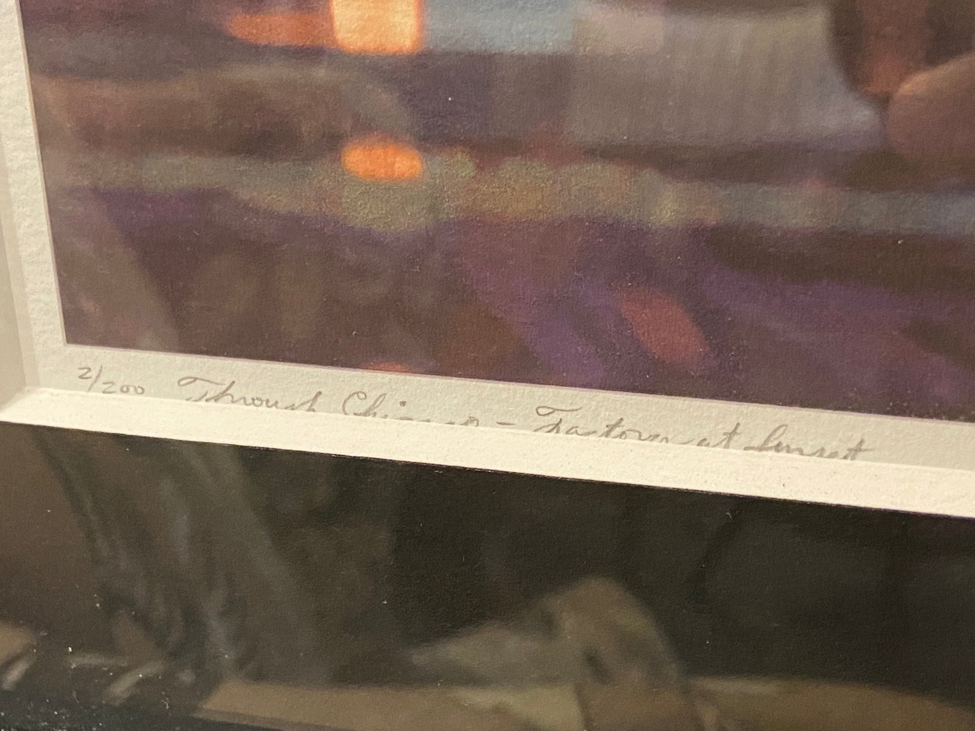 Landscape Giclee on cotton paper by Robert Reddy titled "Through Chicago- Factory at Sunset." Made on 12/05/02 and numbered 2/200. Title, date and artist signed on bottom.