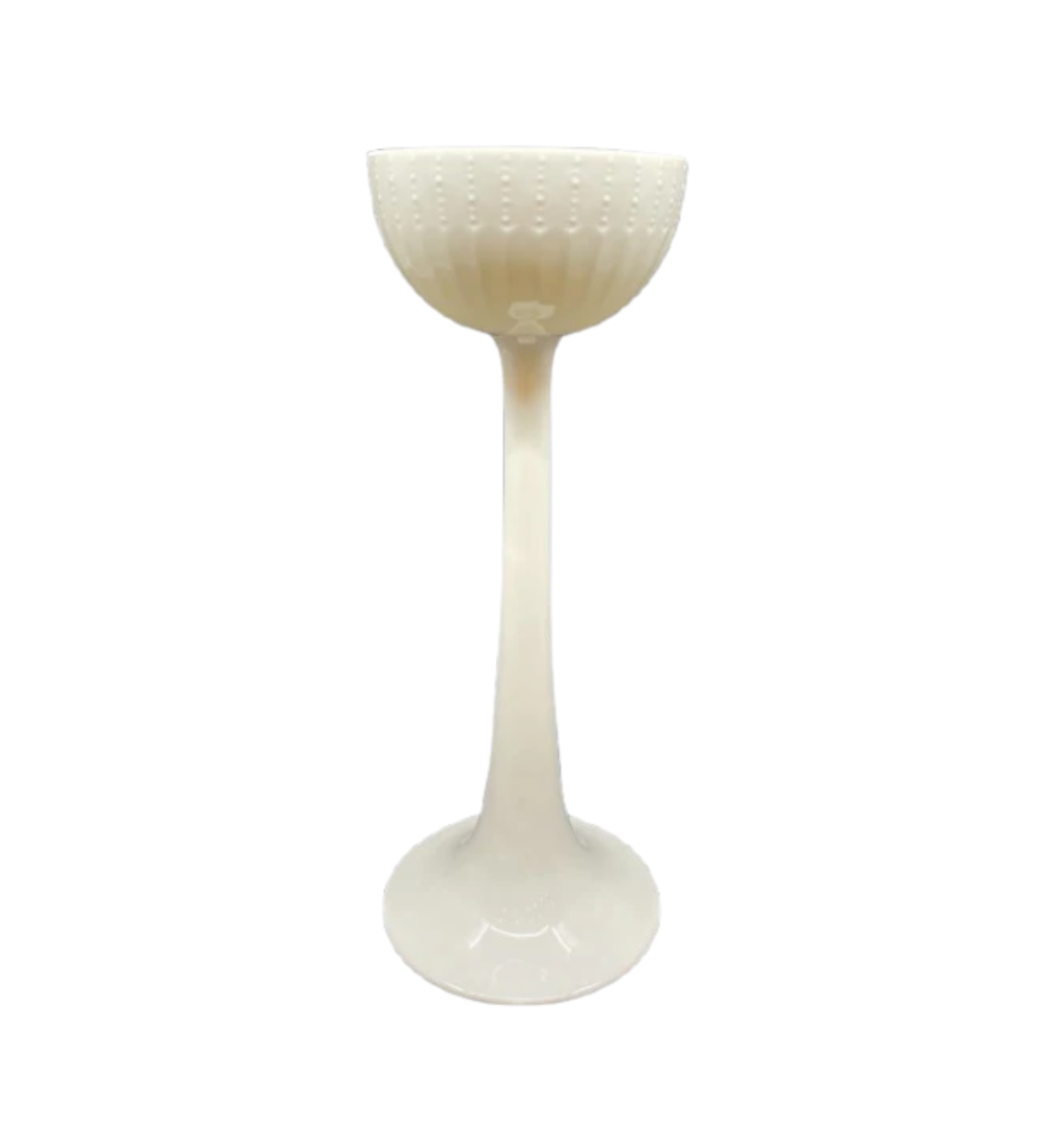 A sleek and elegant Rosenthal candle holder crafted from fine porcelain. The piece features a tall, slender stem leading to a rounded cup with a delicate embossed pattern, typical of Rosenthal’s sophisticated design aesthetic. The base bears the Rosenthal hallmark, confirming its authenticity and origin in Germany.