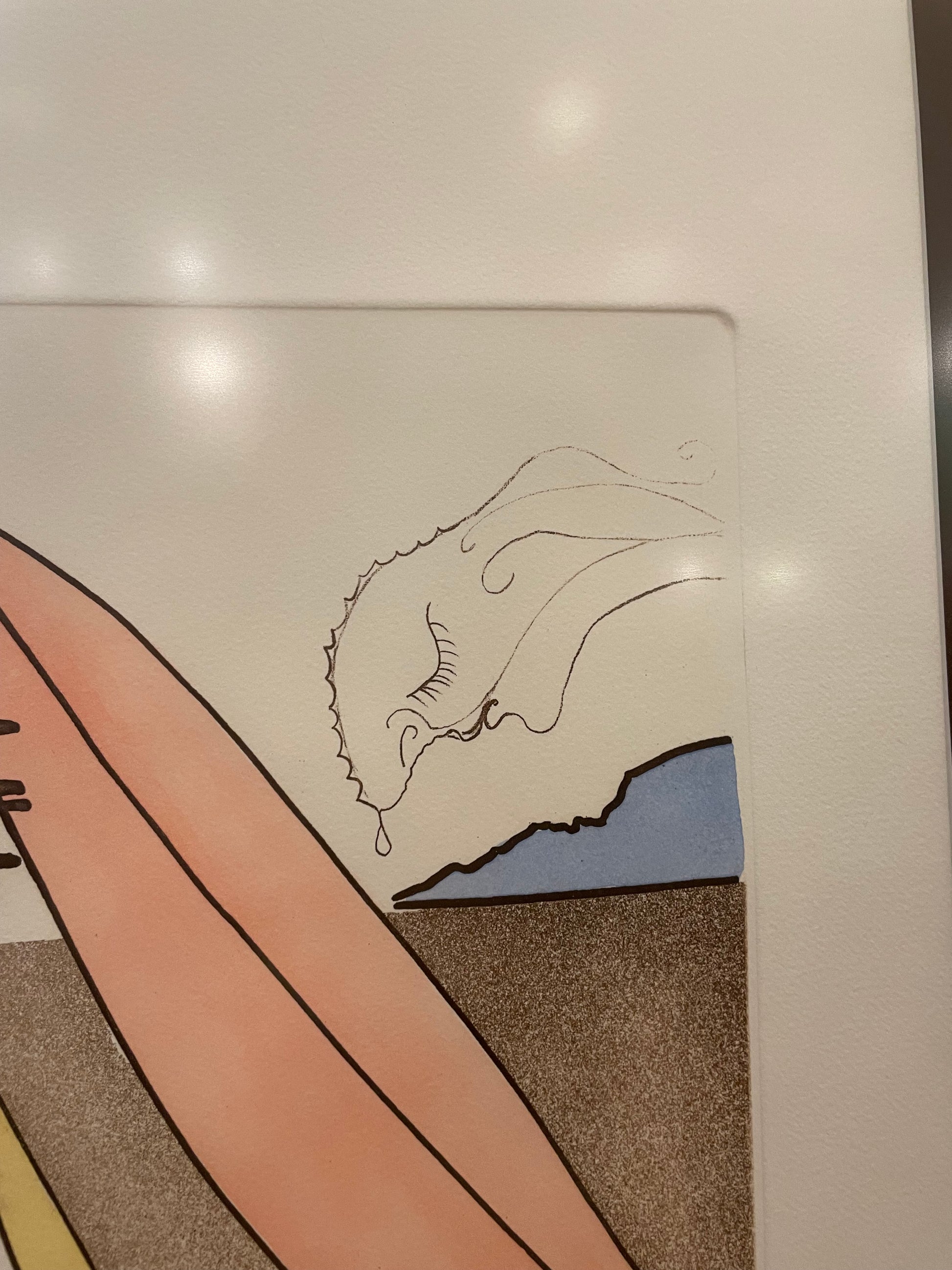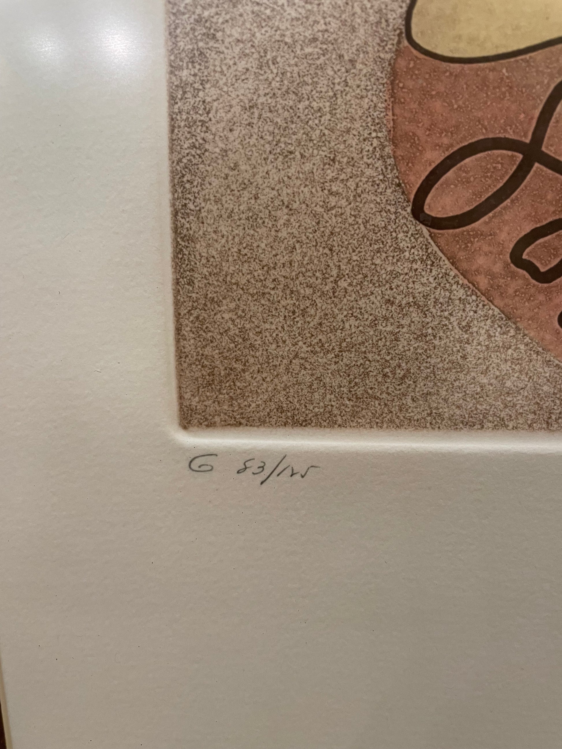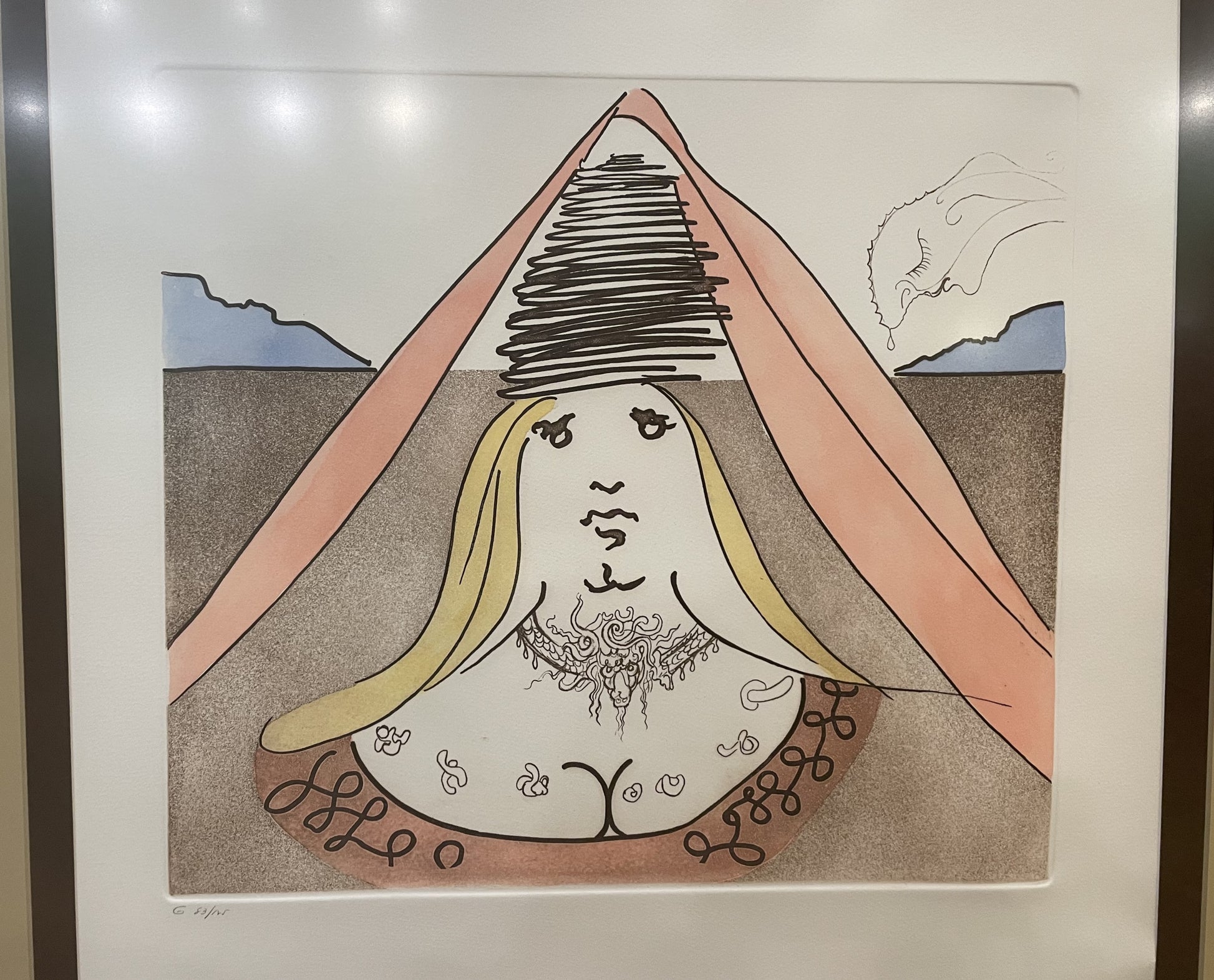 Framed etching titled, "The Lady from Dulcinea de Don Quichotte De la Mancha" by Salvador Dali (Spanish 1904-1989). Features a female figure with long blonde hair. Signed and numbered in pencil (83/125). The print sits in a custom frame with tan matting.
