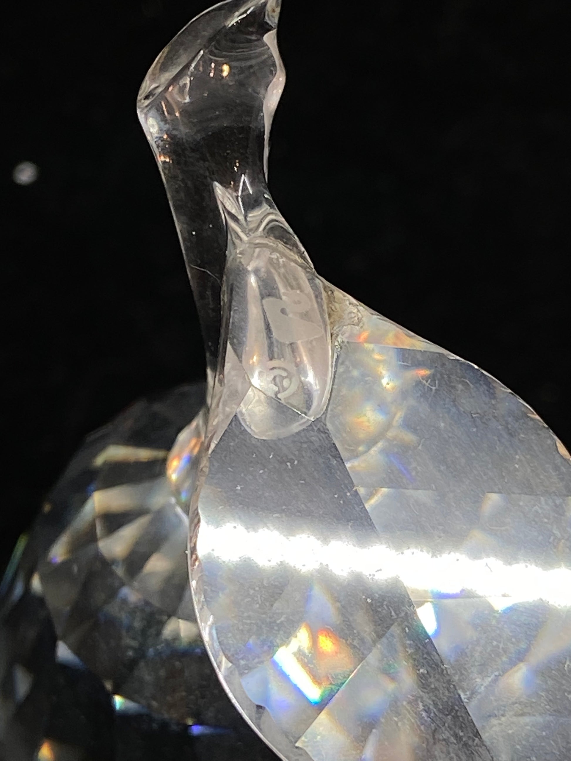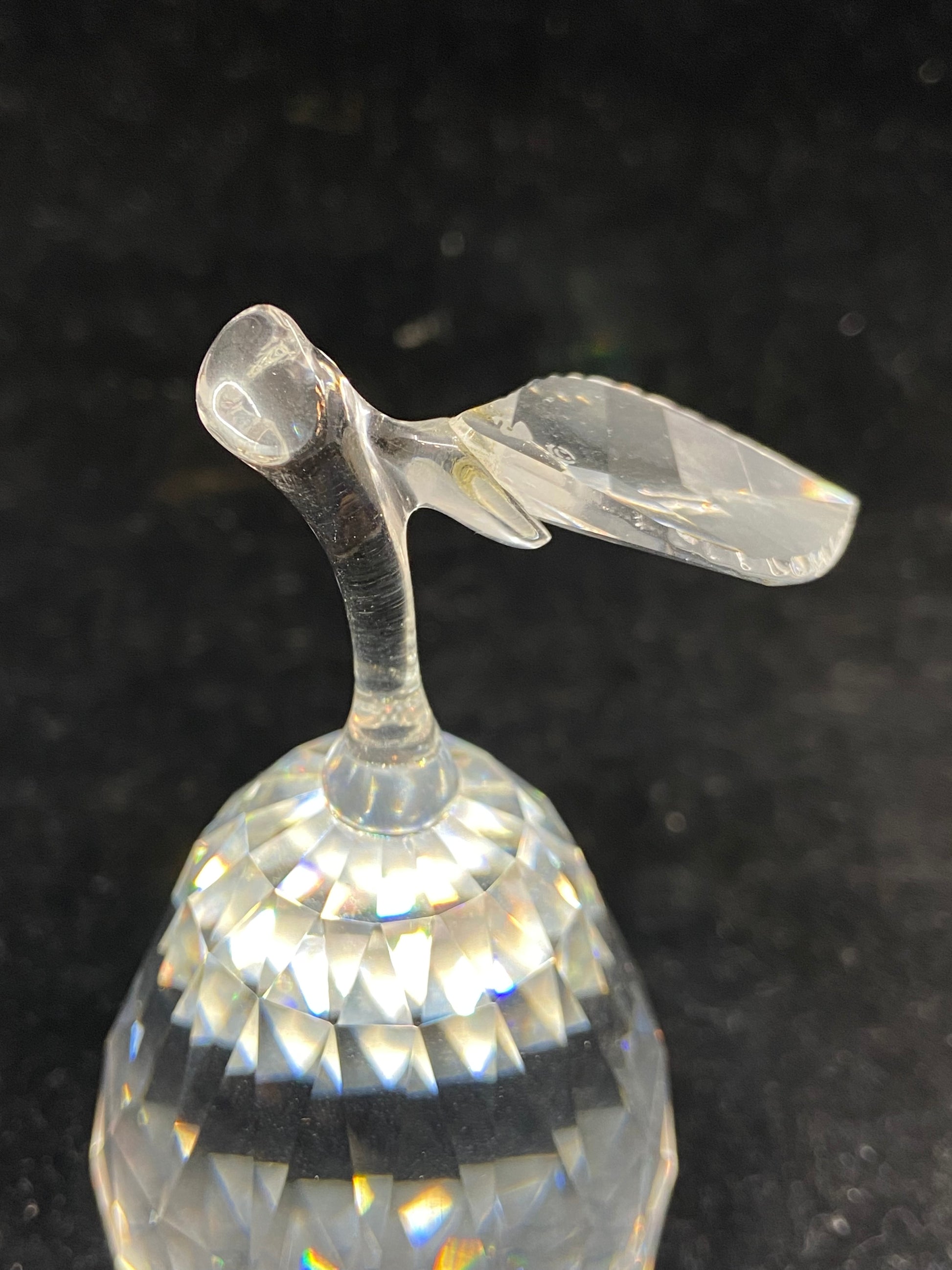 Swarovski pear designed by Michael Stamey. Introduced in 1991 and retired in 1997 this pear is made of cut crystal. Pear features a stem and leaf.