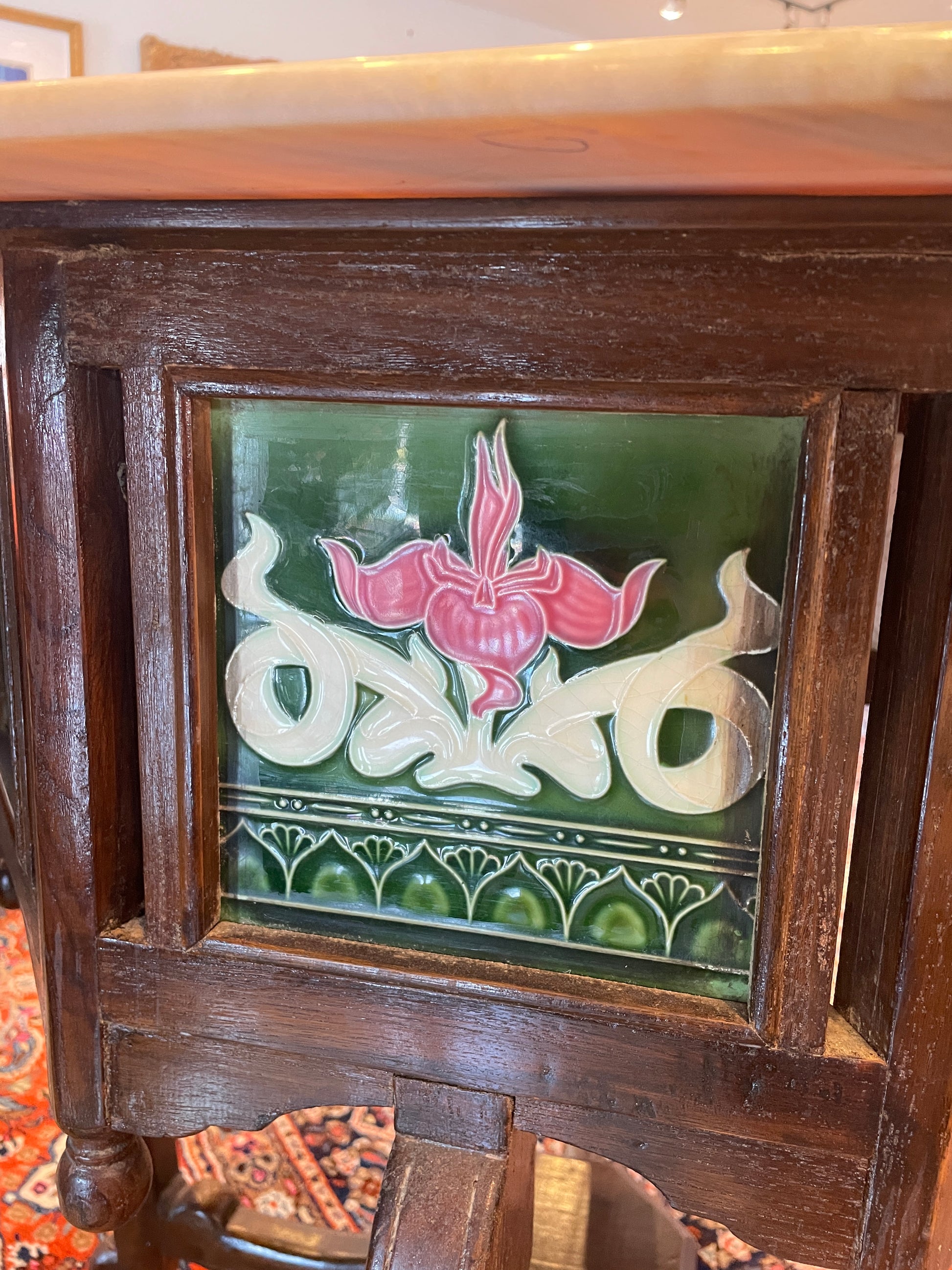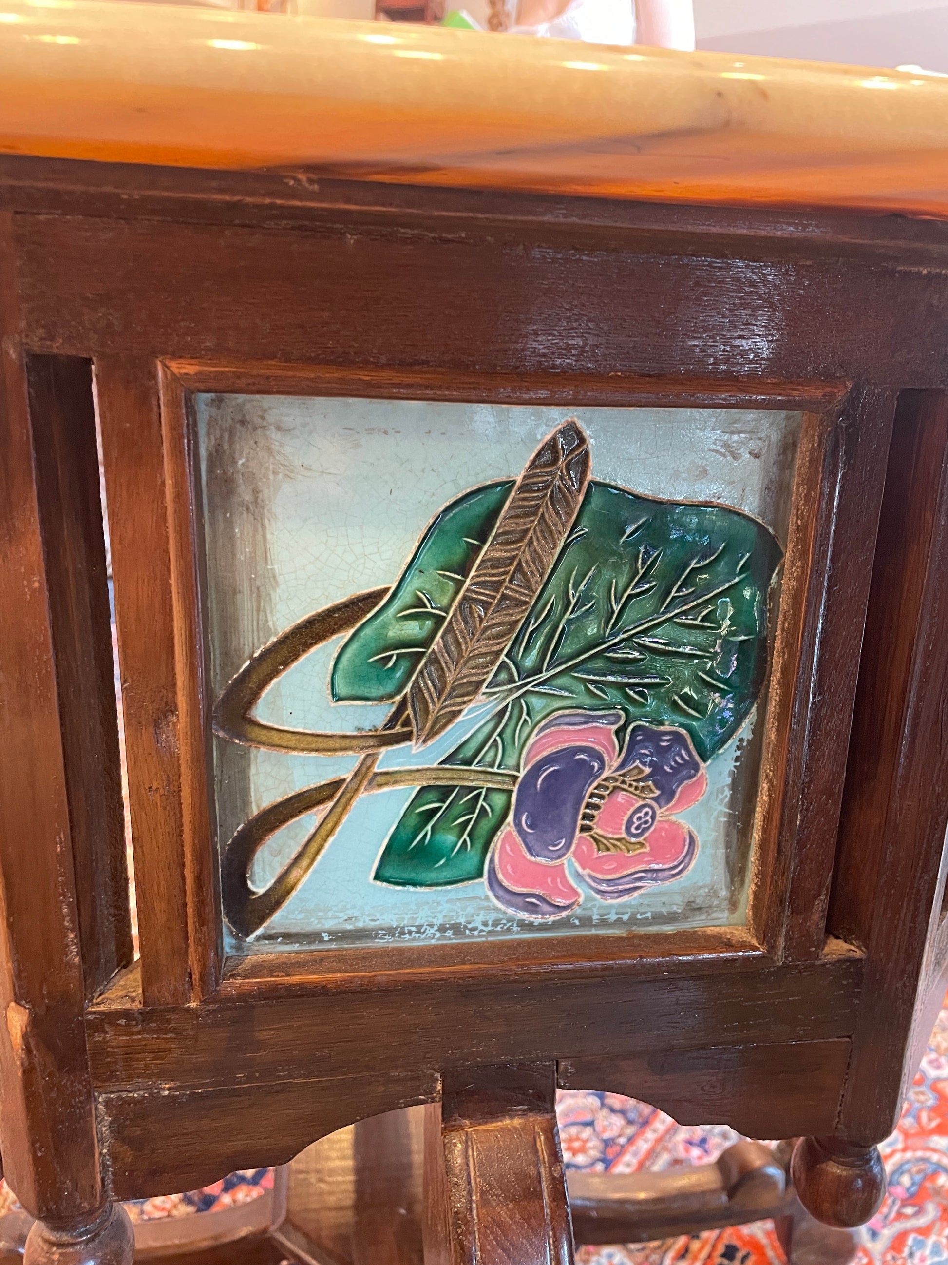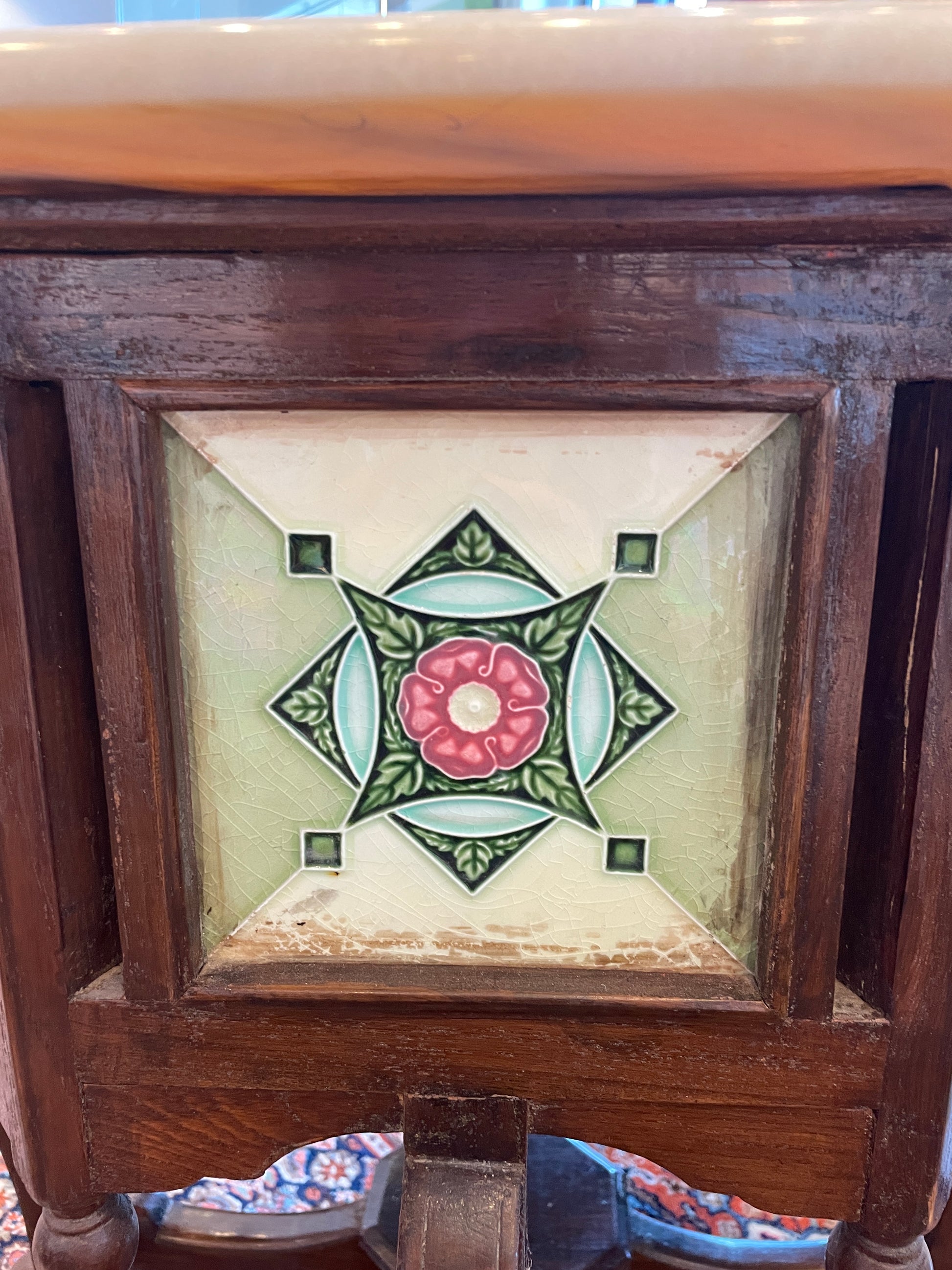 Teak Hexagonal Table with Tile Inserts (0EA00E)