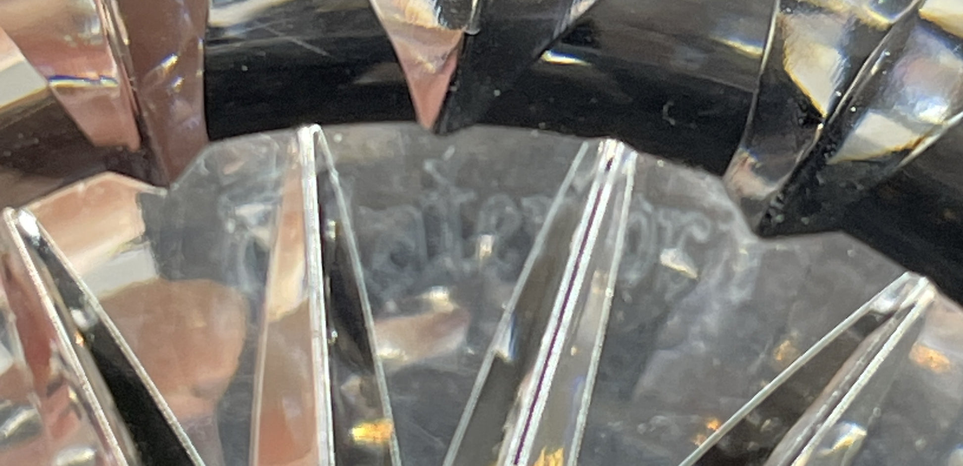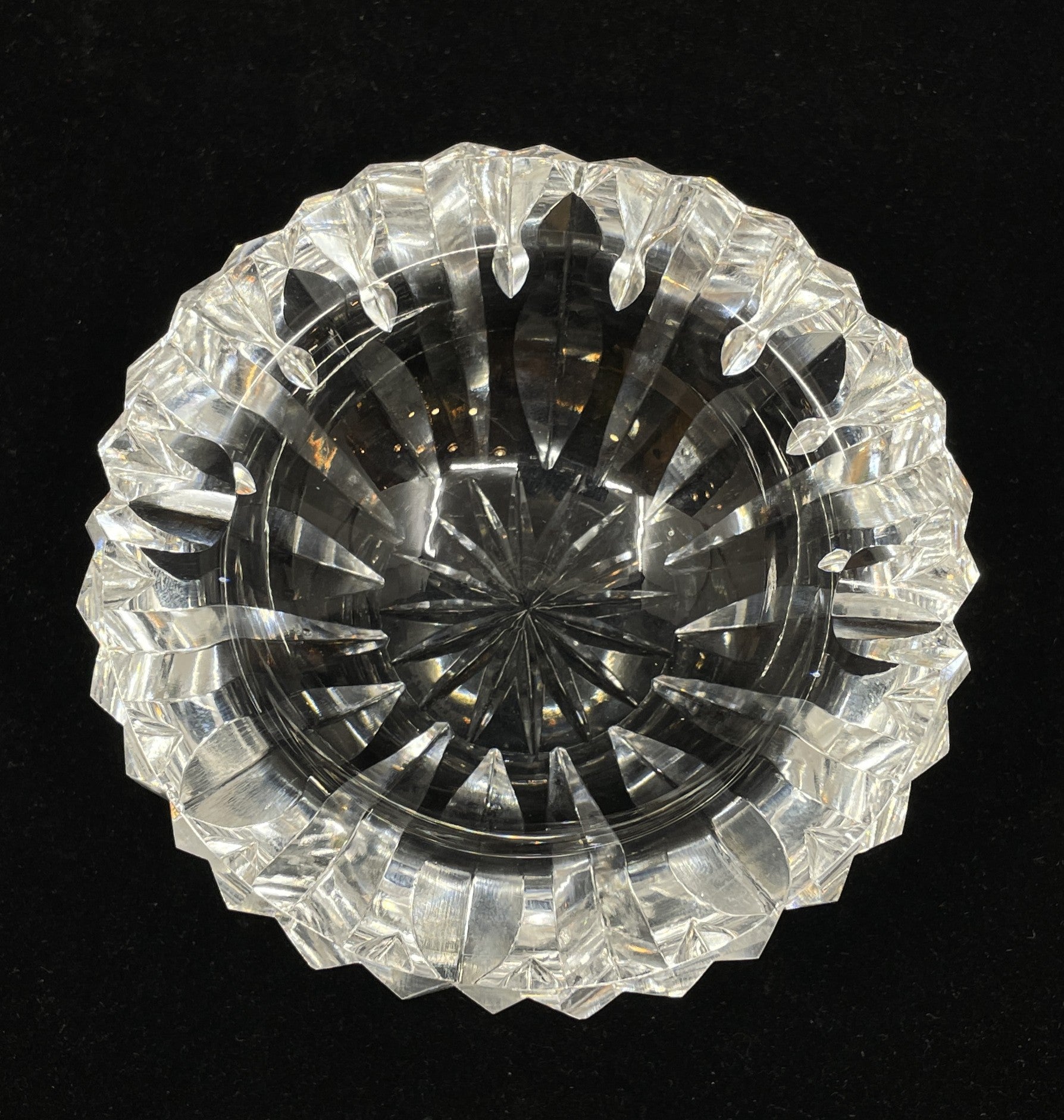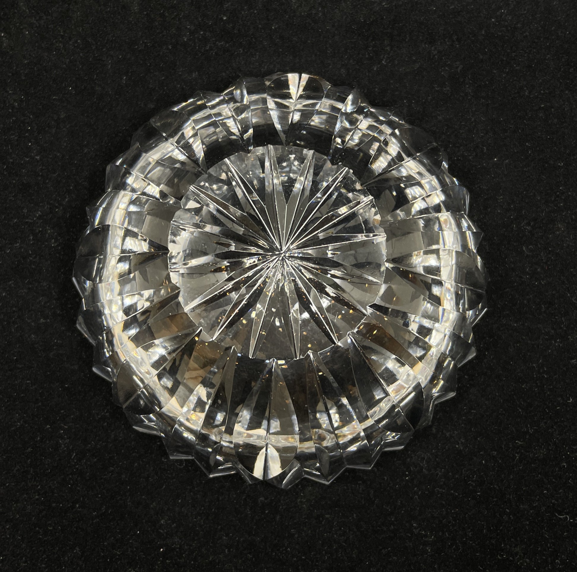 Waterford ashtray or ring dish. This beautiful little dish was originally designed to be an ashtray, but can be used as a dish as well! The piece is small in size, and covered in beautiful cut crystal details that sparkle when they catch the light. A charming piece that's sure to add a touch of luxury with however it is used.