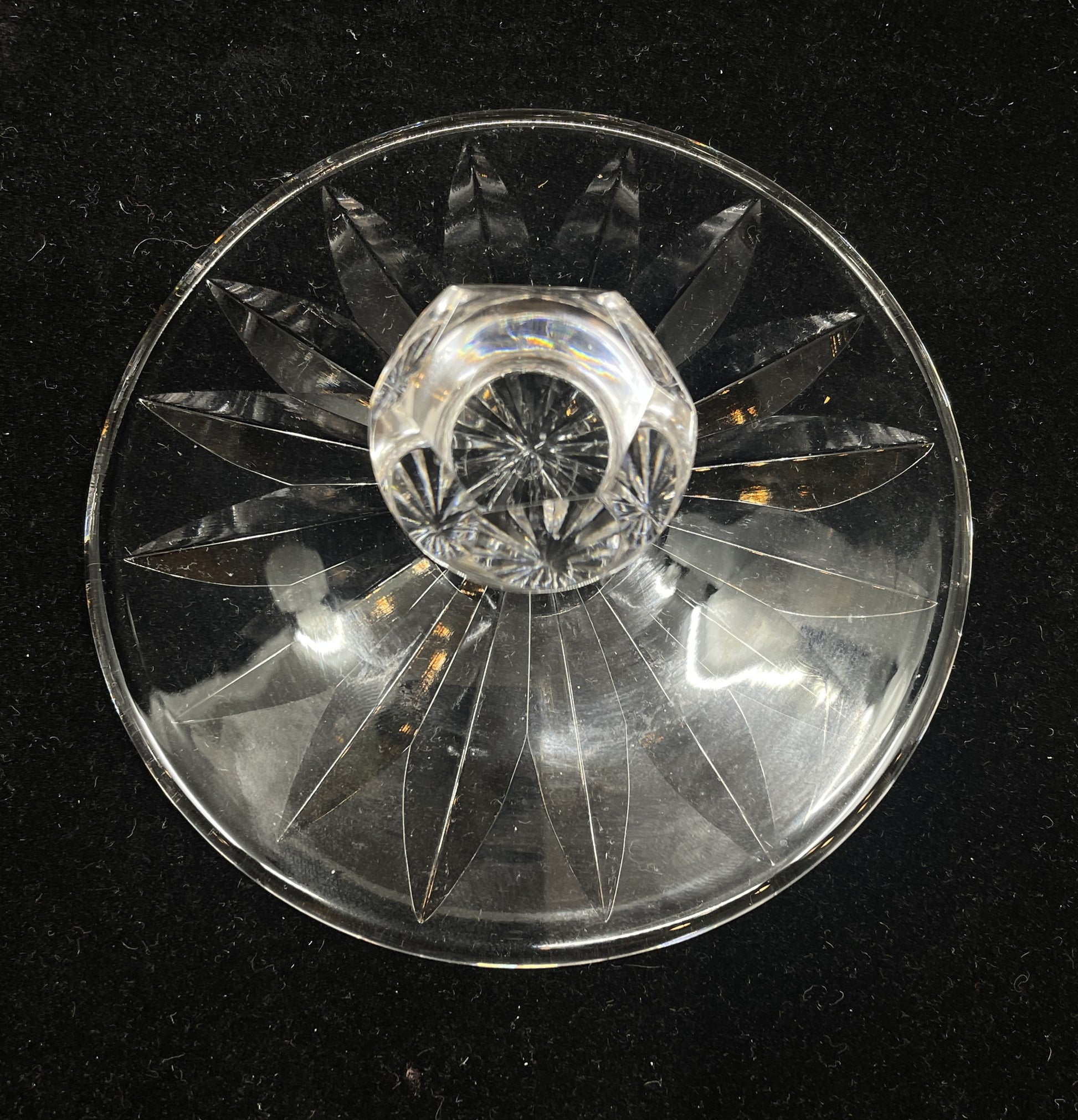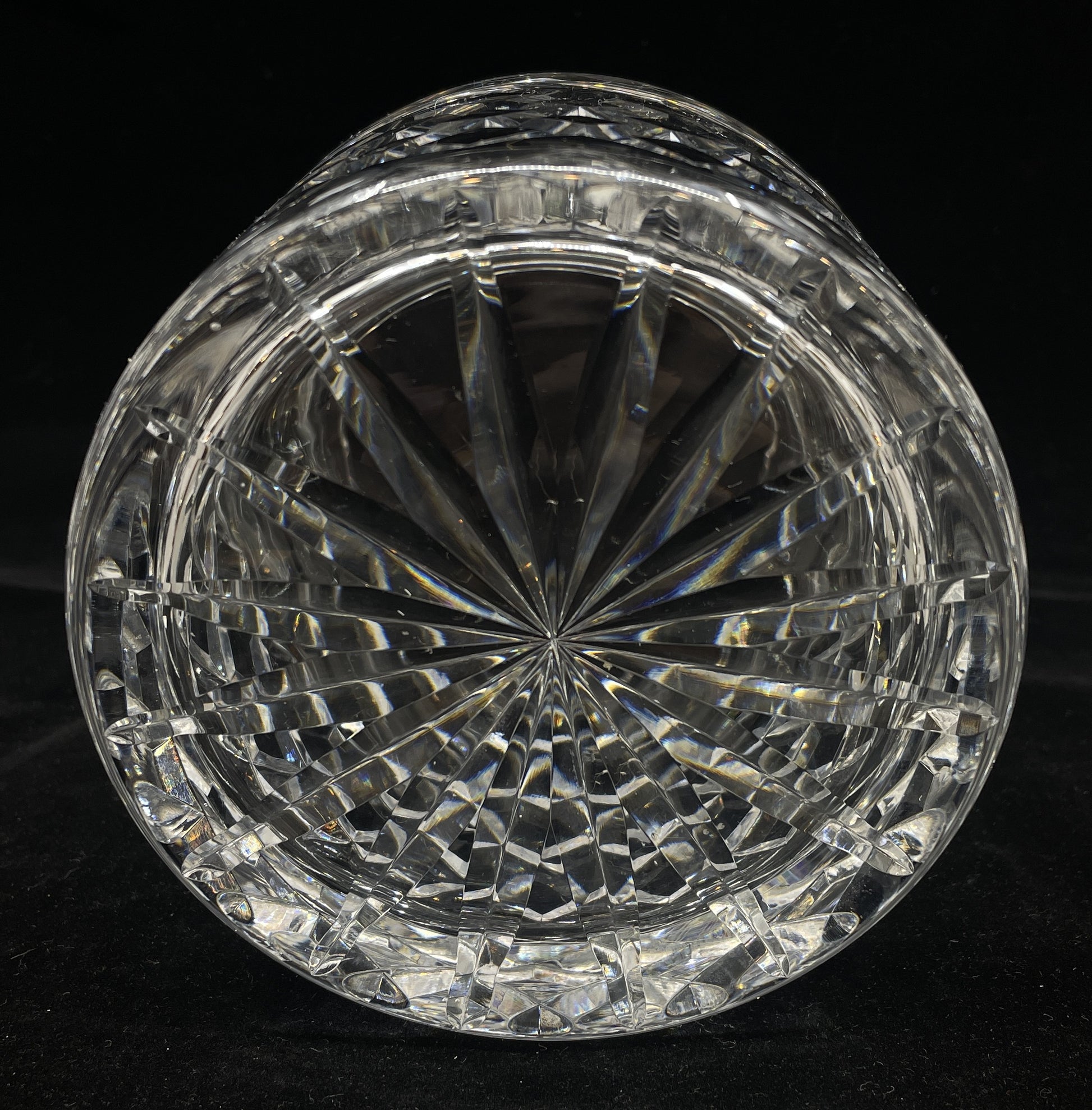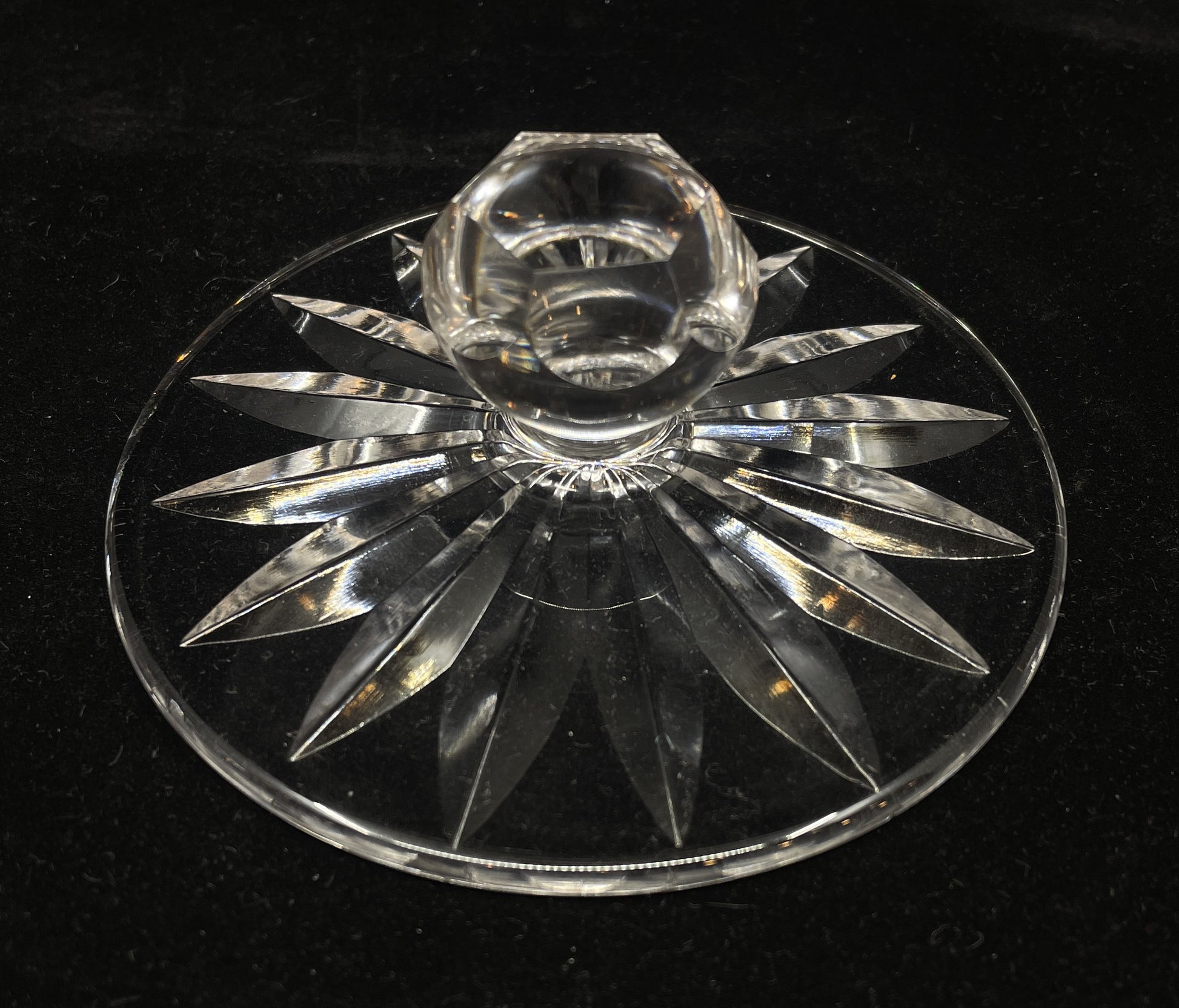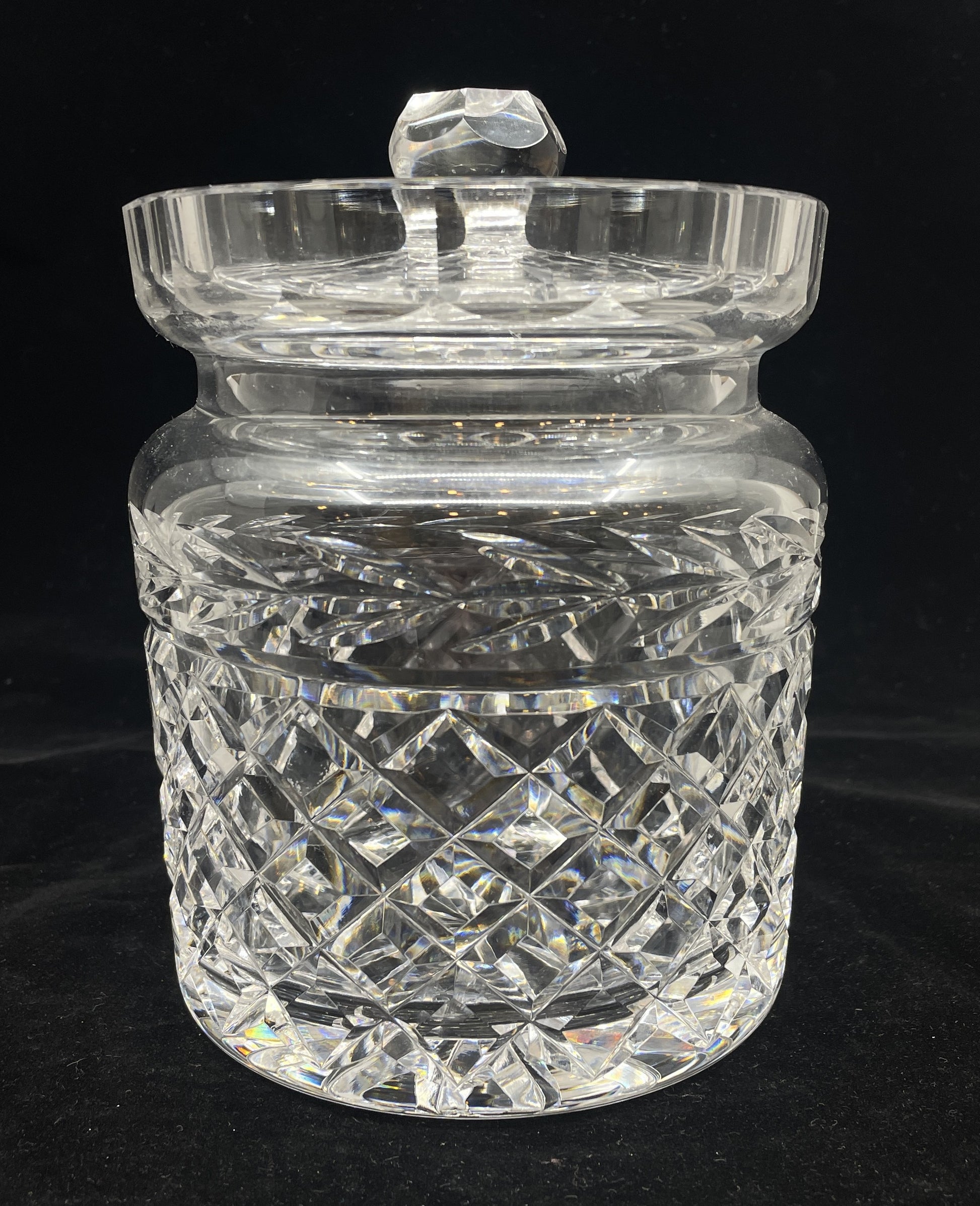 Waterford biscuit jar. This small jar features a stunning cut glass jar and lid. The handle of the lid is faceted on the upper half for added charm. A beautiful piece that's sure to elevate any setting.