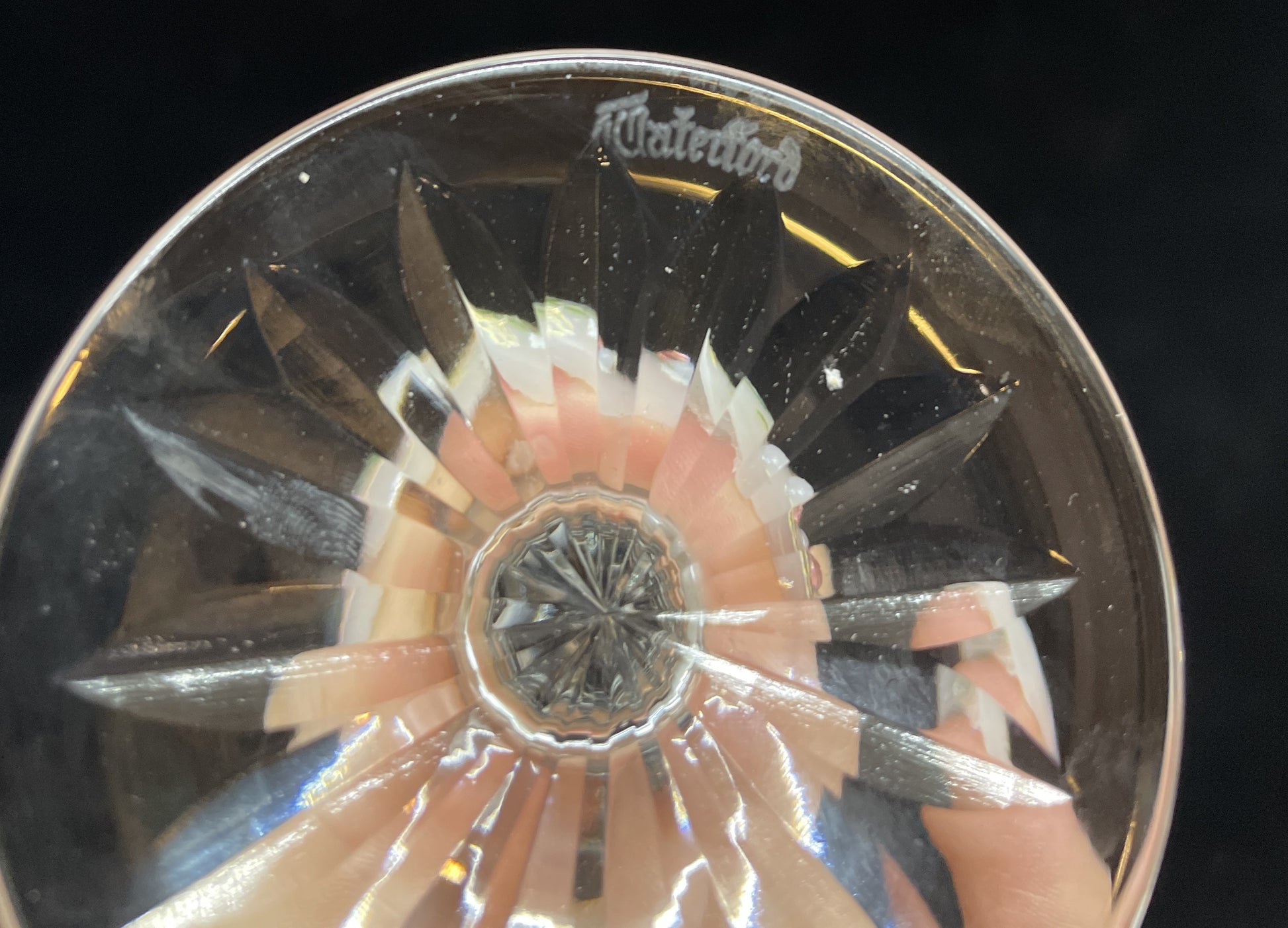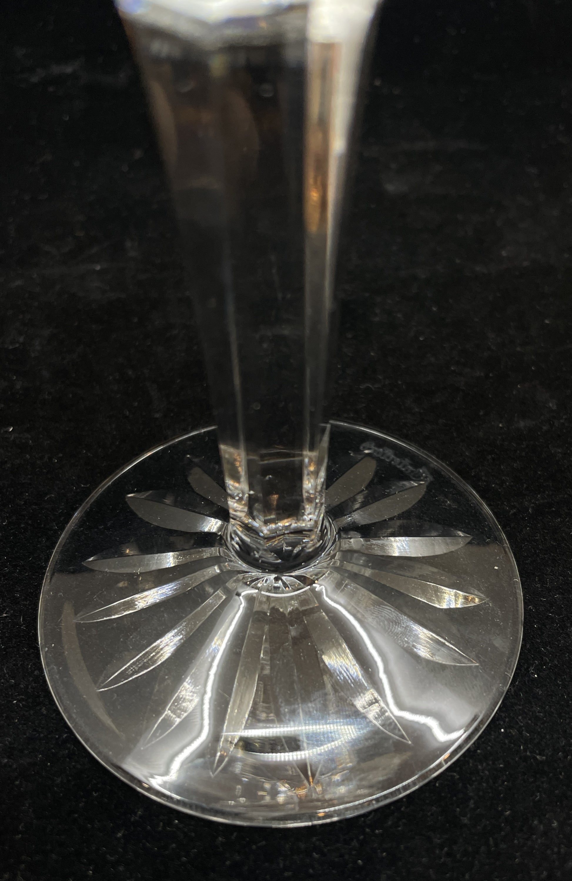4 oz champagne flute in the Lismore pattern by the brand Waterford. Features a slender and elegant silhouette with the cut crystal diamond pattern characteristic of the Lismore pattern. A lovely staple for any occasion! Branded Waterford on the base of the flute.