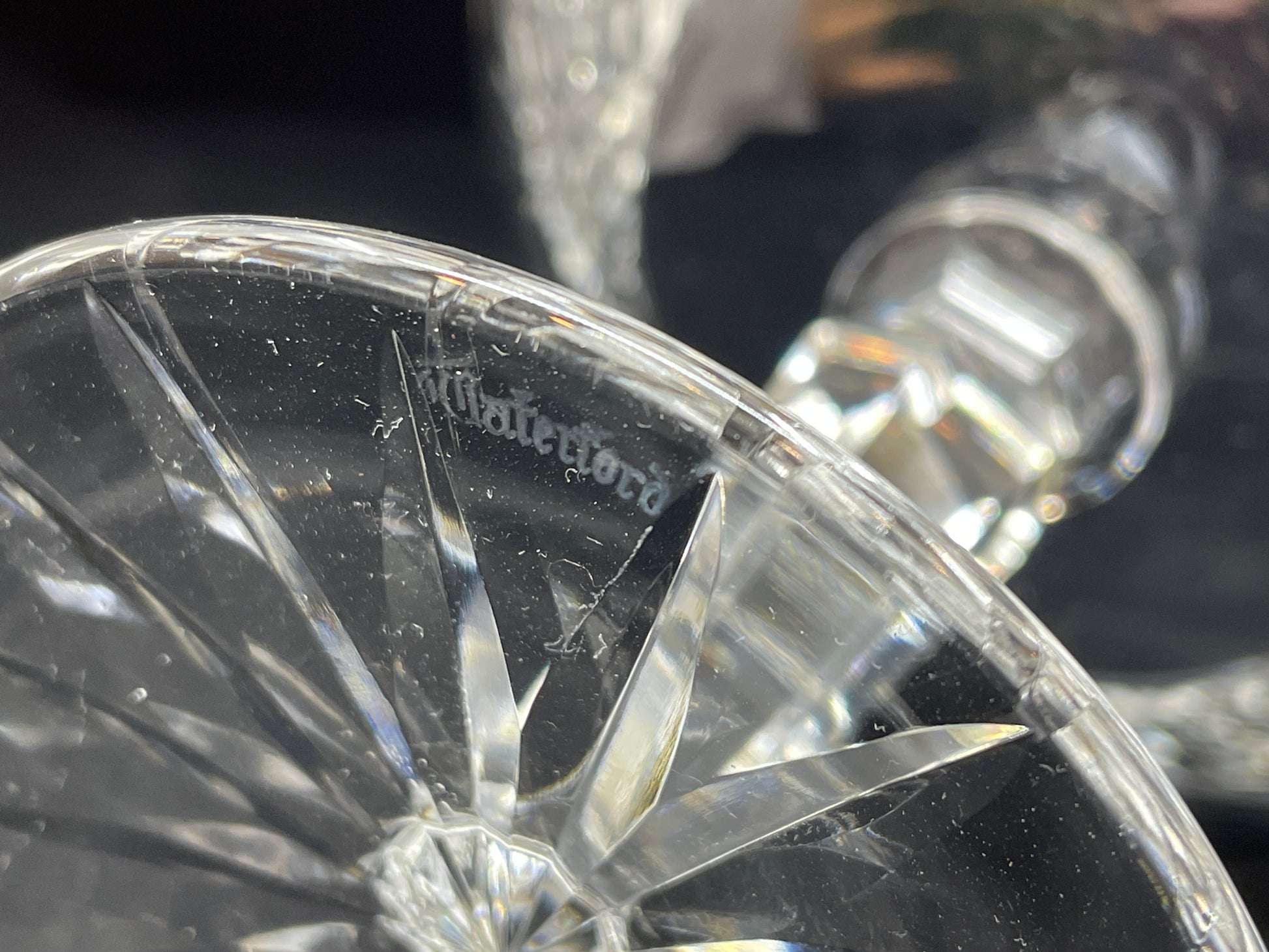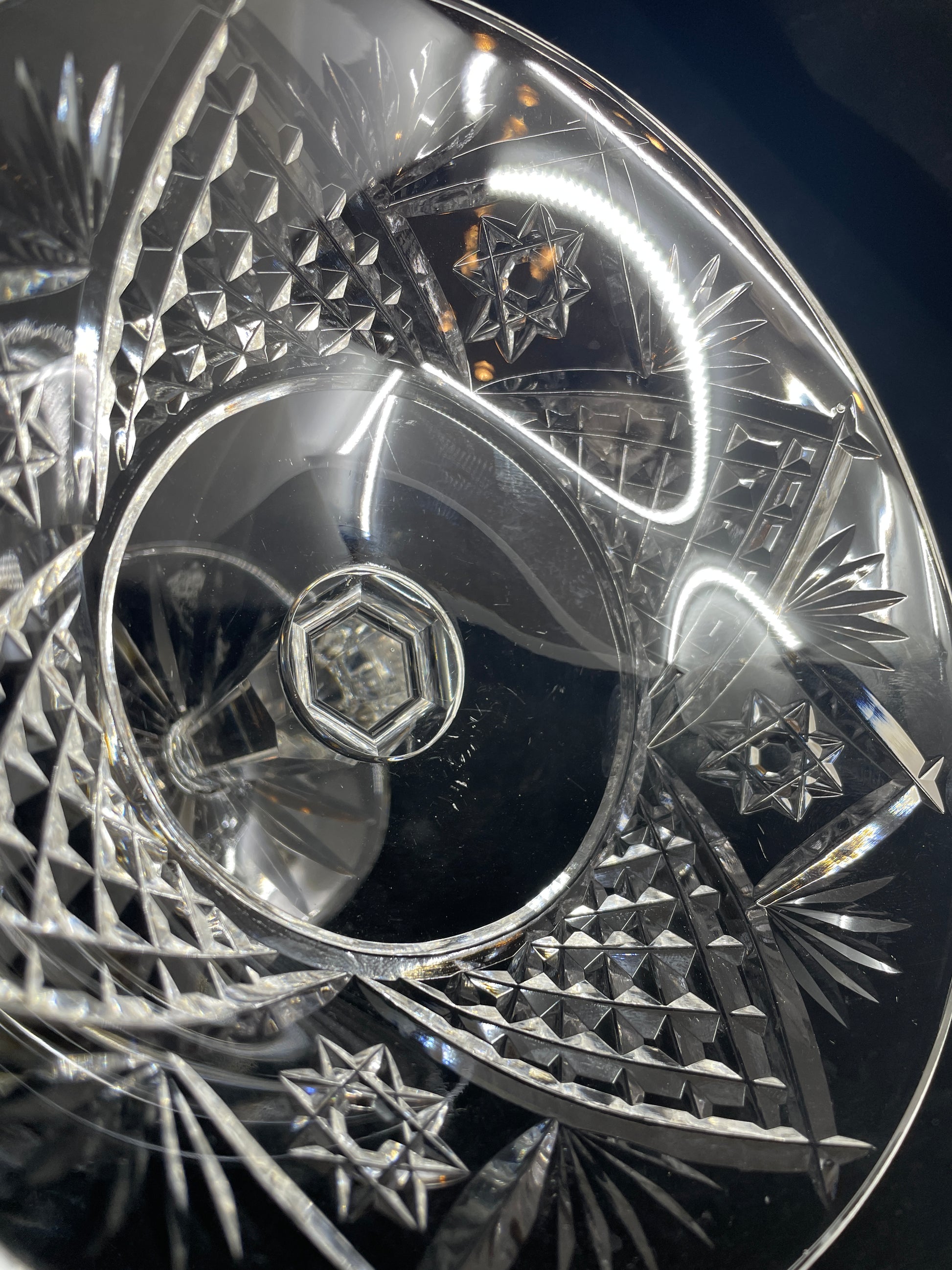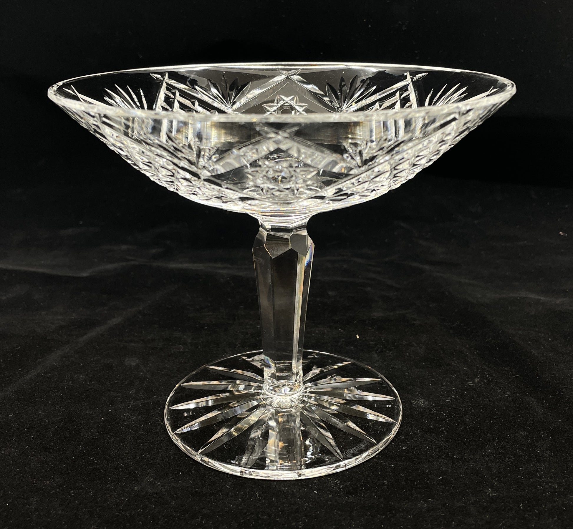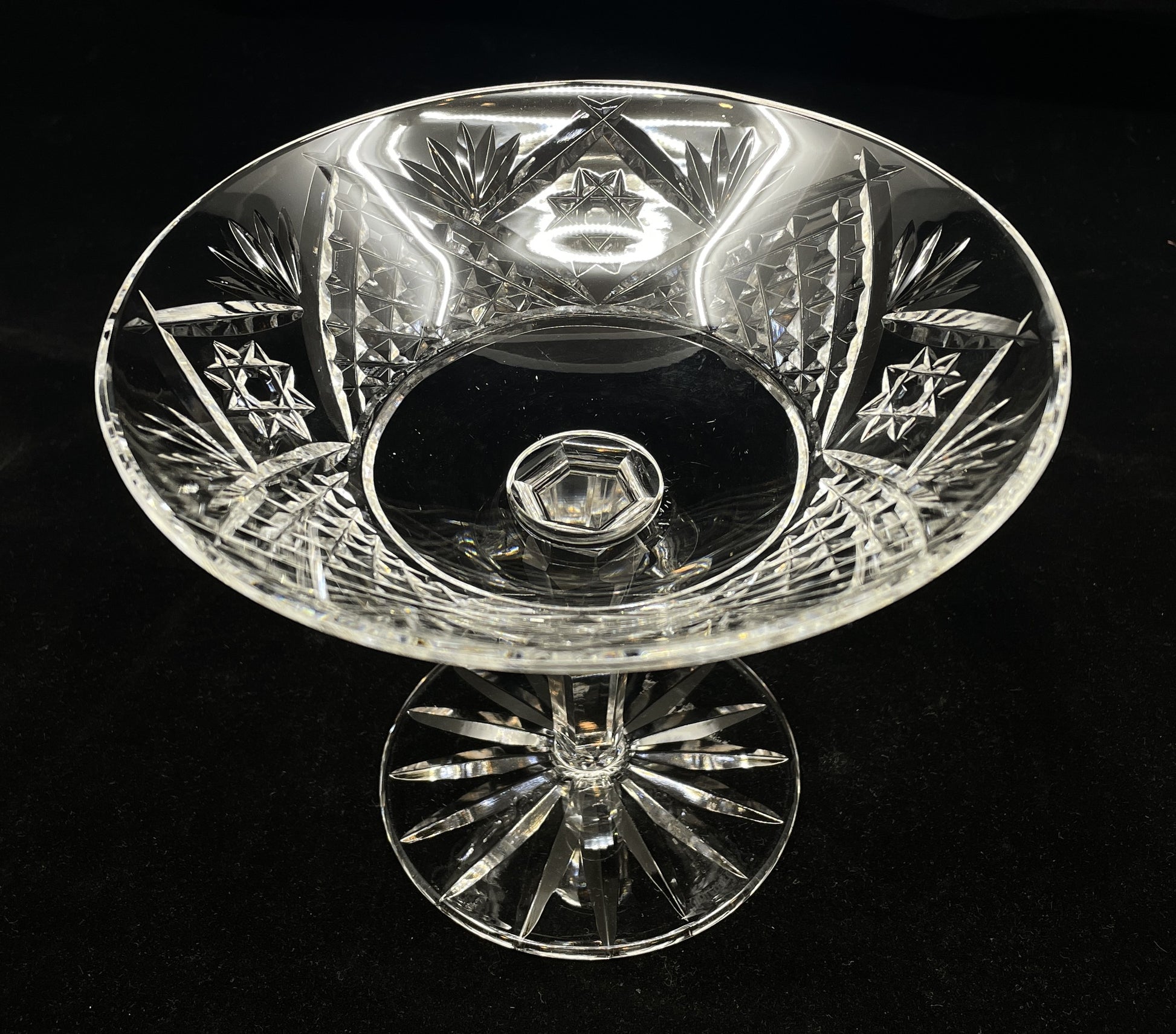 Waterford compote. This beautiful bowl features a multisided stem, cut glass foot and dish. The facets of this piece shimmer in the light. A beautiful collector's item that will elevate any display.