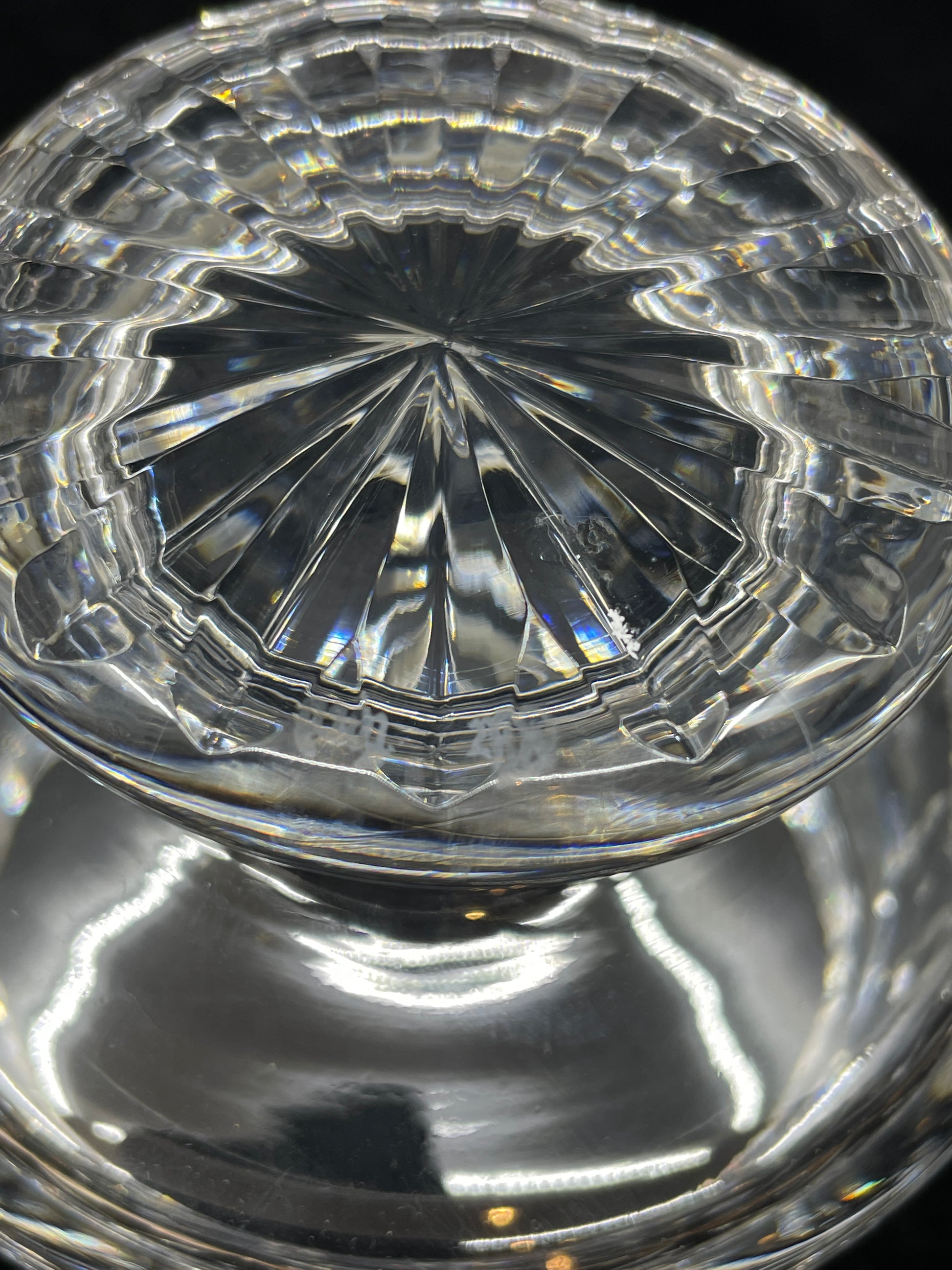 Waterford footed cream and sugar with box. Beautifully cut crystal glassware that sparkles as it catches the light. A substantial, smooth stem supports the sugar dish and an elegant handle accents the creamer dish. This set is sure to elevate a space with luxury charm.