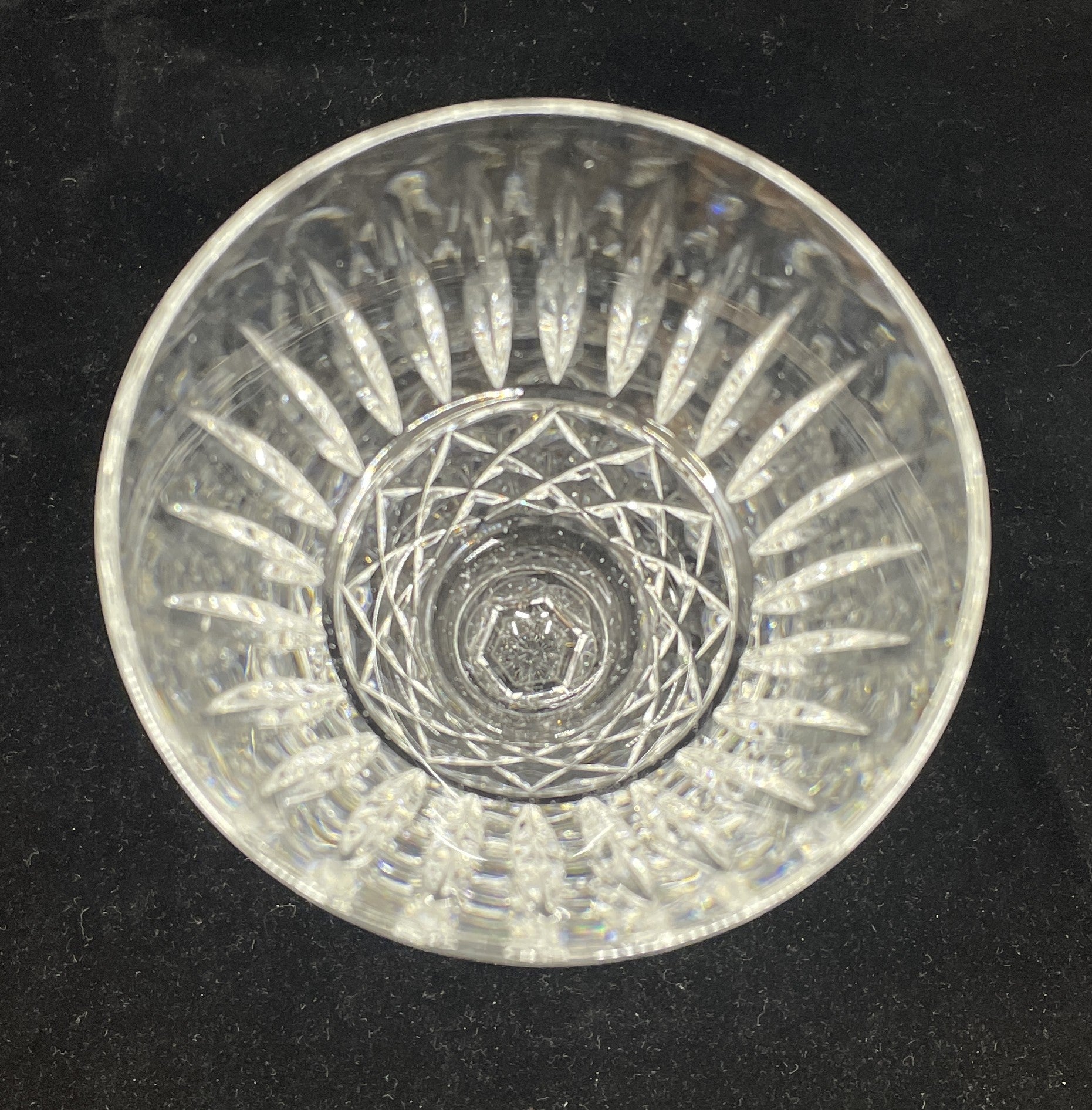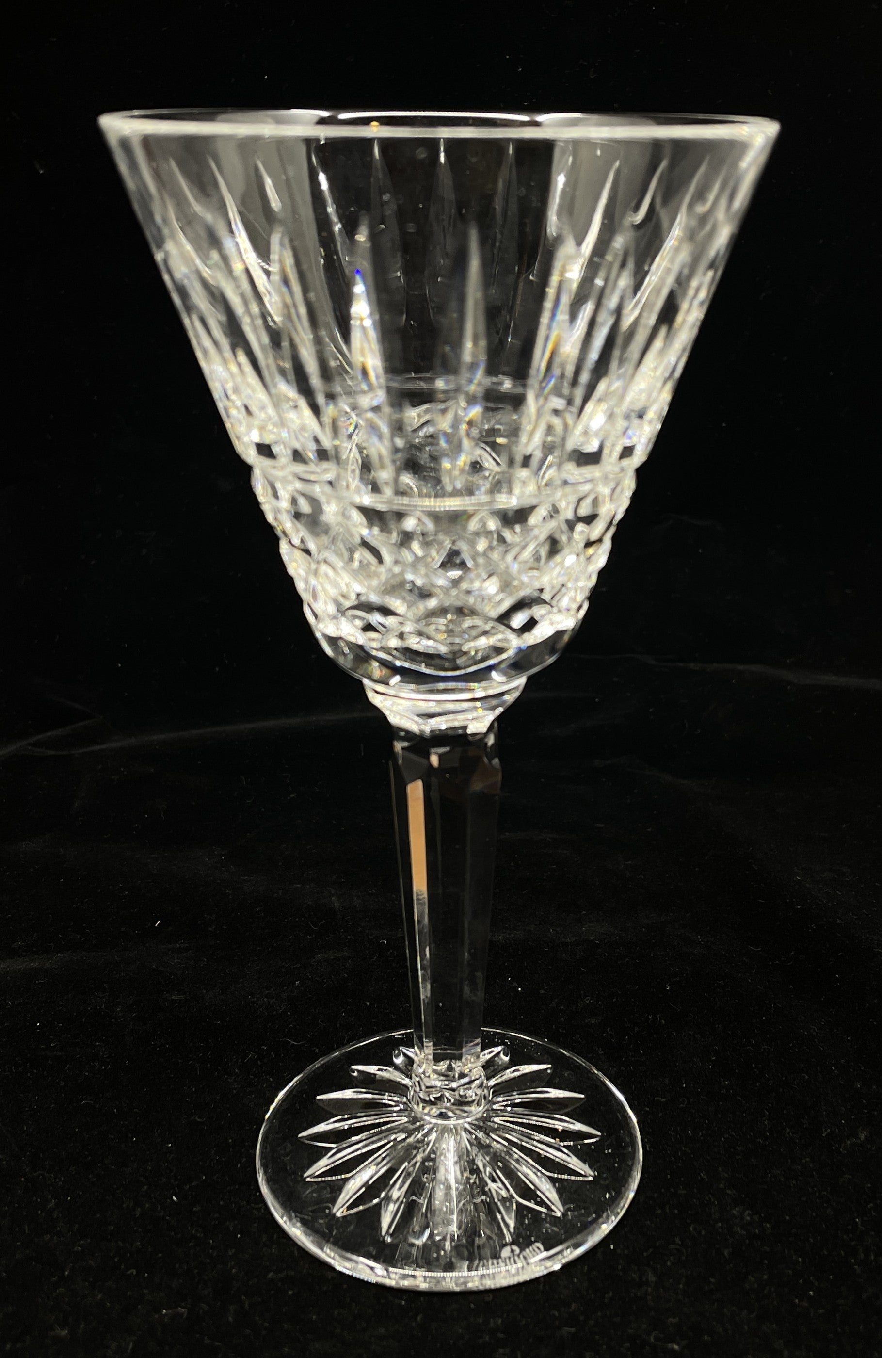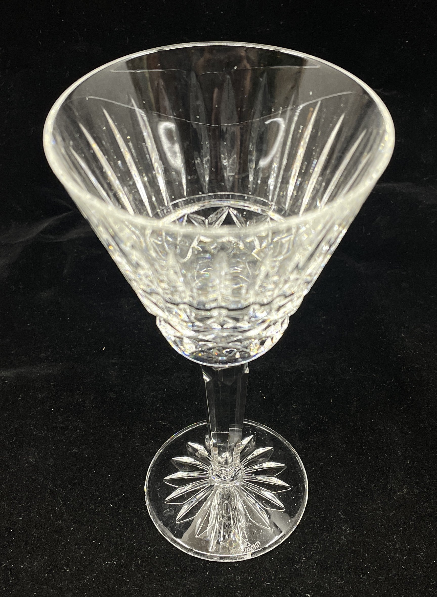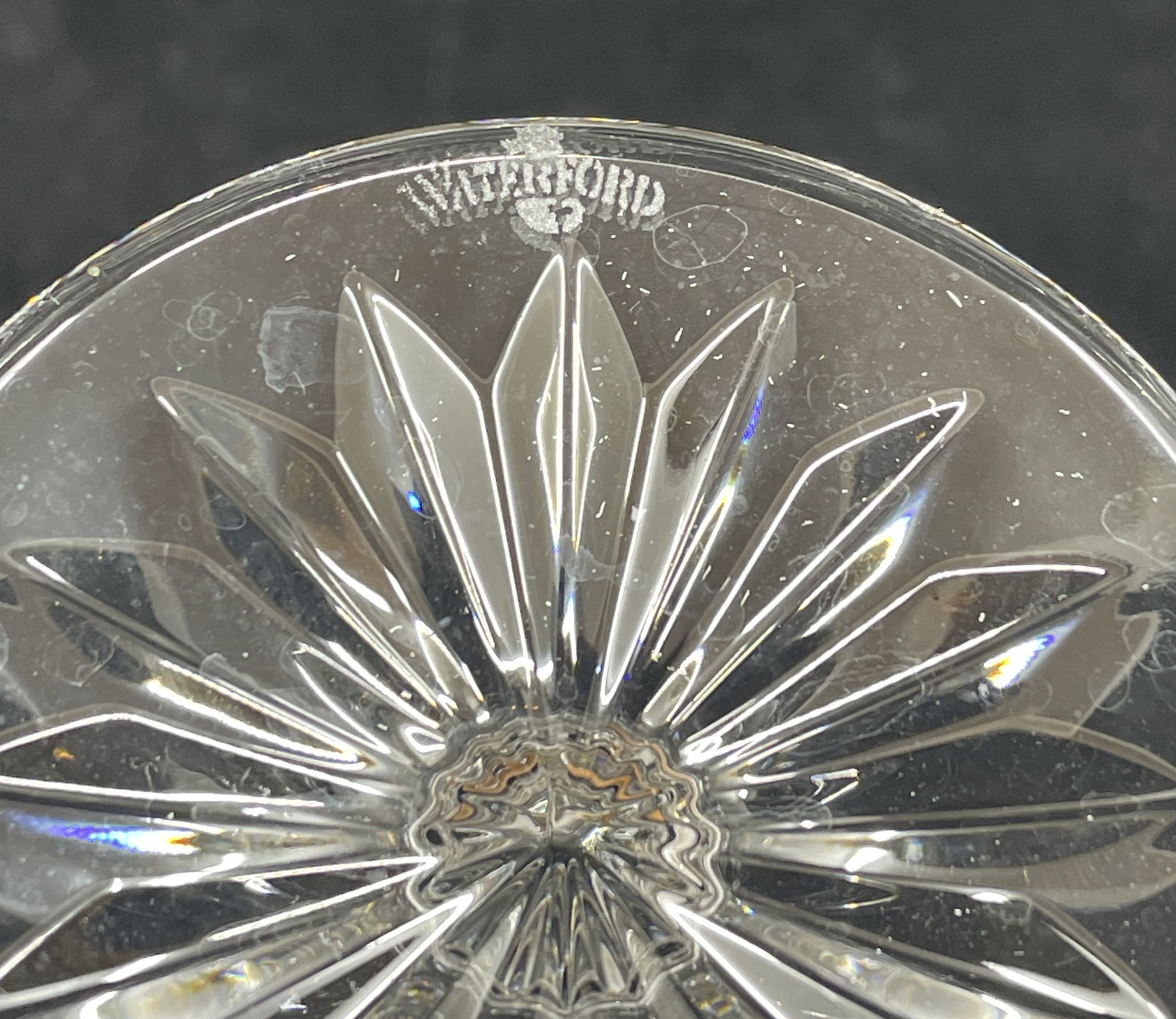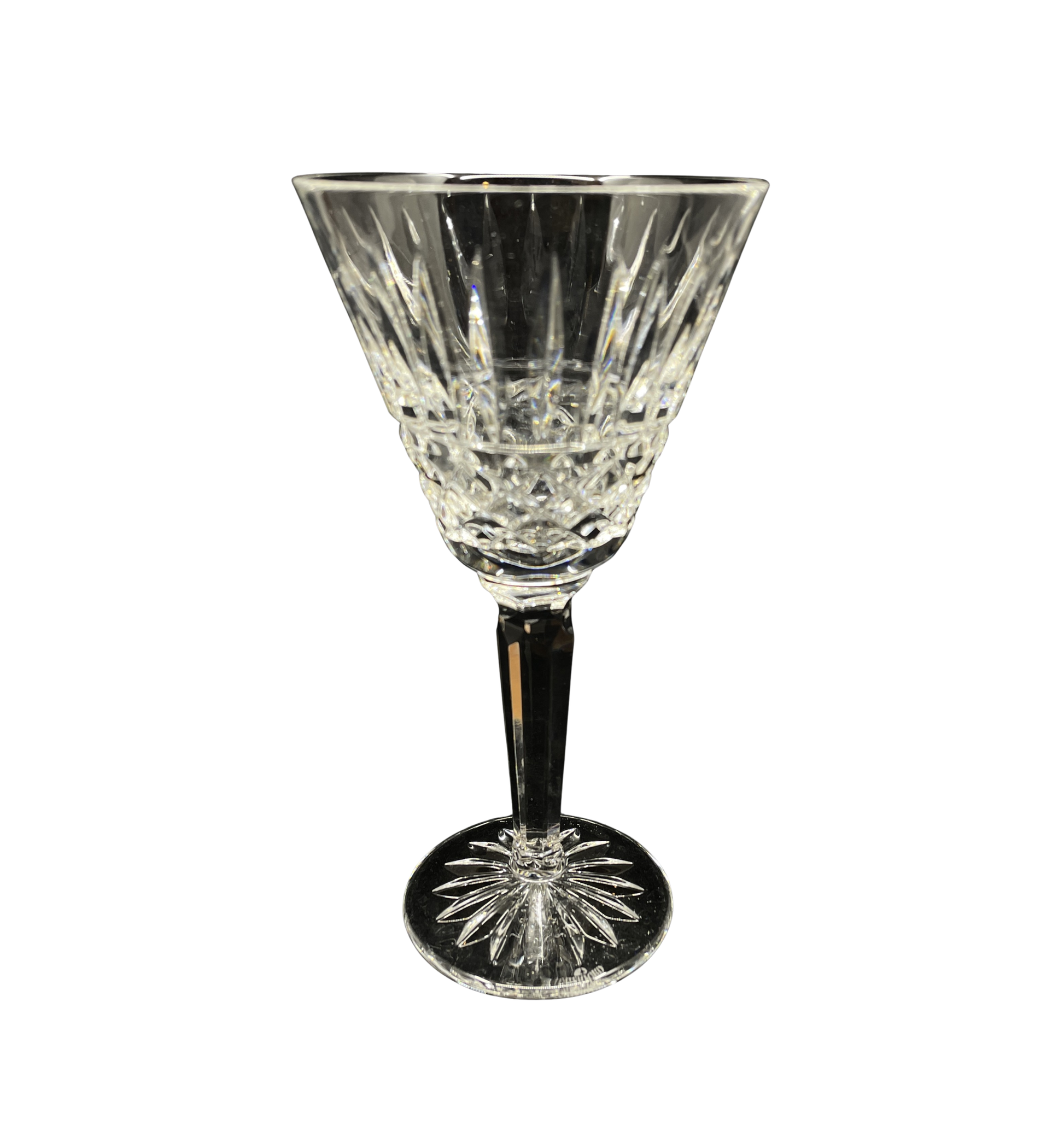 Waterford Maeve claret. This beautiful claret features the Waterford Maeve style. Cut glass accents the bowl and base of this glass, and the stem has a multifaceted design. A beautiful and timeless piece that's sure to elevate a collection.